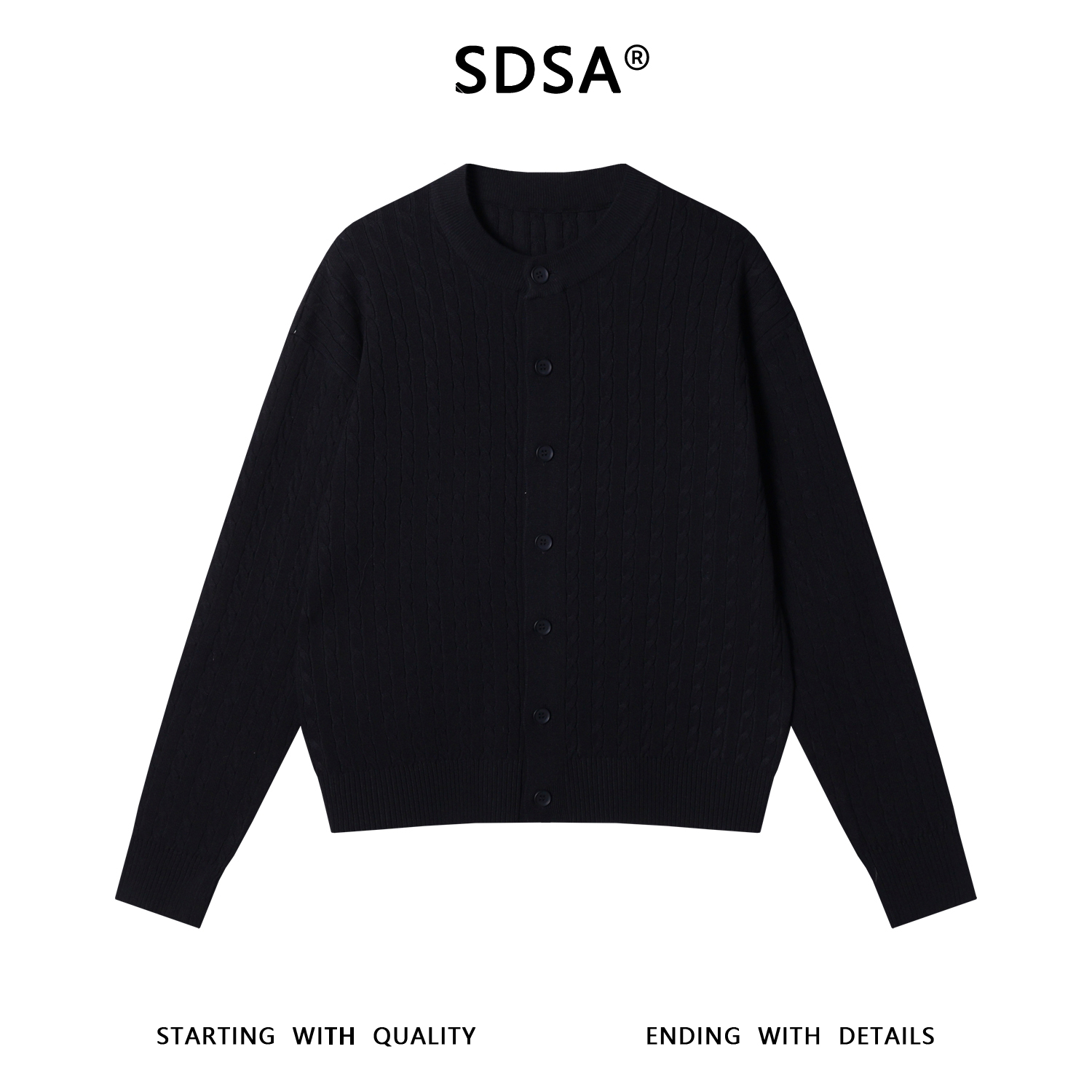 46764SDSA男士秋冬新款痞帅男装极简风短款纽花圆领针织衫百搭开衫毛衣