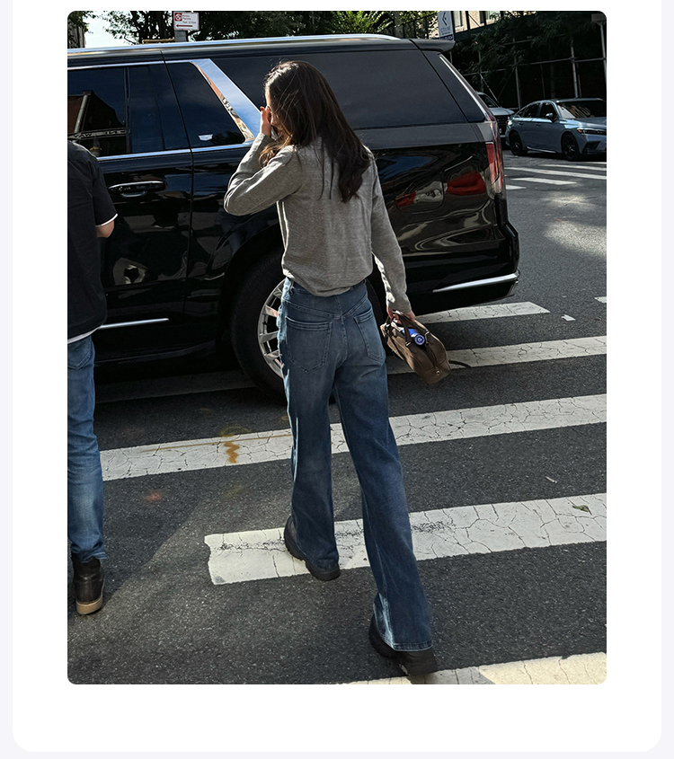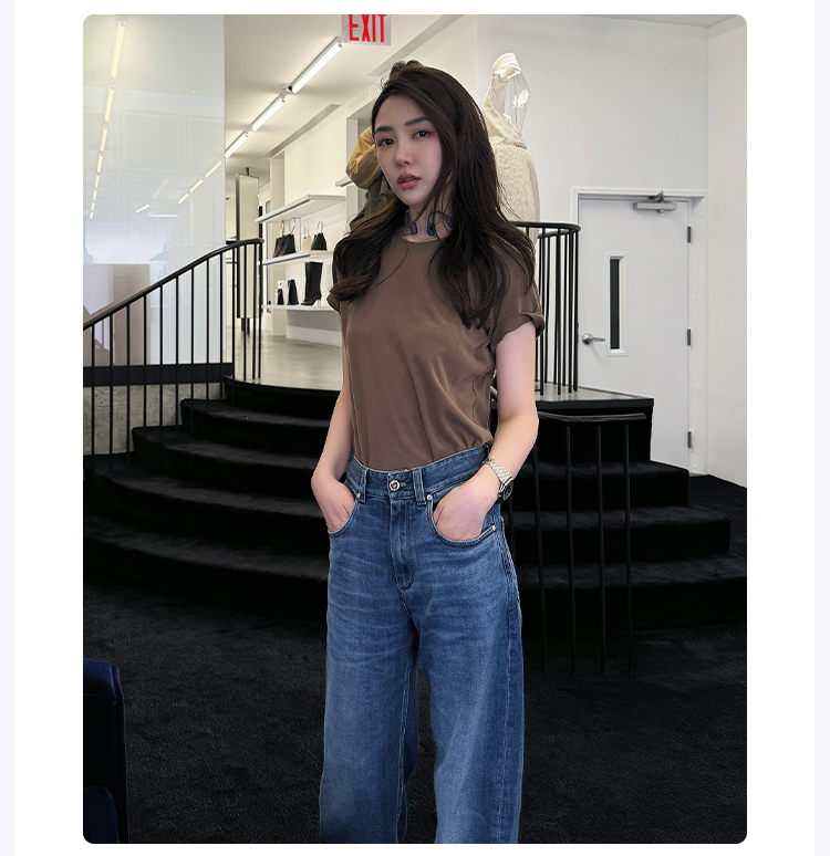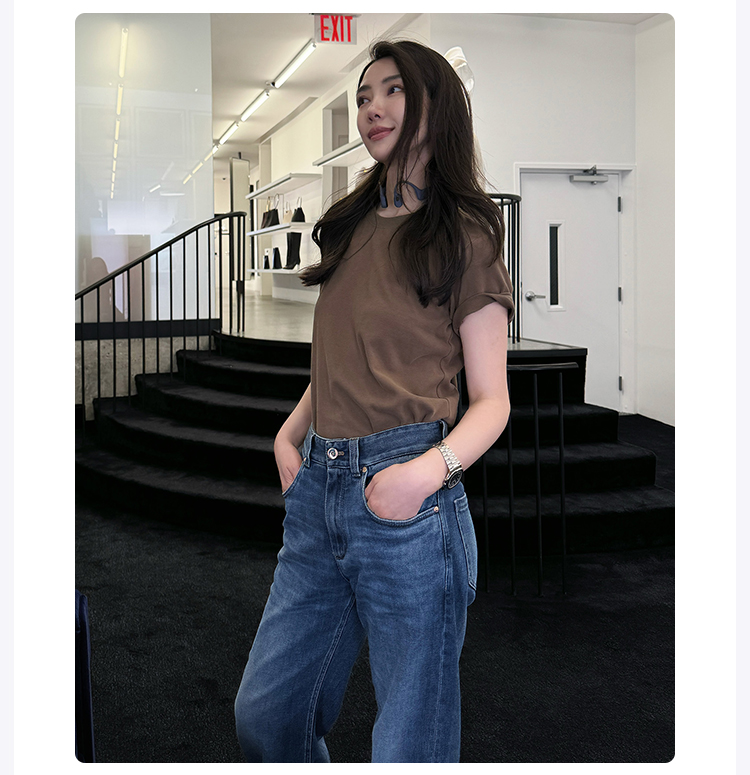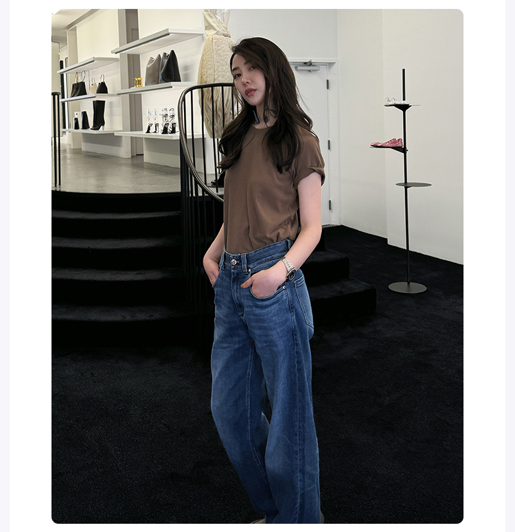 ROMI STUDIO “重磅丹宁” 莱卡棉混纺绳染洗水直筒牛仔裤 431N5041