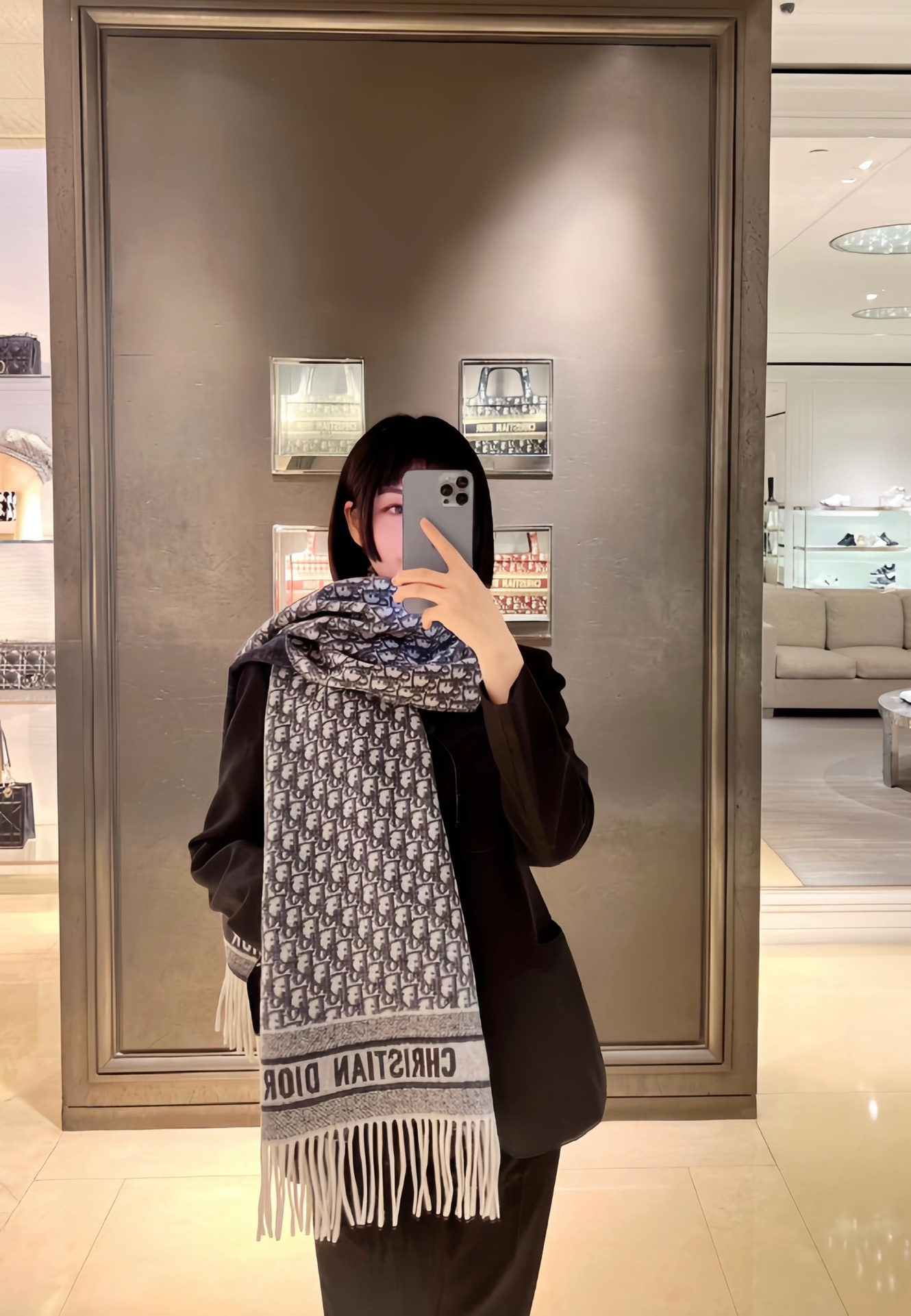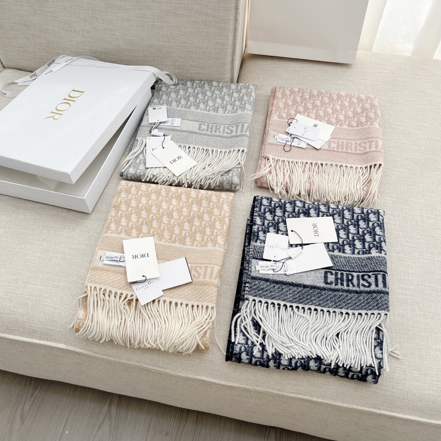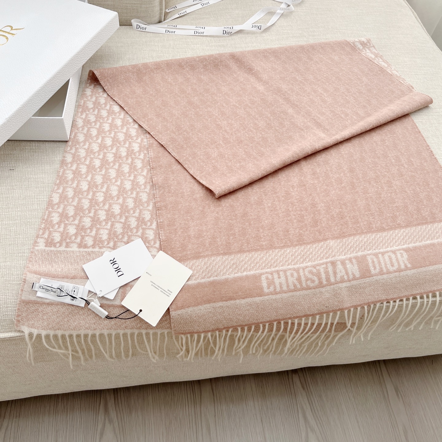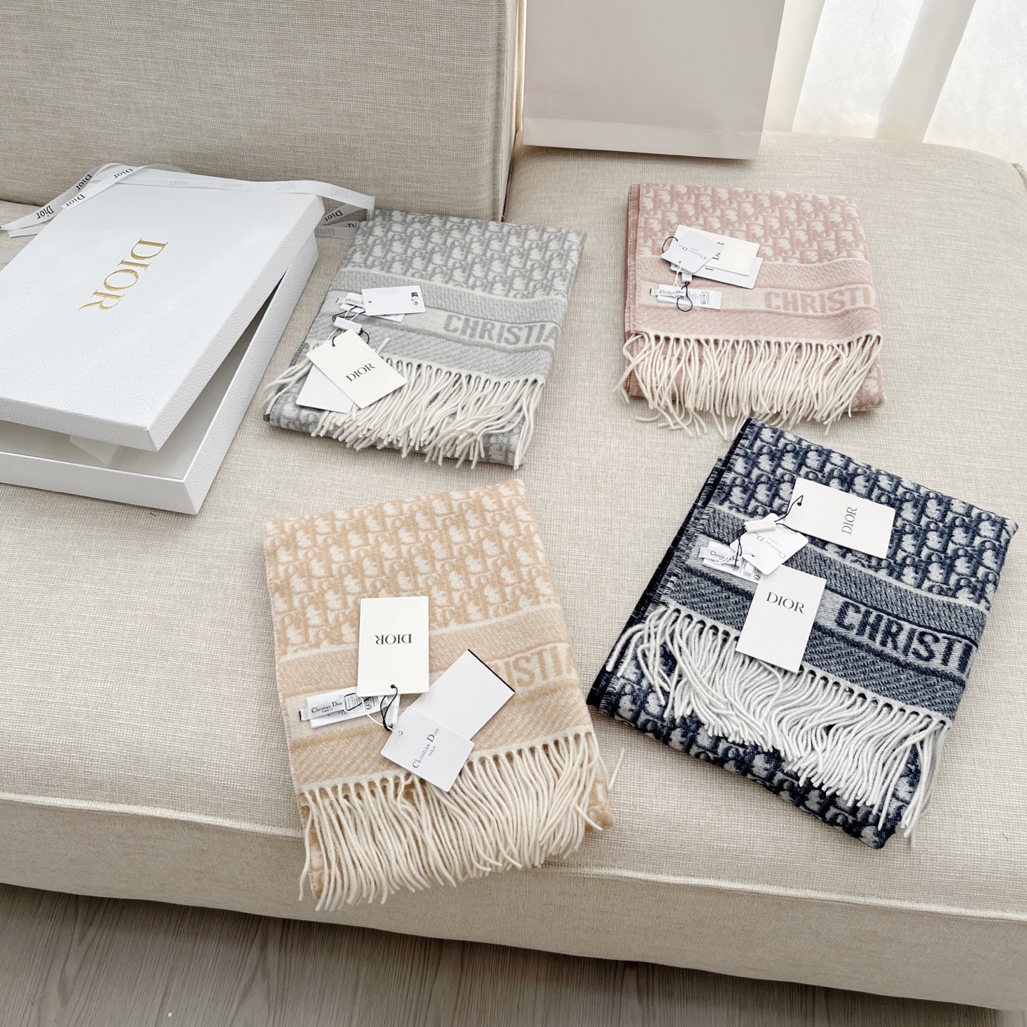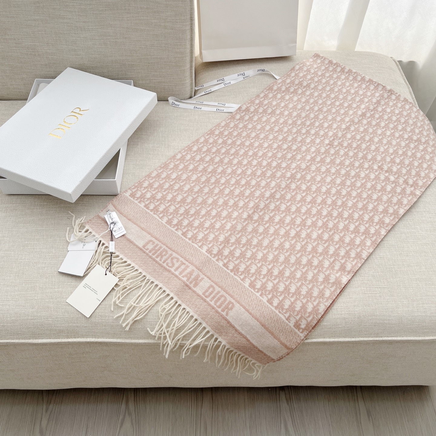 𝐃𝐈𝐎𝐑 · 【D家双面披肩】浅灰色 Size:45x200cm 材质:100%山羊绒 D家元素满满,克重手感顶级,顶级面料 精准进口机字母提花;一面纯色+一面经典Oblique字母 双面对比鲜明 可以做披肩的围巾 温暖整个冬天时尚感满屏 小姐姐时尚必备神器,让这个季节带着自信出门!
