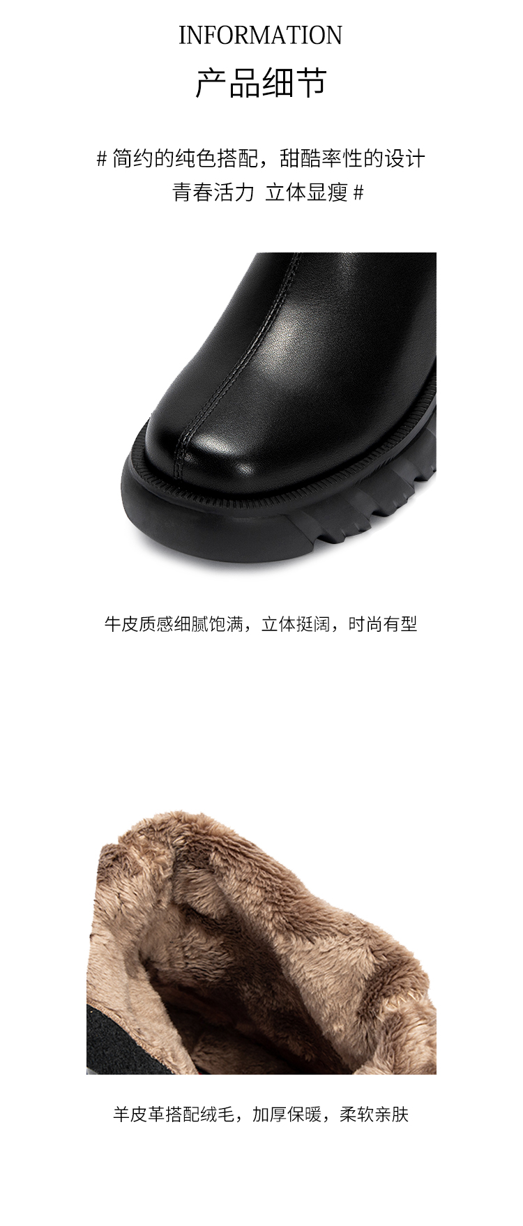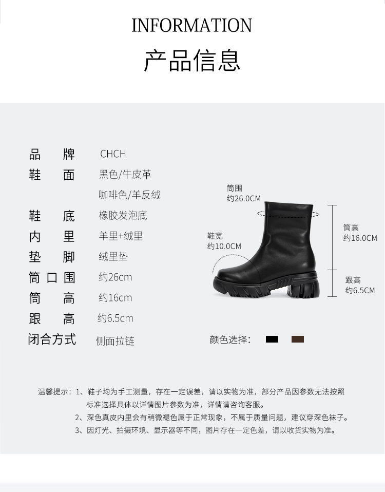 CHCH加绒短靴2024秋冬新品拉链粗跟时尚女靴短靴马丁靴CN2B7031