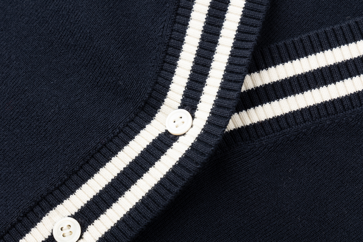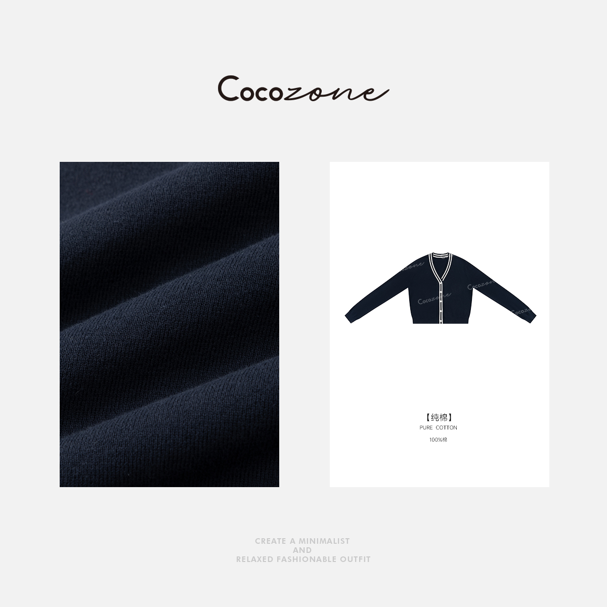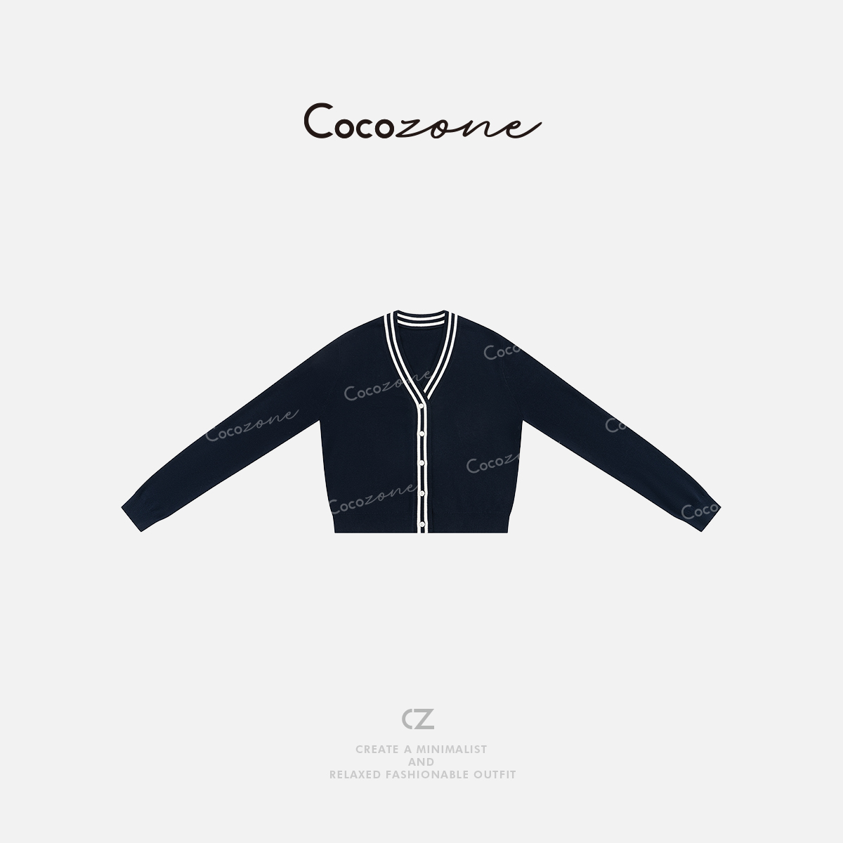 COCO ZONE "长岛“100棉春季撞色边V领单排扣针织衫ACD1A0068