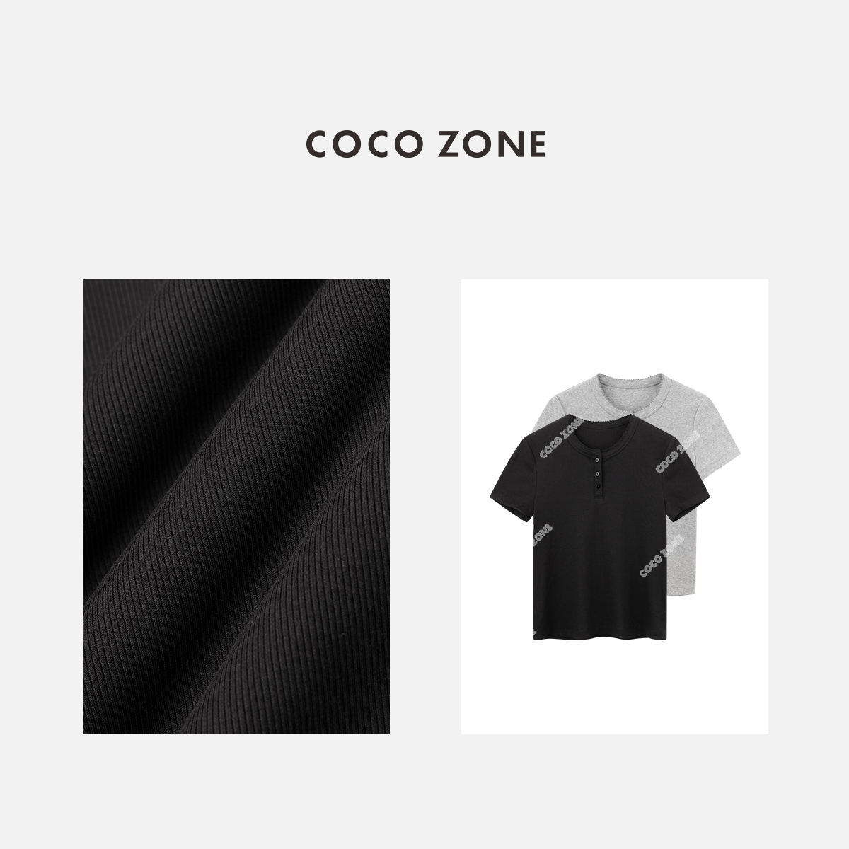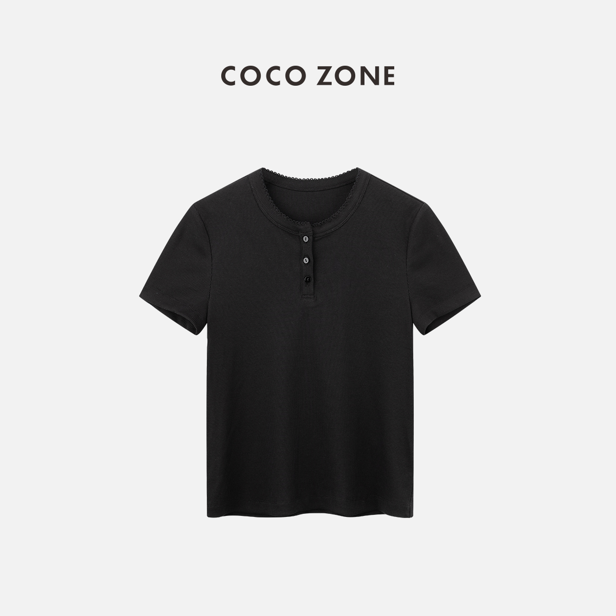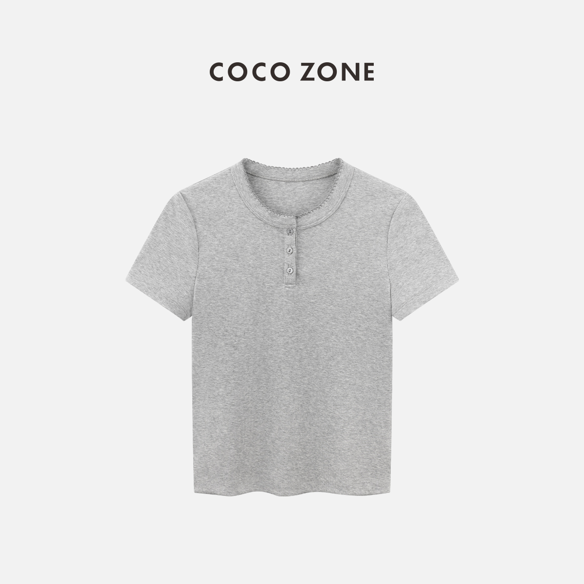 COCOZONE 时尚圆领纽扣设计短袖T恤百搭纯色上衣CC1B0655