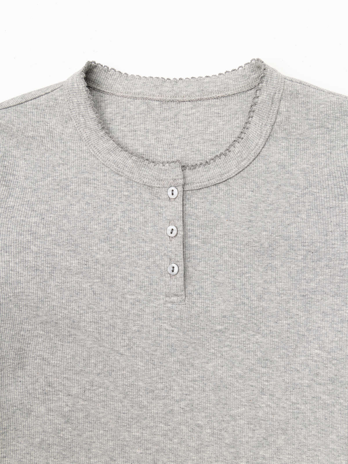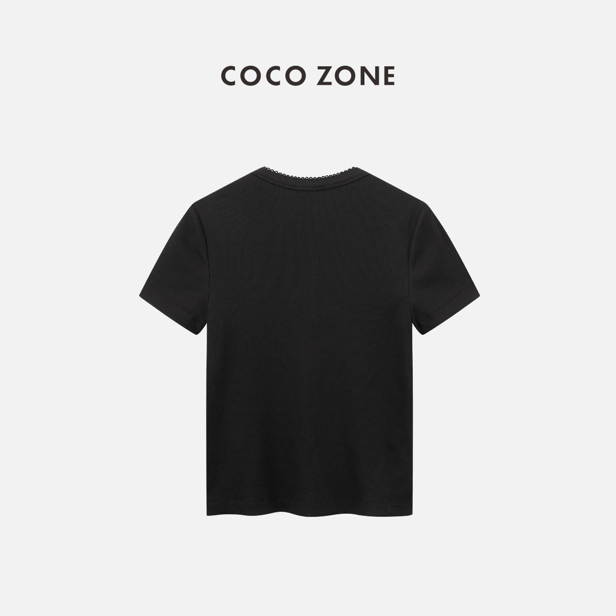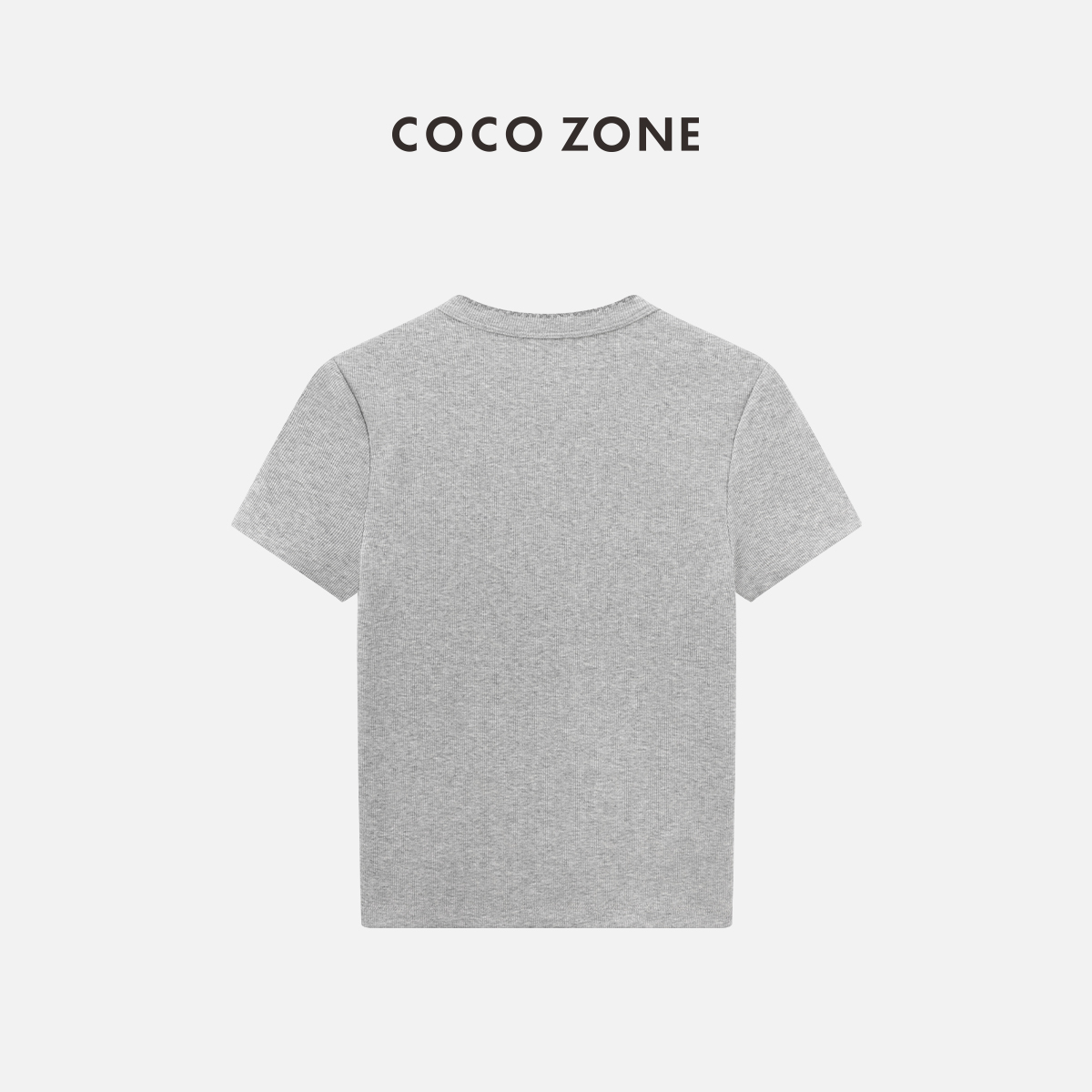 COCOZONE 时尚圆领纽扣设计短袖T恤百搭纯色上衣CC1B0655