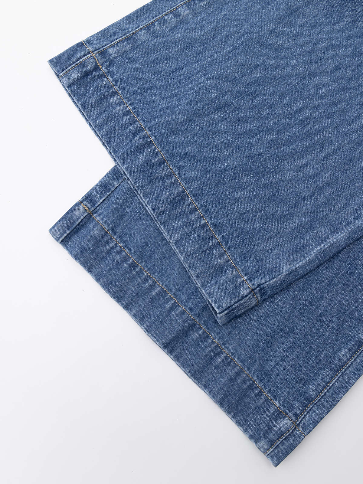 COCO ZONE“万能牛仔裤”新款时尚松紧腰牛仔裤显瘦直筒阔腿裤CC1B0827