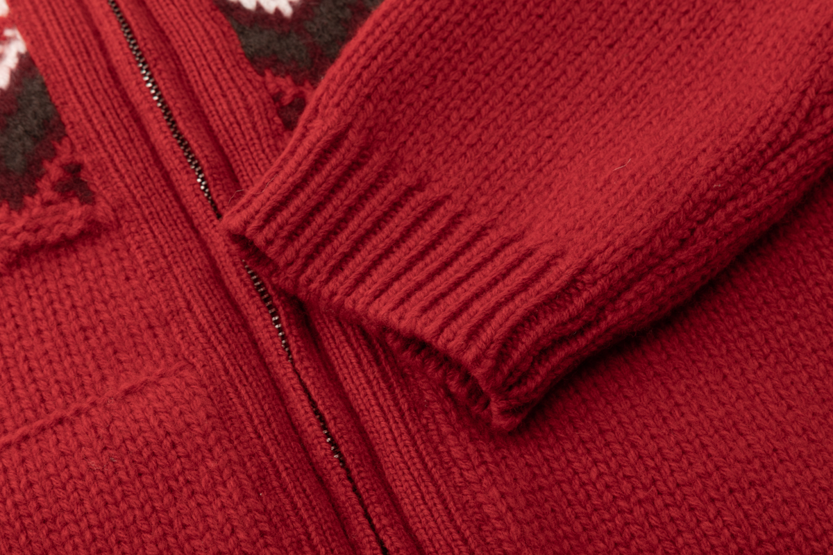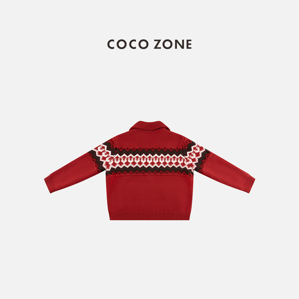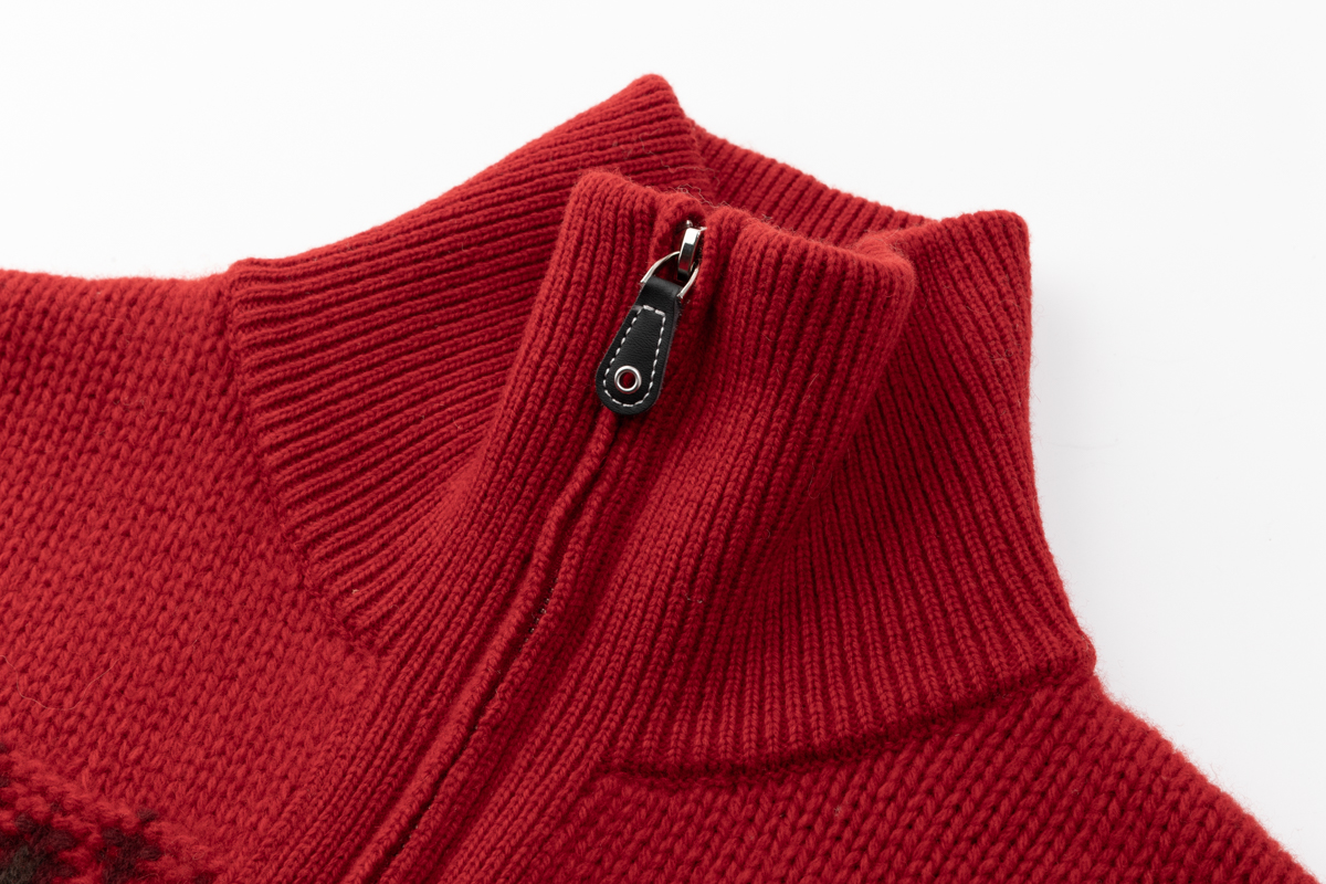 COCO ZONE 冬季费尔岛立领双头拉链提花针织开衫CC1D2761