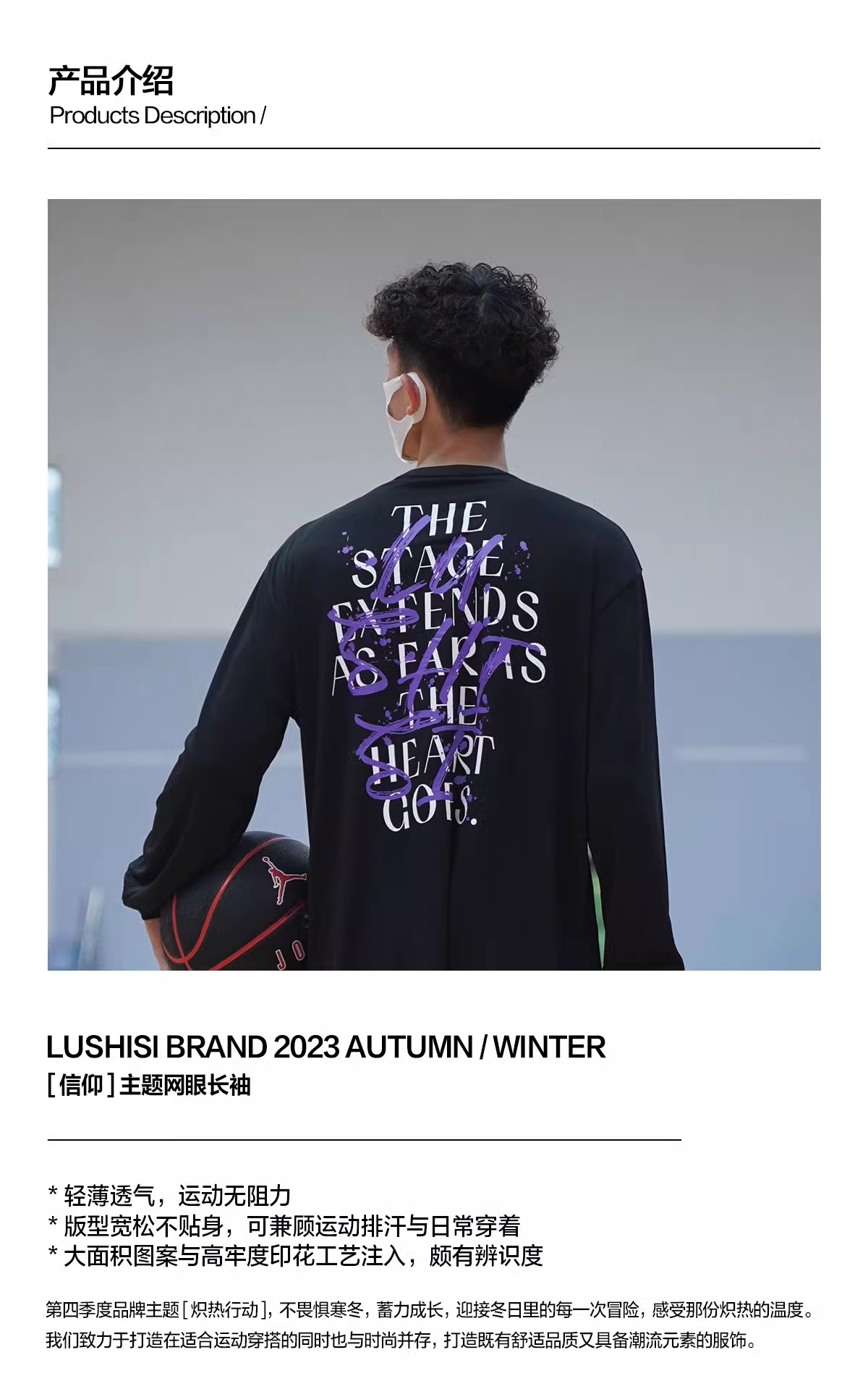 LUSHISI[信仰]美式运动长袖投篮服男圆领t恤篮球训练服宽松跑步服