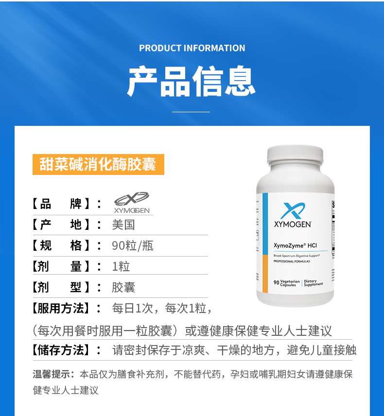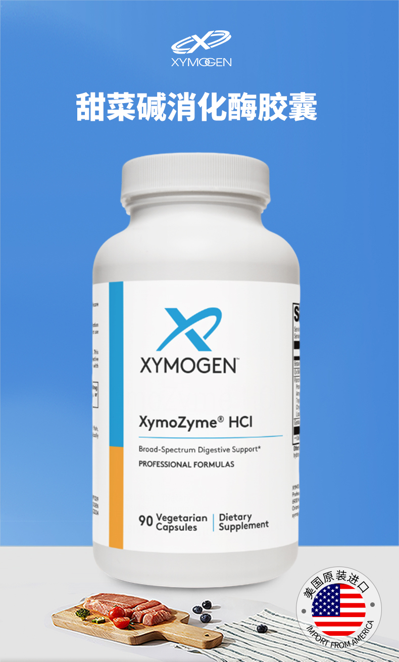 【效期至27年8月】甜菜碱消化酶胶囊 XymoZyme® HCL 90 Capsules XYMOGEN 90粒/瓶