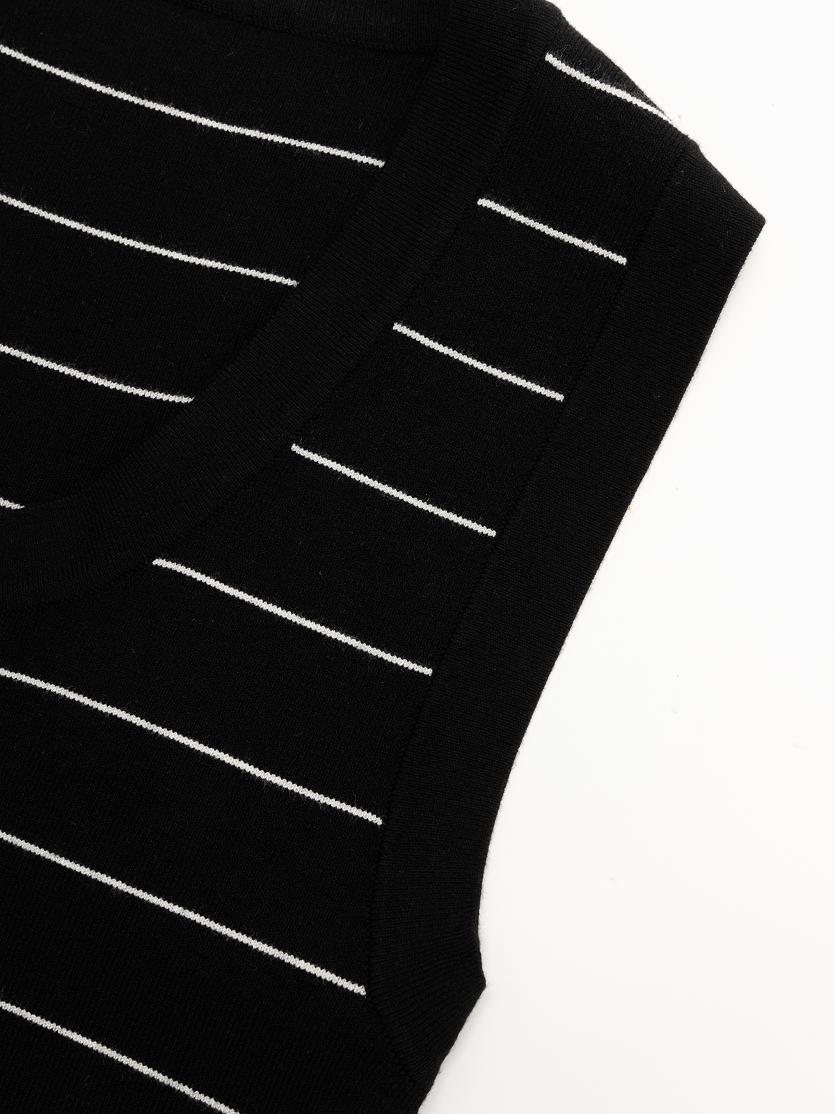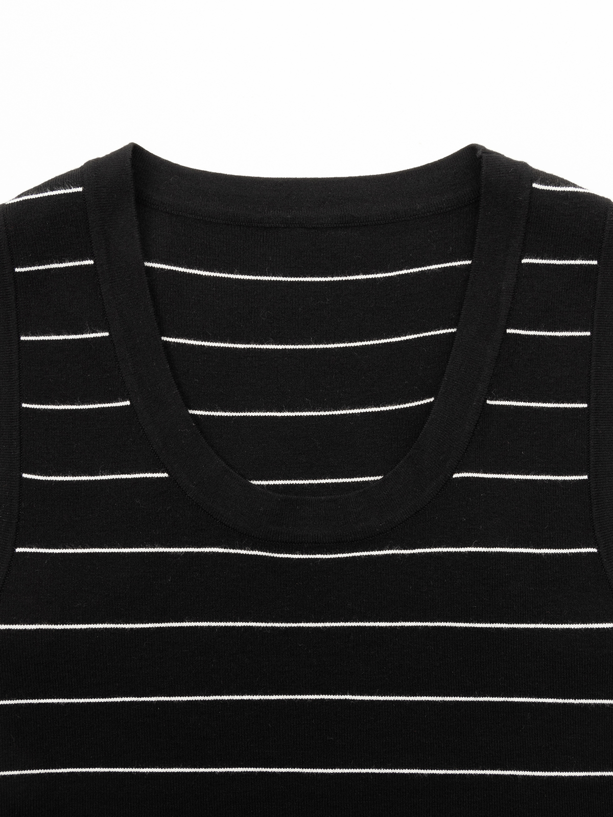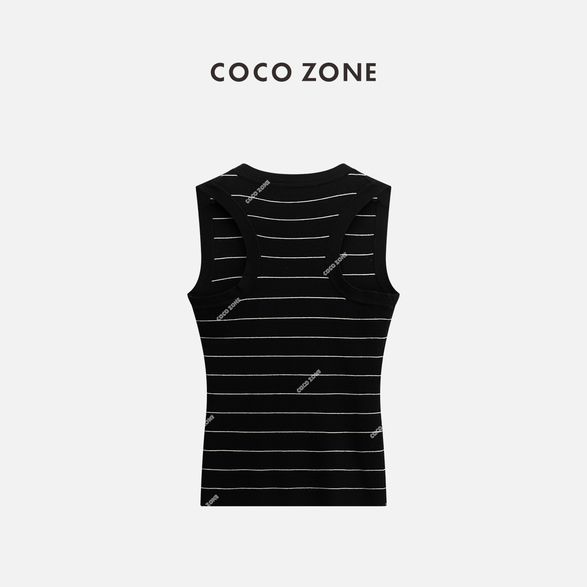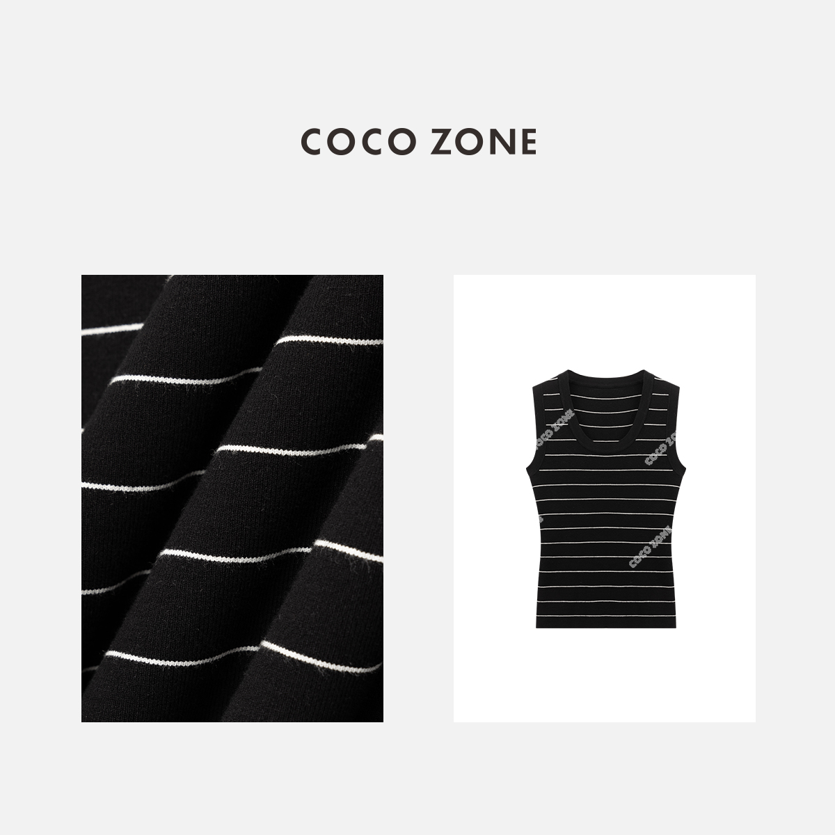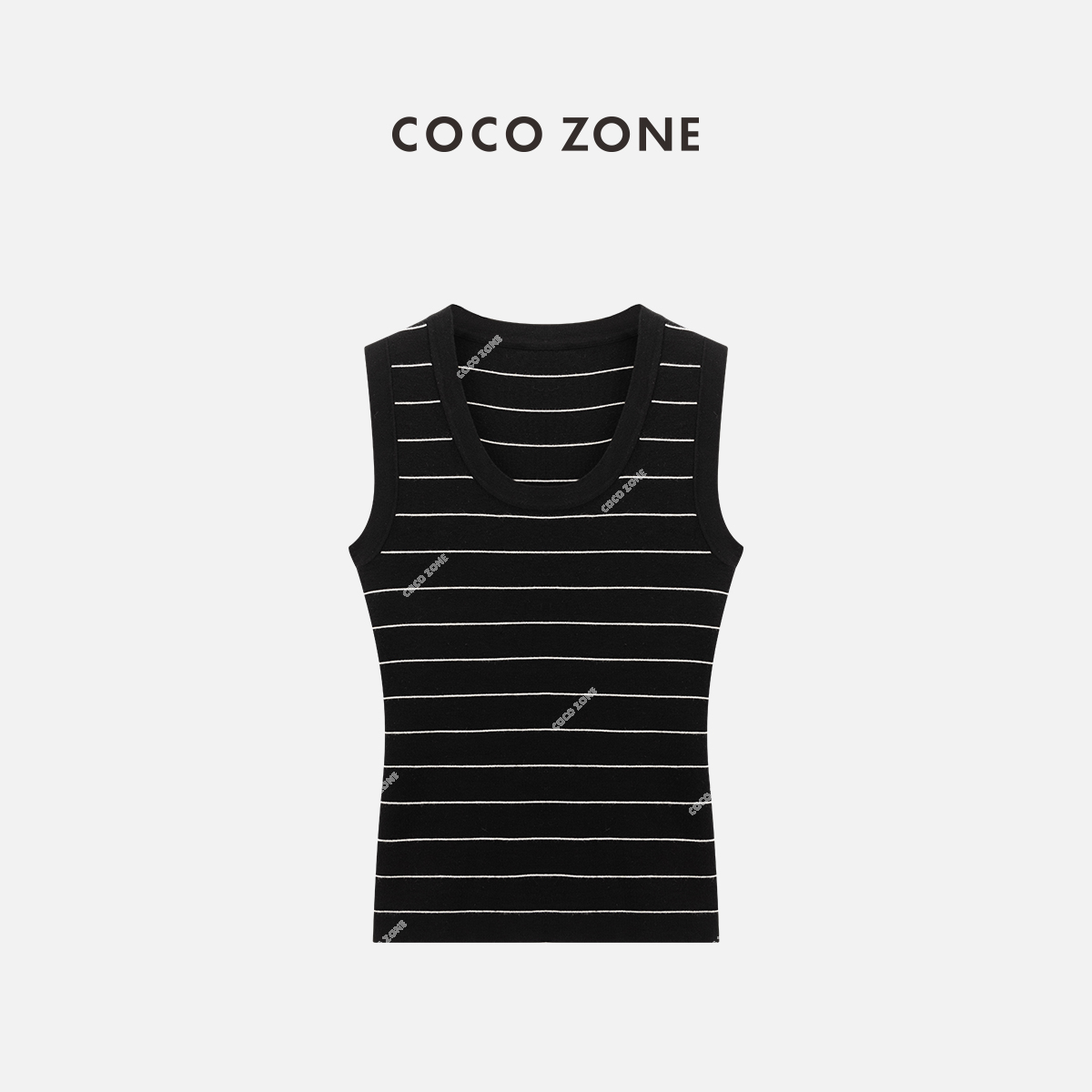 COCO ZONE 夏季U领条纹针织背心显瘦百搭无袖上衣CC2B0878