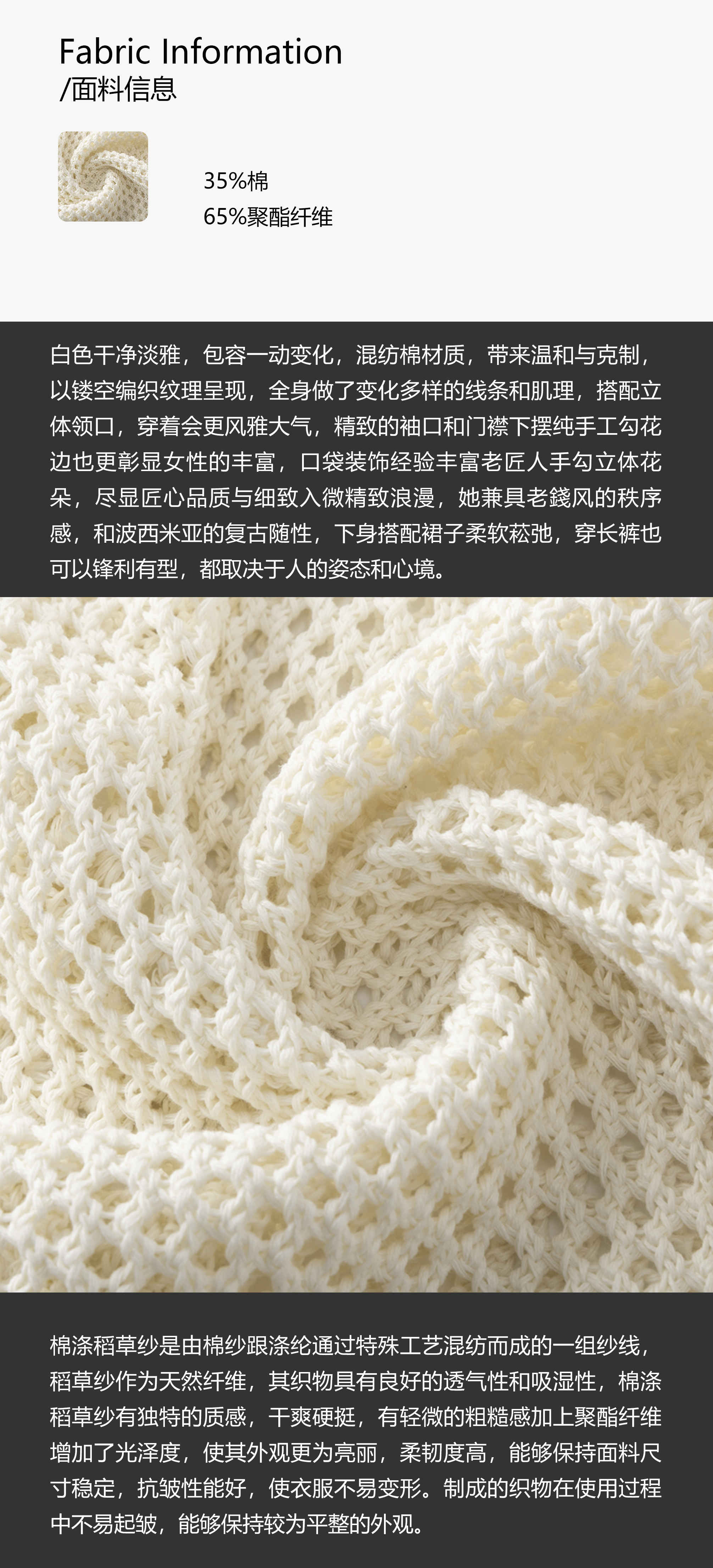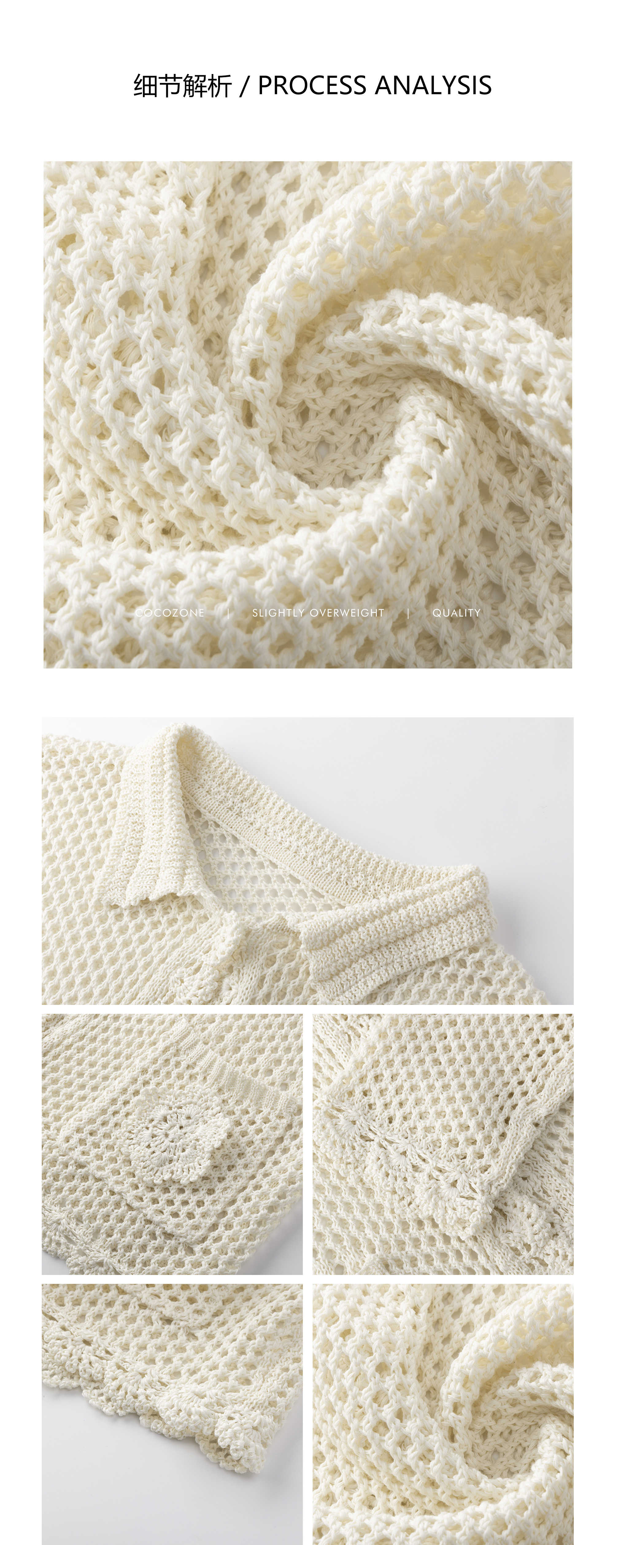 COCO ZONE 刘一一 淡雅干净镂空编织翻领花边下摆毛针织衫 CD1A0721