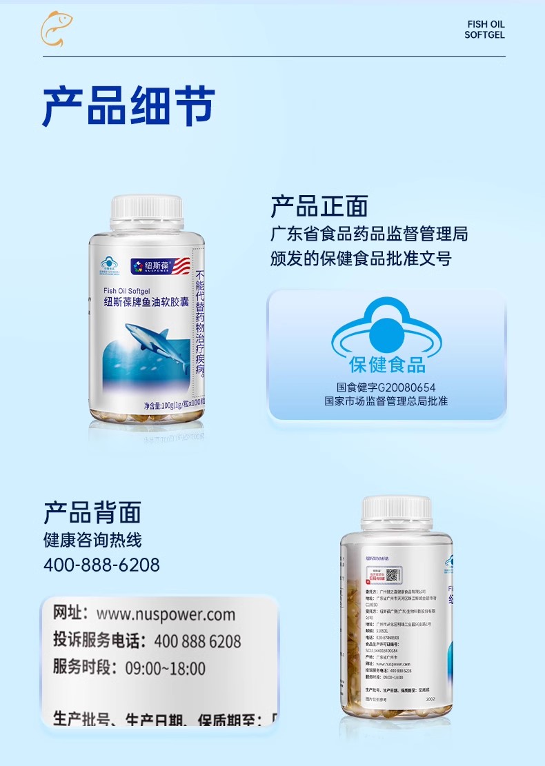 纽斯葆牌鱼油软胶囊120g(1g/粒*120粒)