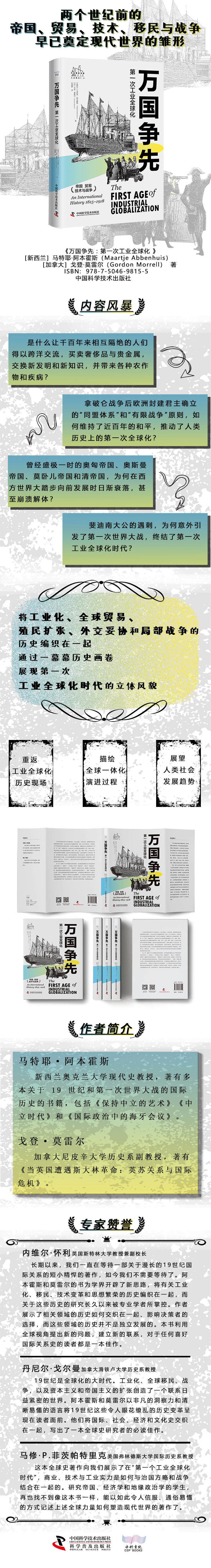 本书对工业全球化的第一个时代的全球历史进行了通俗易懂的介绍与剖析,该时代始于拿破仑战争之后,并在第一次世界大战的漩涡中崩溃。 通过将工业化、技术创新和帝国兴衰相结合,世界工业化大国塑造了相互联系的全球空间,很少有地区未被触及。在十个简洁的章节中,本书记述了这一段时间内全球经济和社会的重大转变,概述了全球工业、帝国和经济变革,与地方经验、身份认同的相互联系。 Z后,本书揭露了第一次世界大战对这个全球体系的灾难性影响。 本书将工业化、世界经济、帝国主义、国际法、外交和战争等历史学家通常视为独立发展的历史编织在一起,并将它们整合在一起,对一个发生根本性历史变革的时代进行了新的分析。作者认为,19世纪政治、社会和国际事务的革命性变化是相互关联的发展。 对于任何研究现代全球史的学者来说,本书都是必不可少的读物。