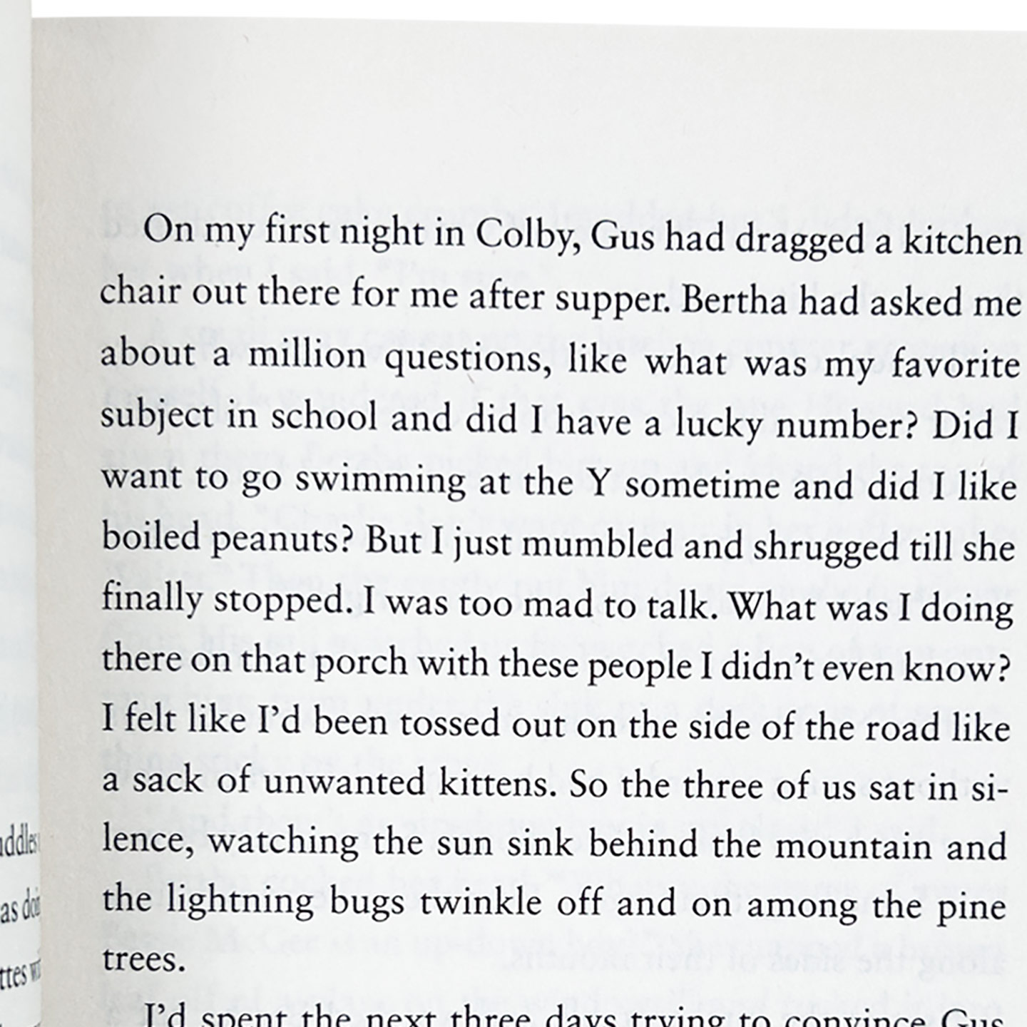 Eleven-year-old Charlie Reese has been making the same secret wish every day since fourth grade. She even has a list of all the ways there are to make the wish, such as cutting off the pointed end of a slice of pie and wishing on it as she takes the last bite. But when she is sent to the Blue Ridge Mountains of North Carolina to live with family she barely knows, it seems unlikely that her wish will ever come true. That is until she meets