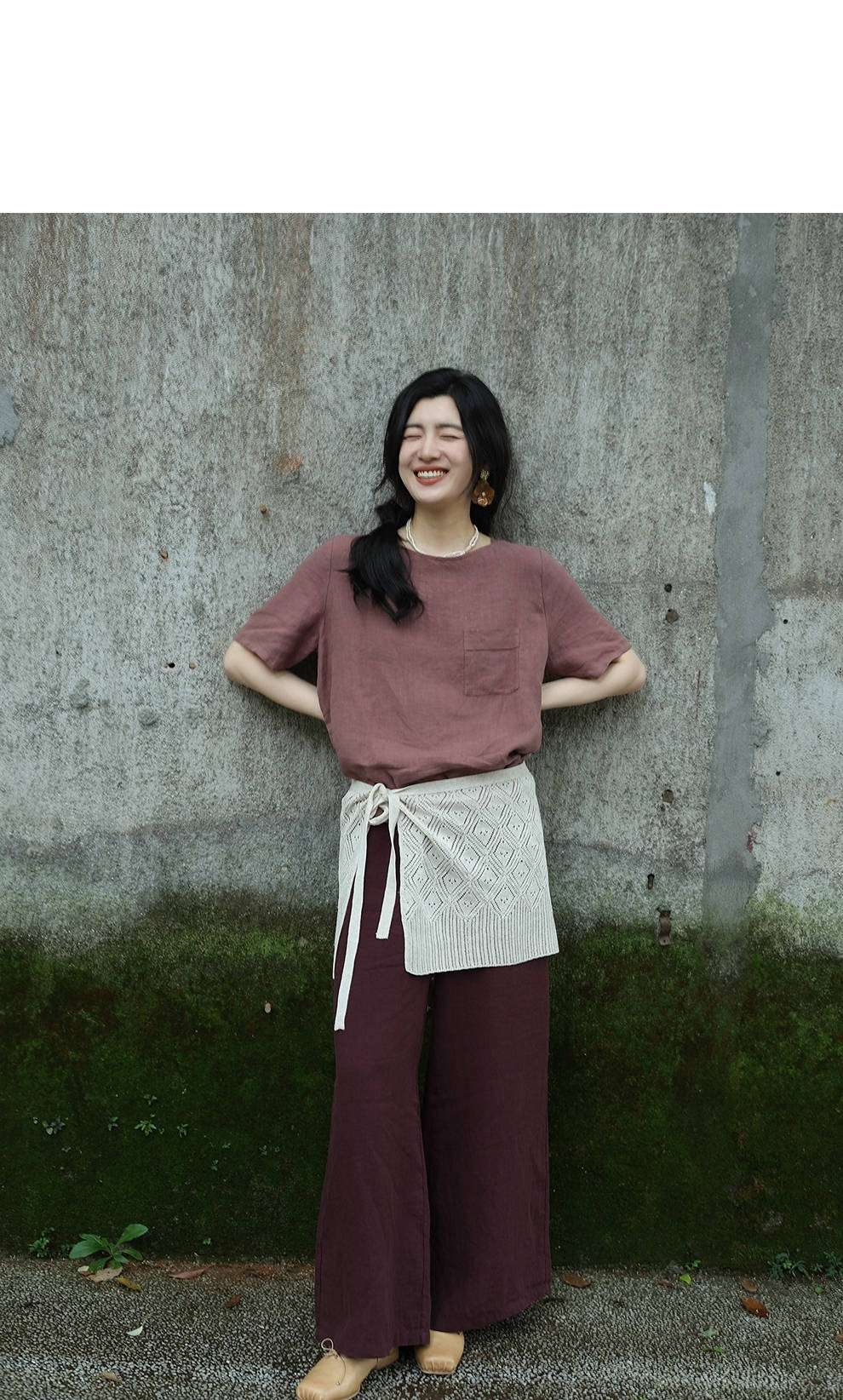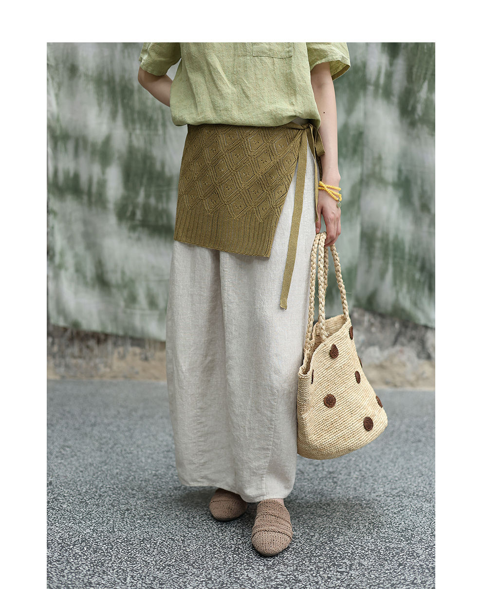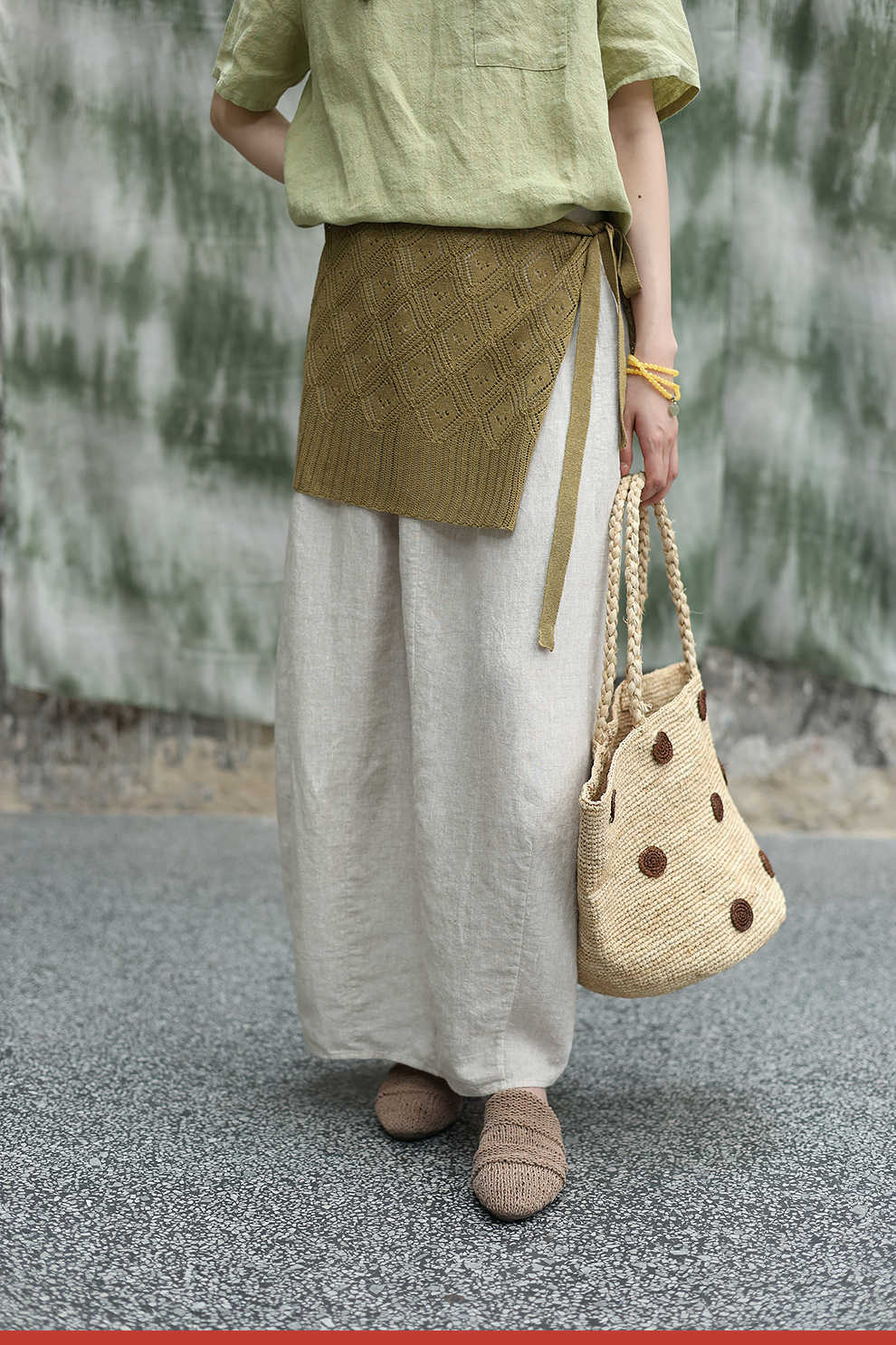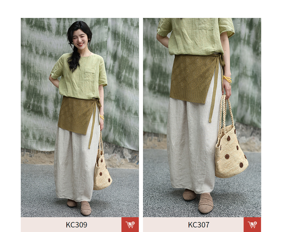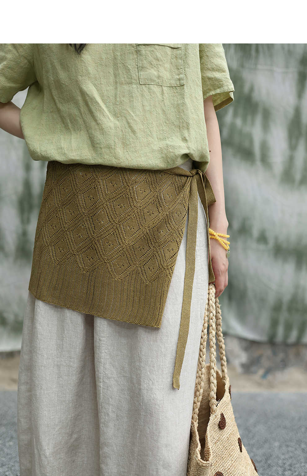 绽放女装341朵/【甜茶系列·三小只】冰镇亚麻镂空毛织系带屁帘
