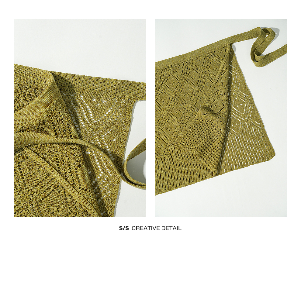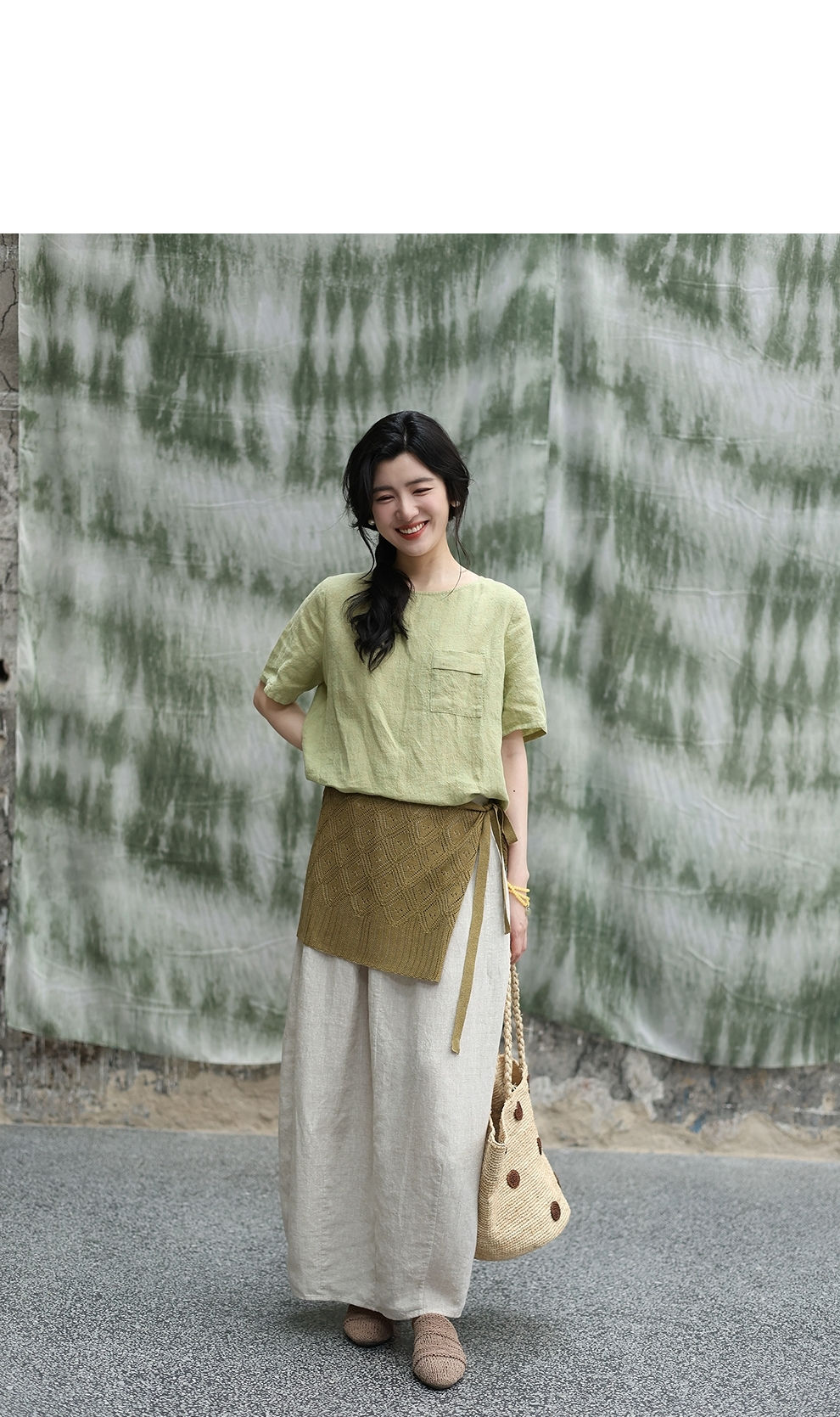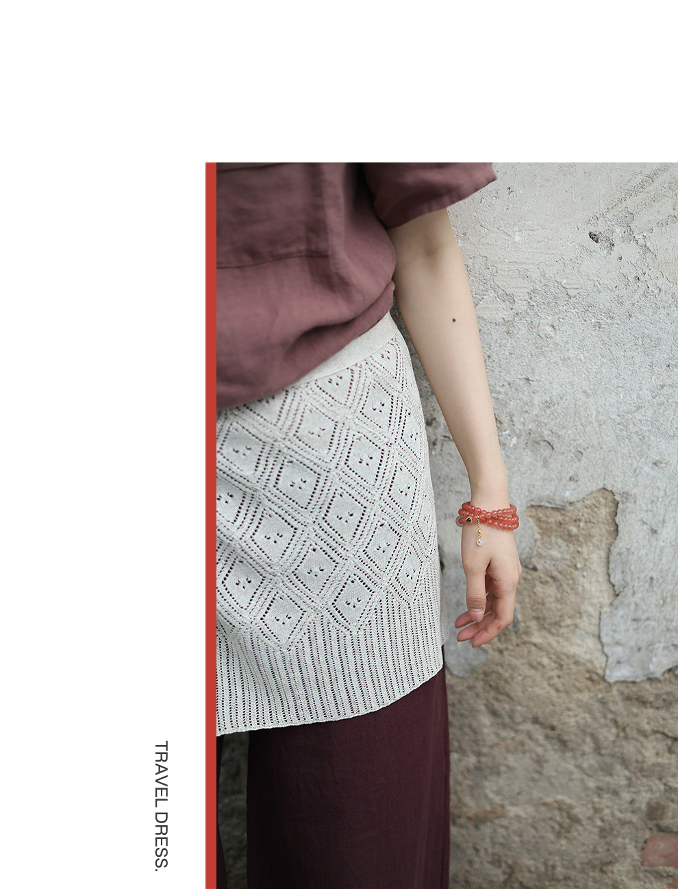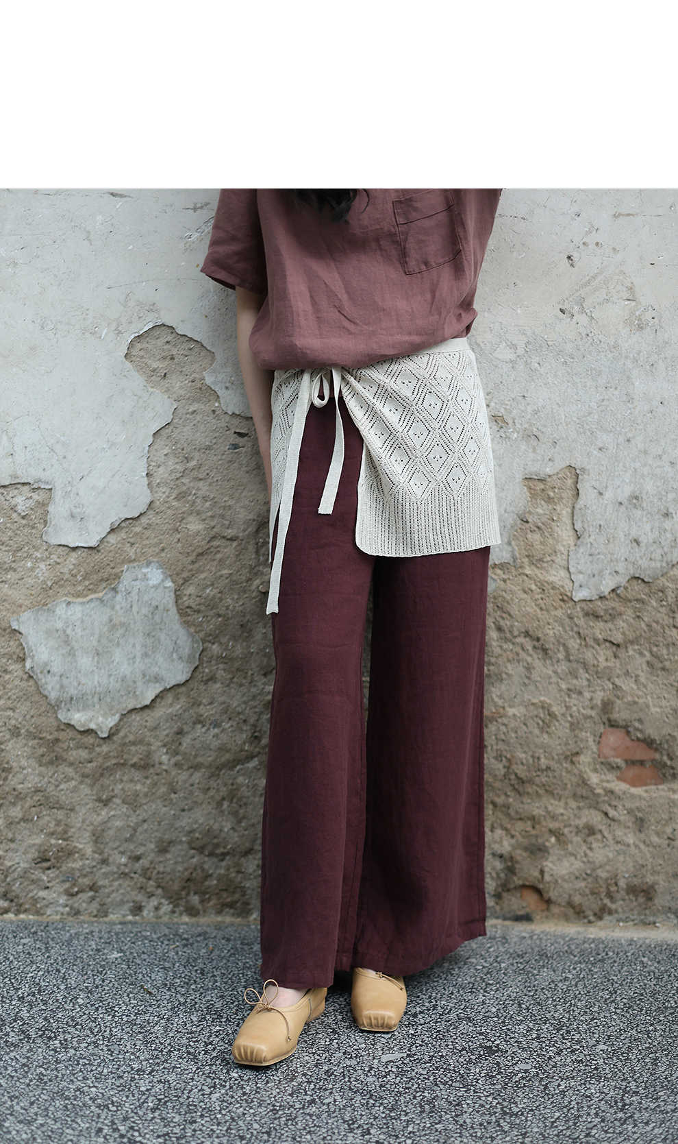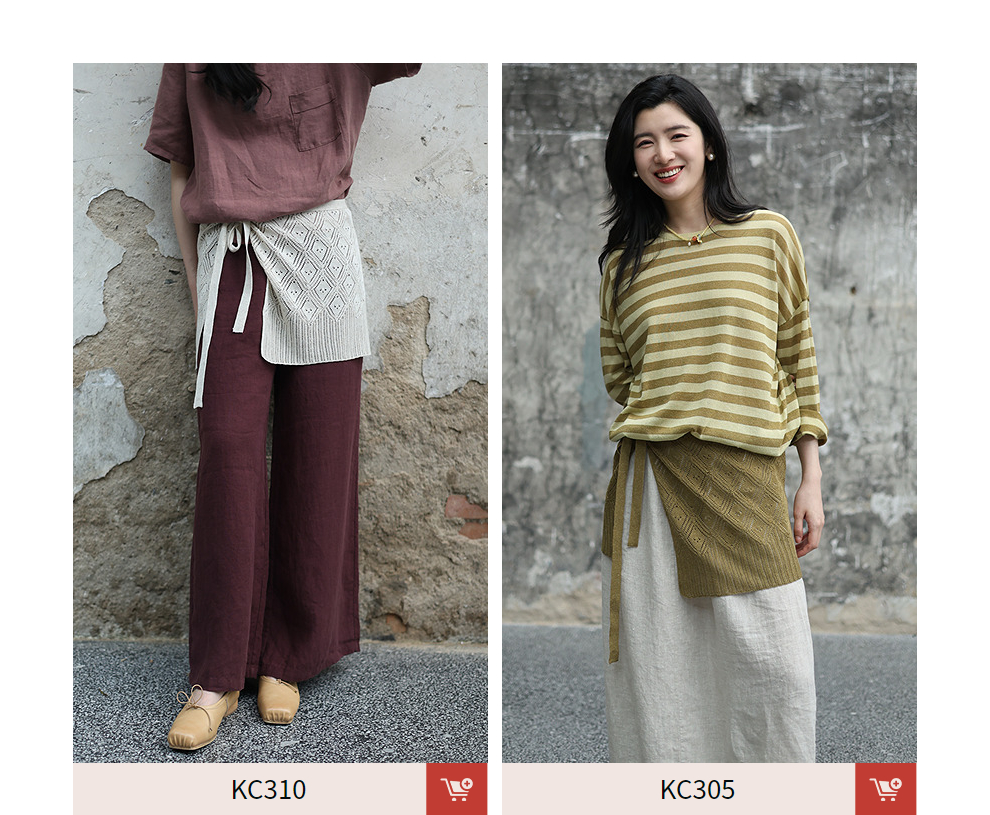 绽放女装341朵/【甜茶系列·三小只】冰镇亚麻镂空毛织系带屁帘