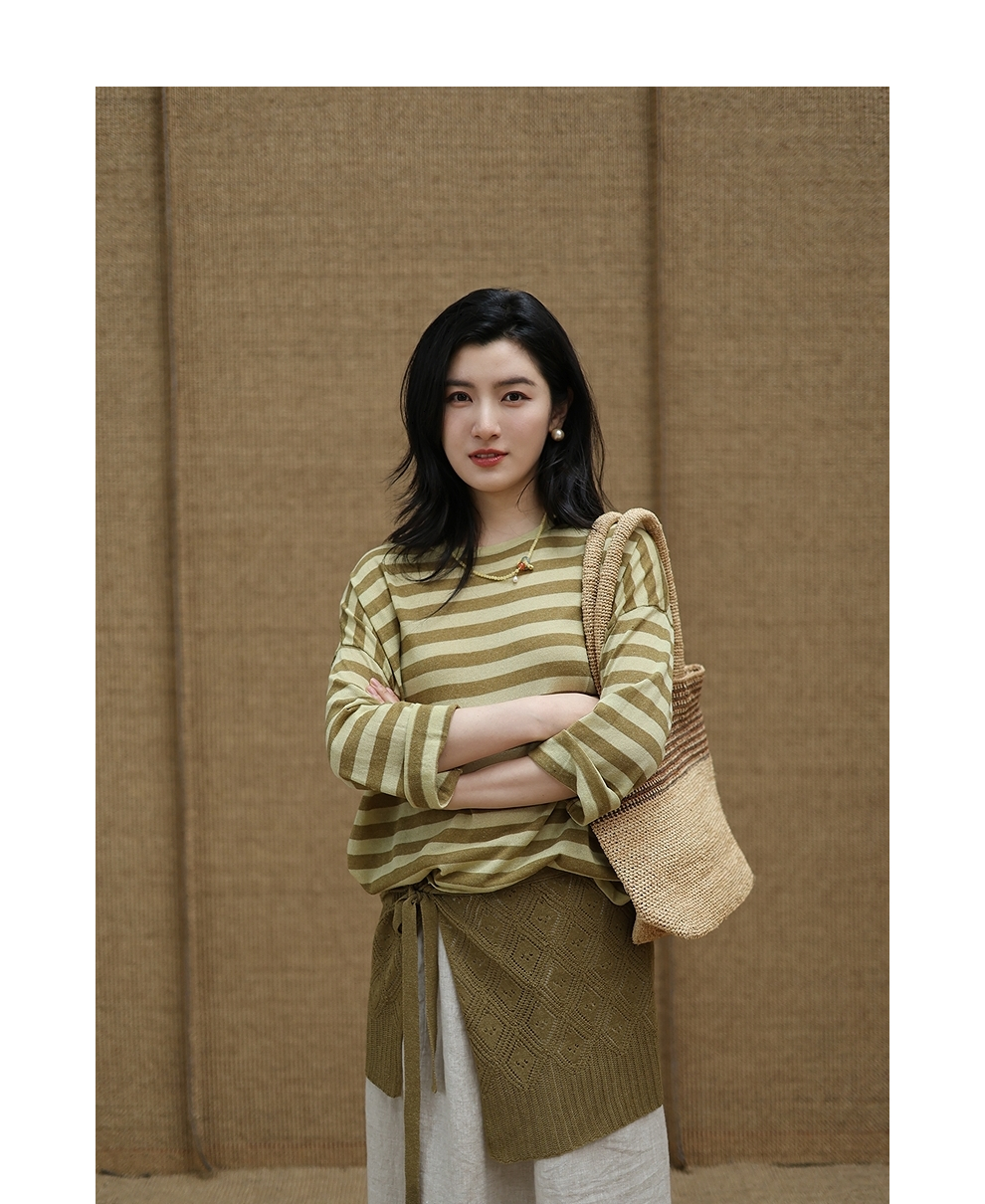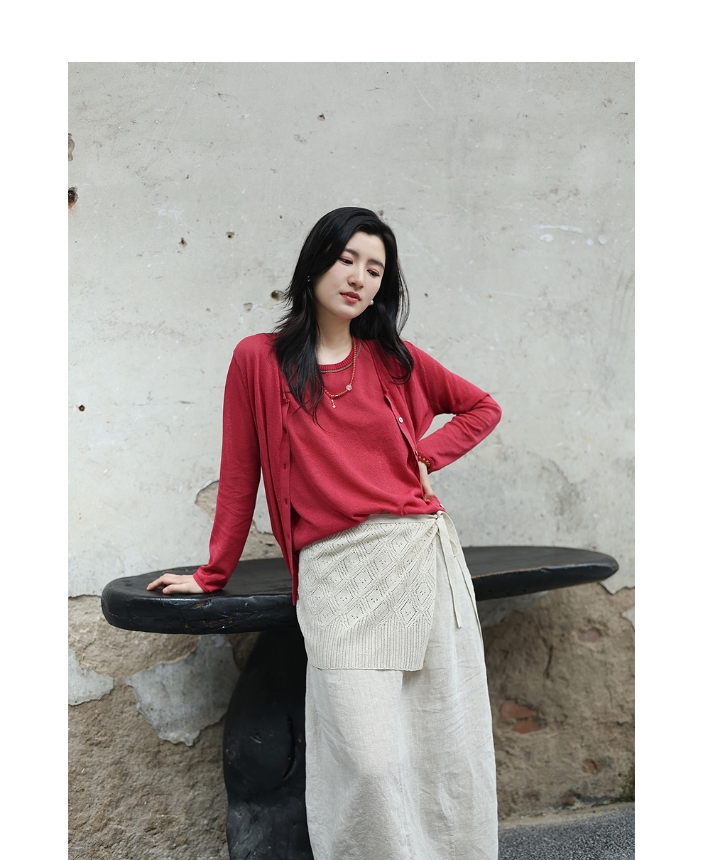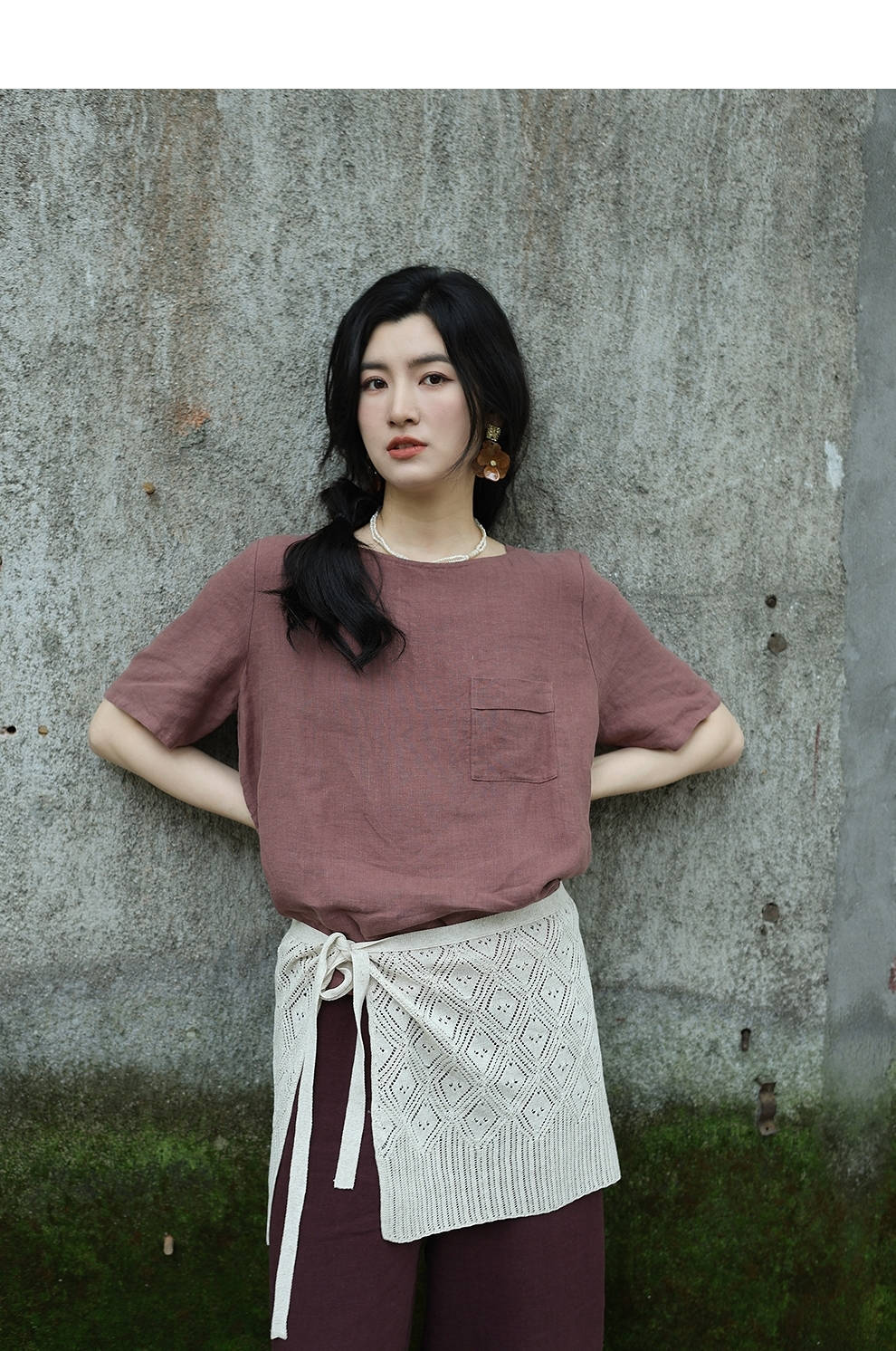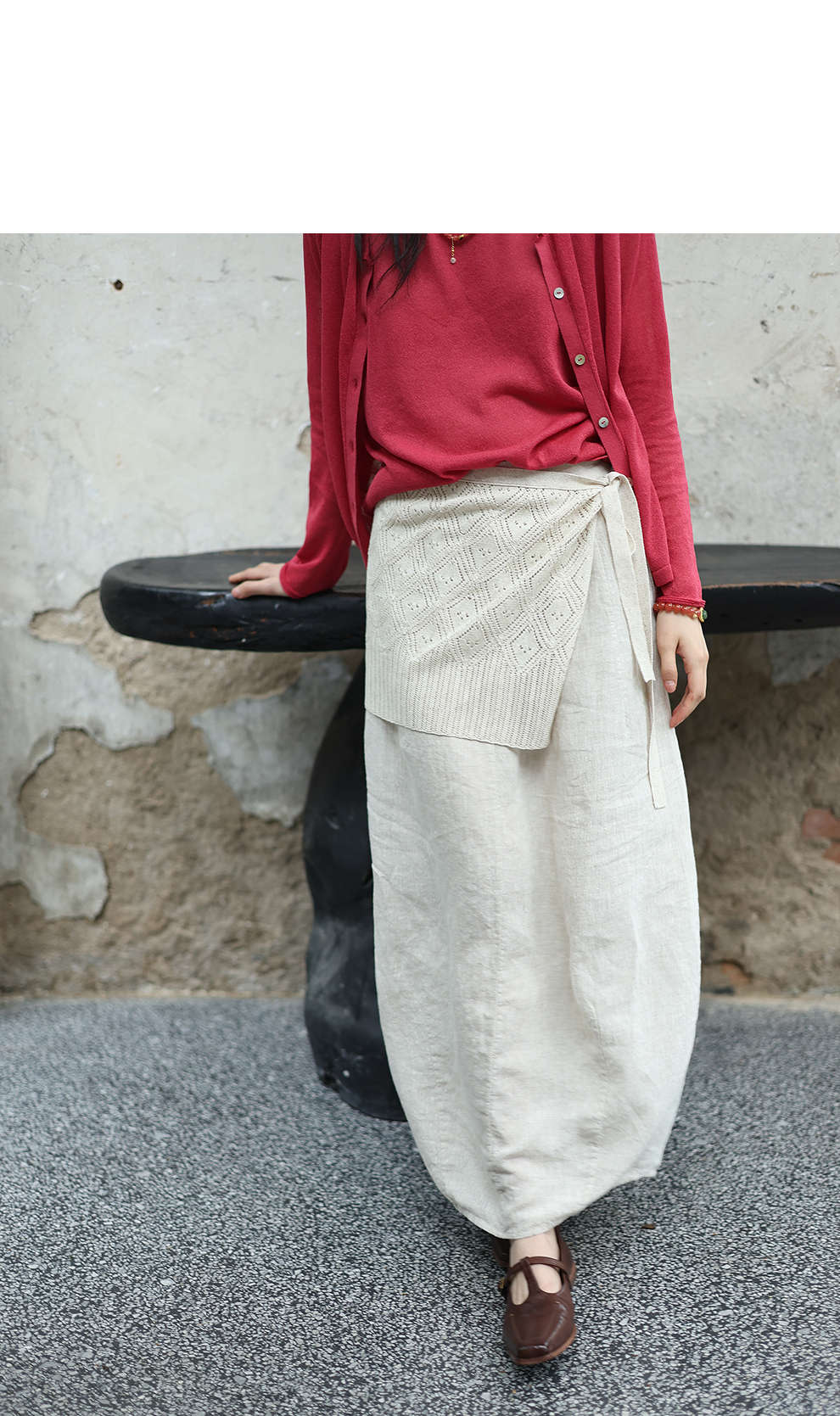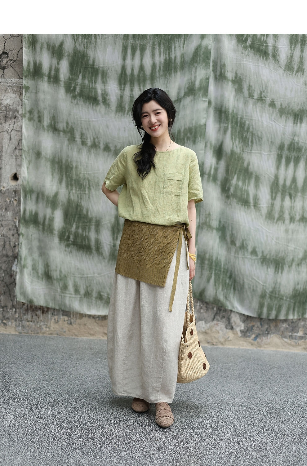 绽放女装341朵/【甜茶系列·三小只】冰镇亚麻镂空毛织系带屁帘