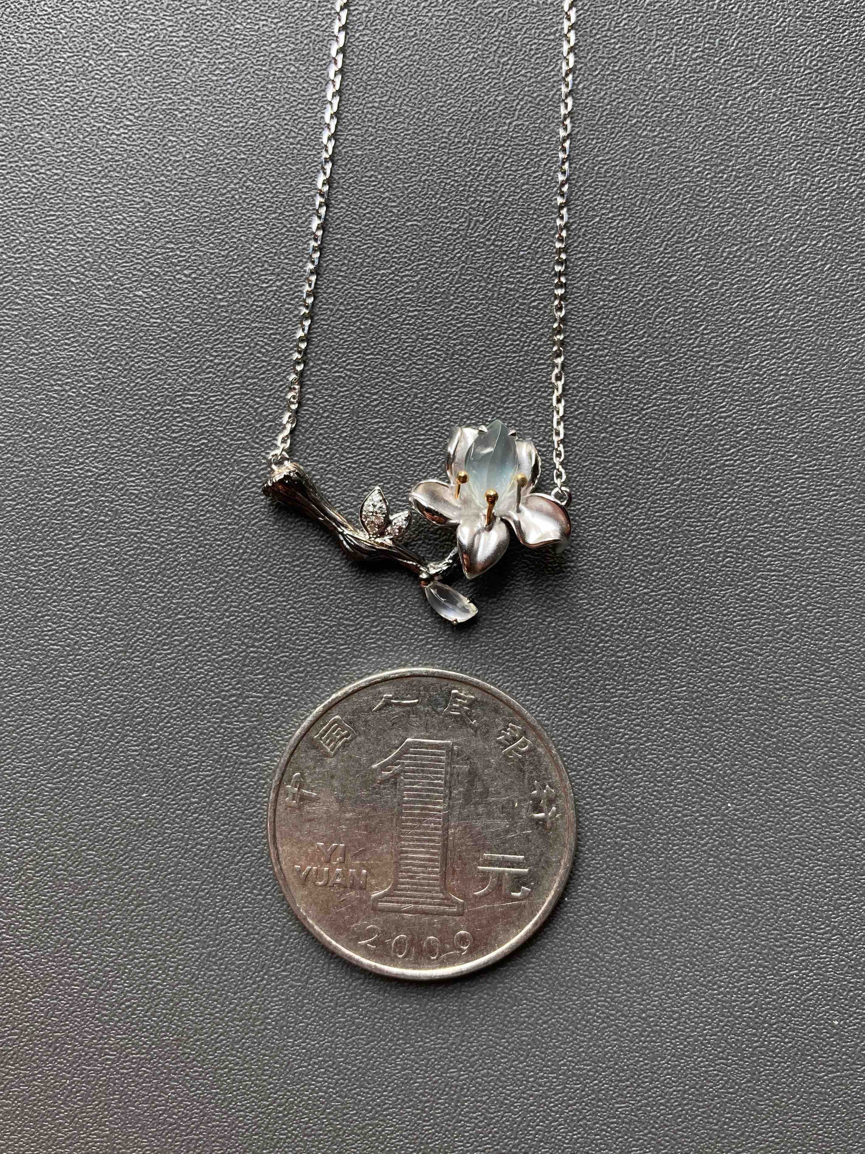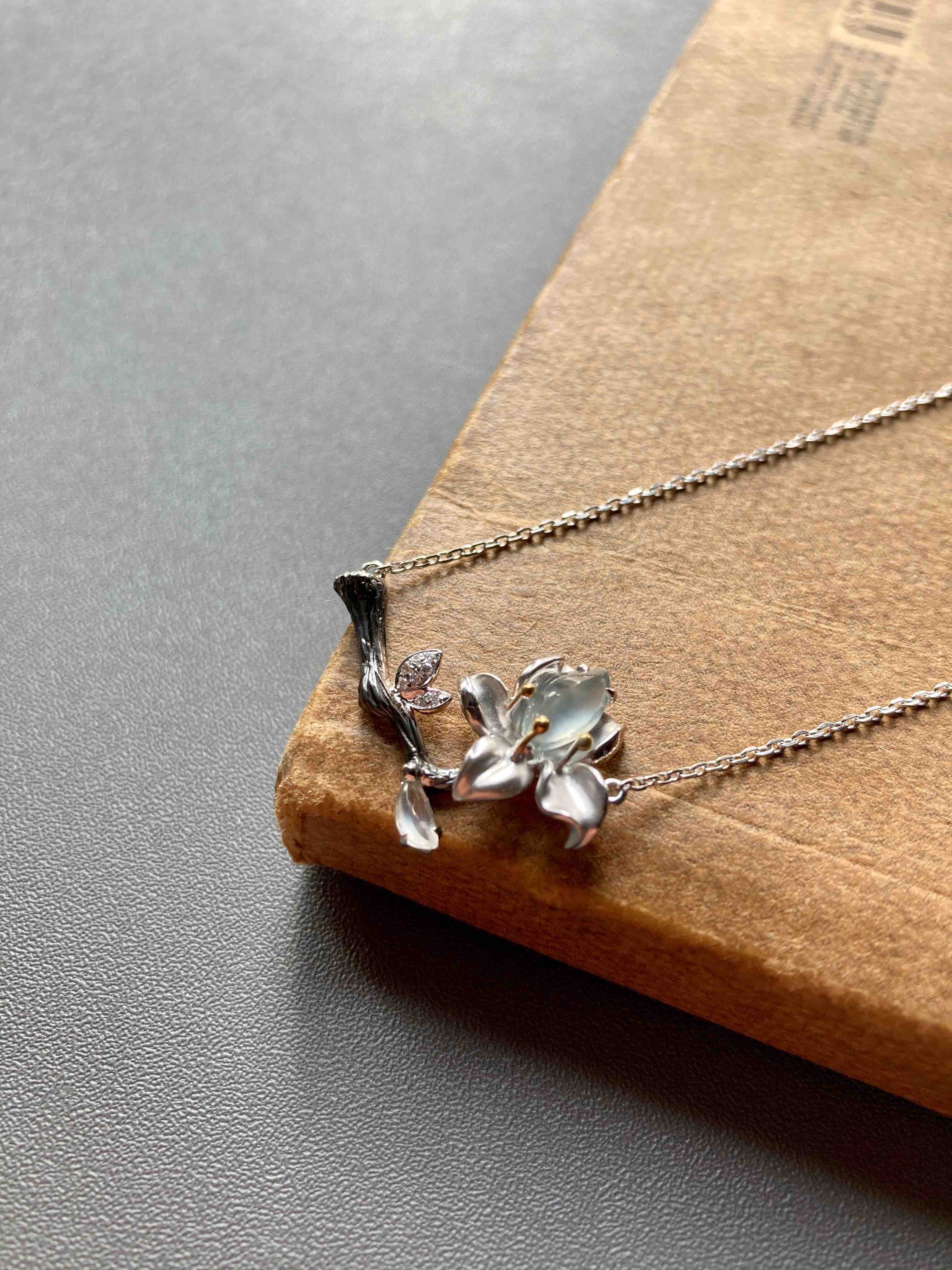 玻璃种翡翠玉兰花锁骨链项链18k白金黄金钻石镶嵌