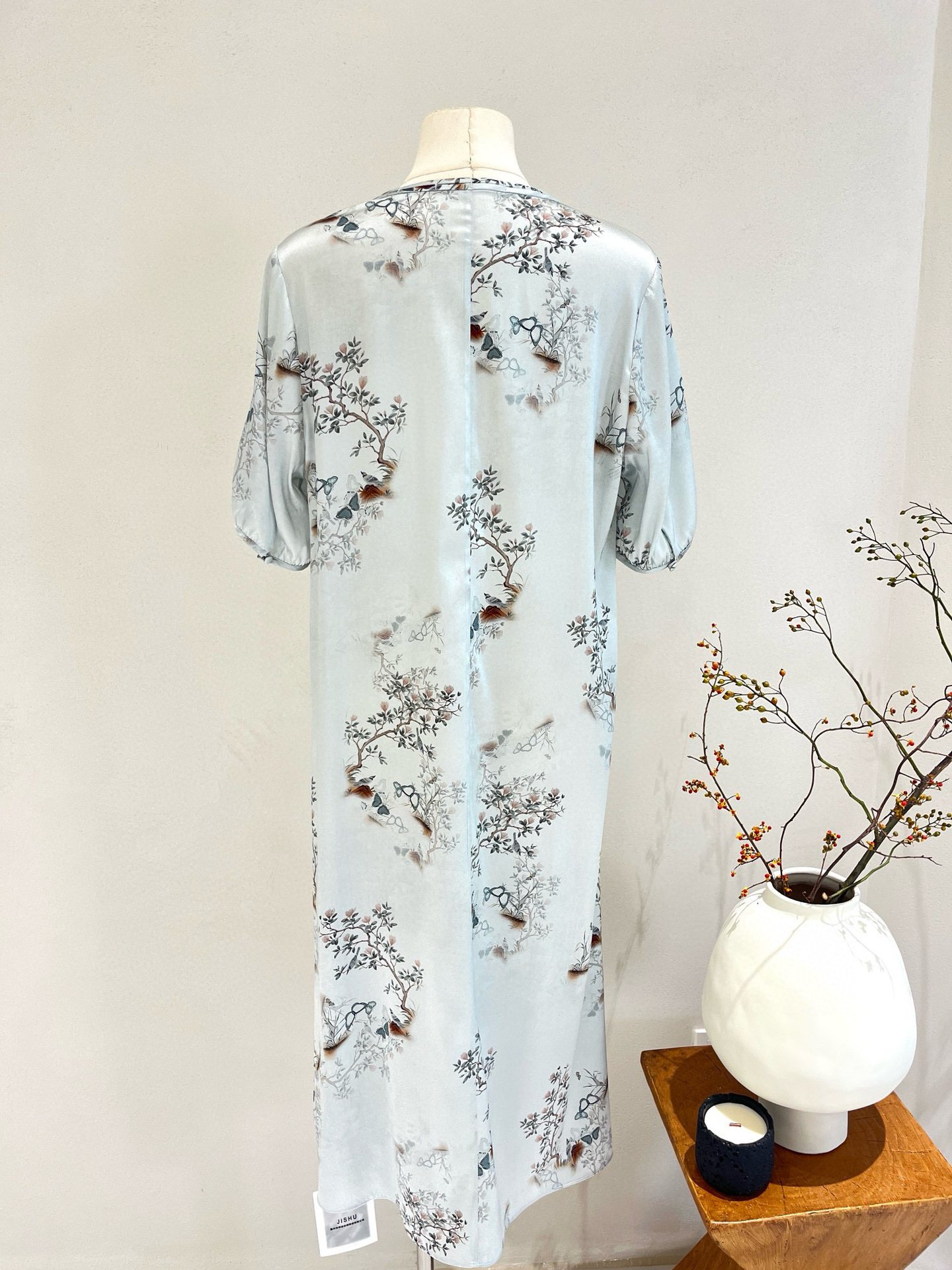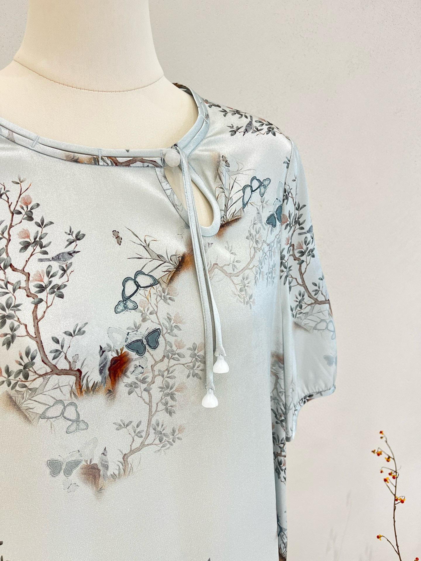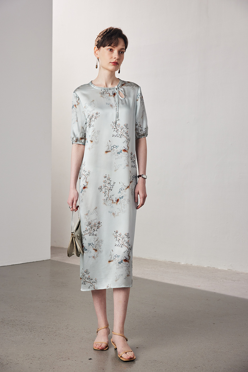 晕染工艺朦胧感国画,尽显国风大气优雅,清新淡雅的高级灰色,缎面真丝自带光泽,薄若蝉翼,轻如云雾~