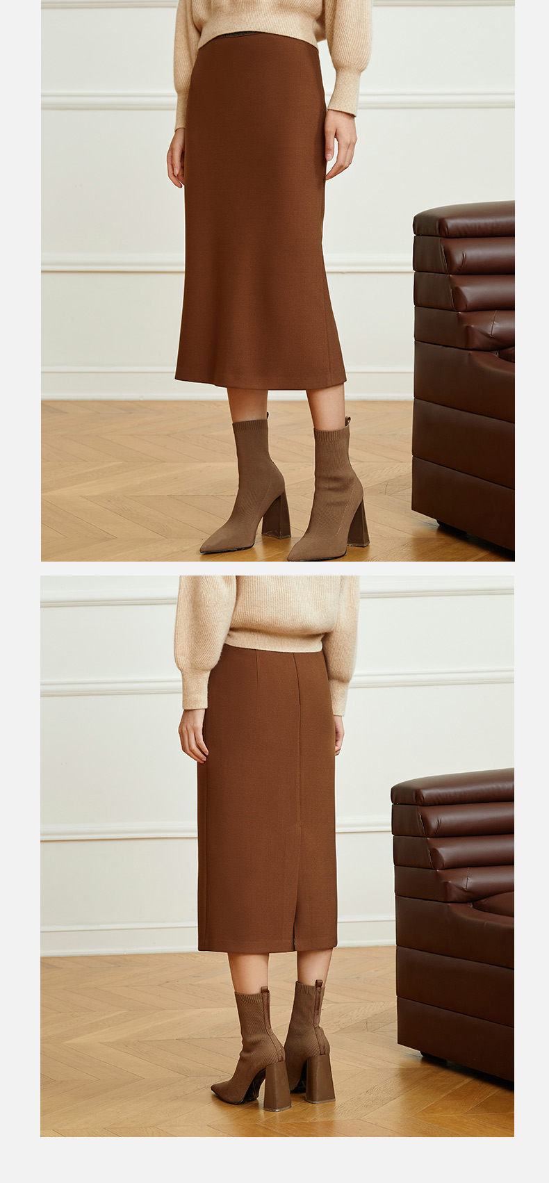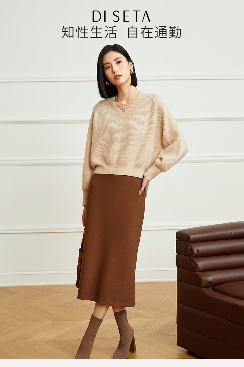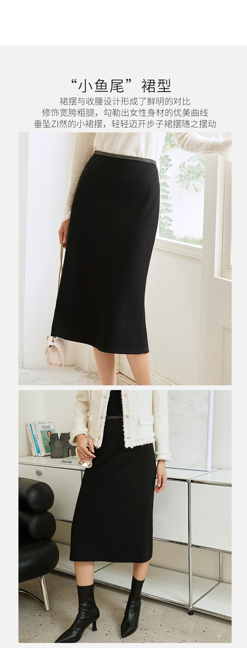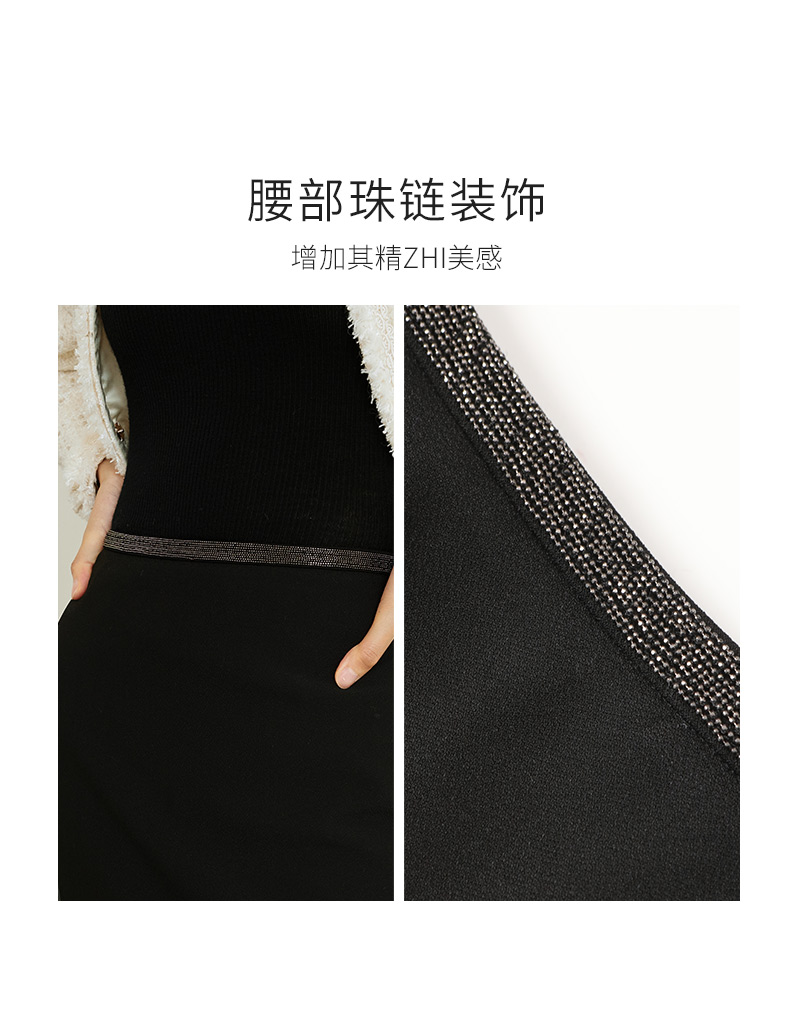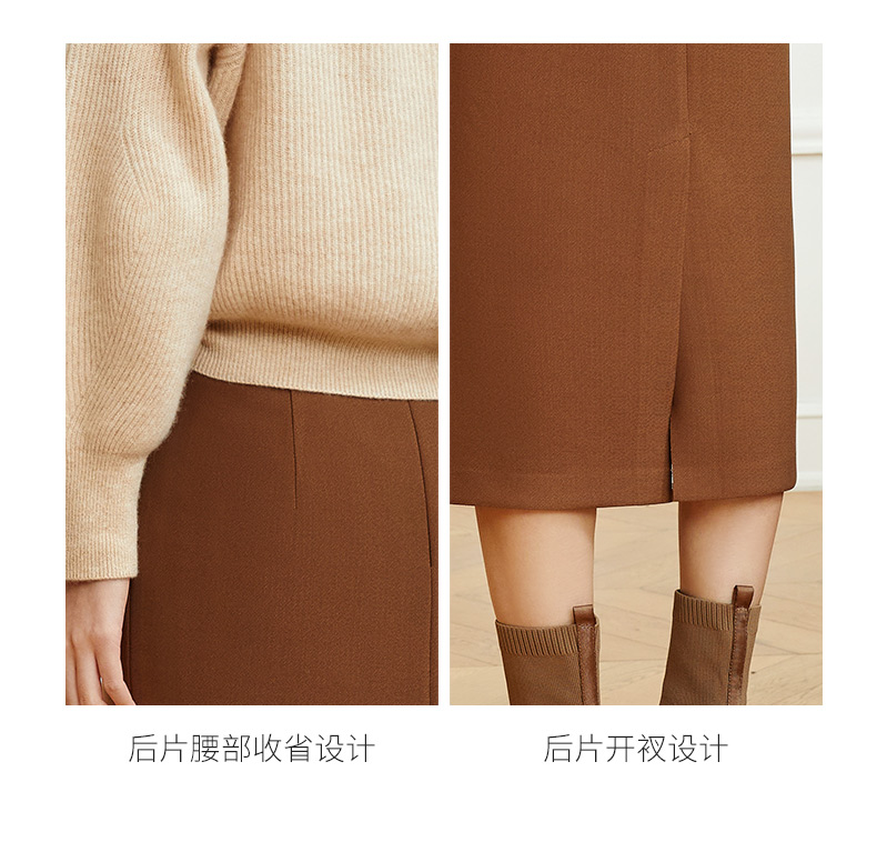玳莎优雅气质鱼尾半身裙2023冬季新款修身简约纯色复古中长款裙子 DD34305