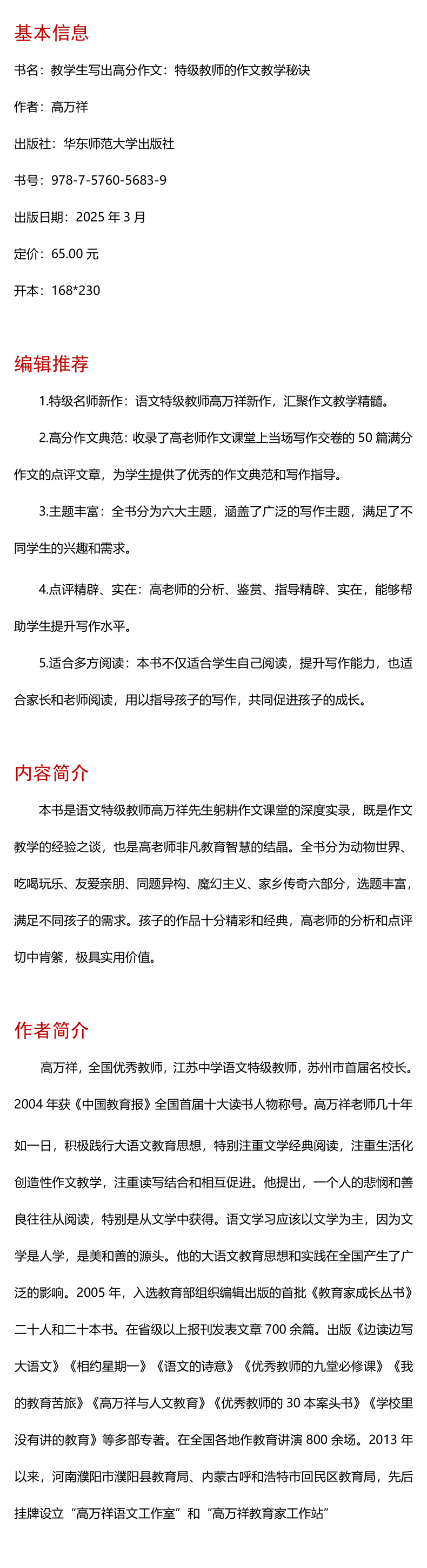 【高万祥著作系列】教学生写出高分作文+边读边写大语文 大夏书系 教师发展