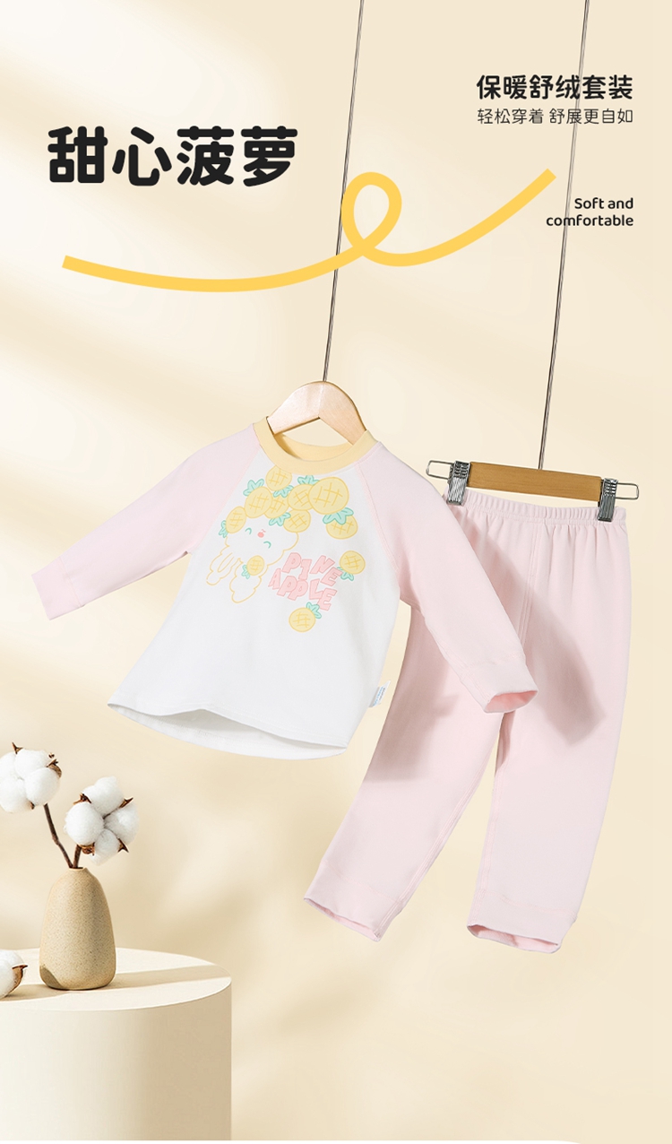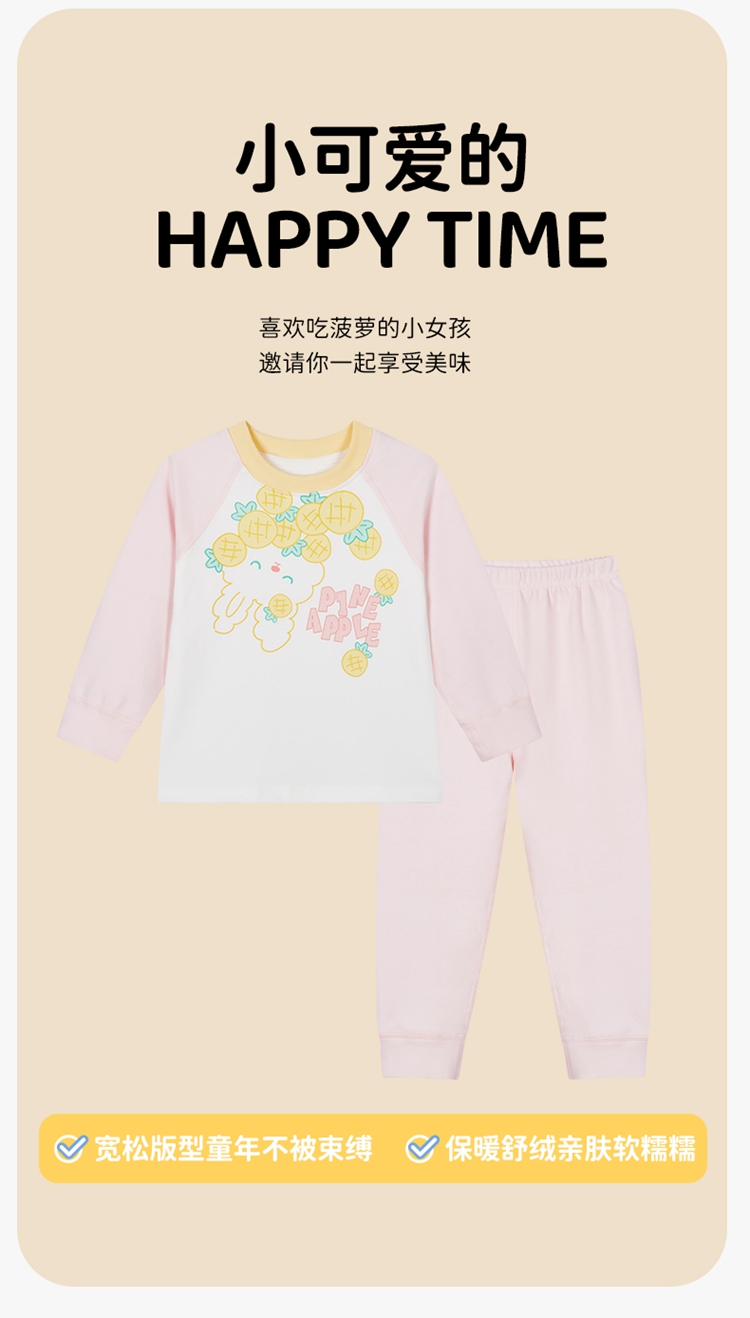 贝贝怡春秋季新款女童圆领家居服女宝秋衣秋裤内衣两件套ZB3DT030