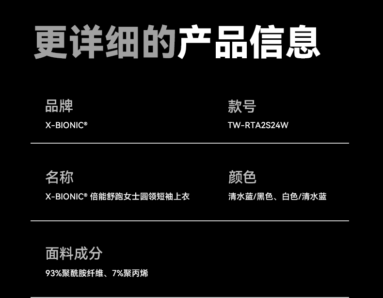 X-BIONIC倍能舒跑女士圆领短袖上衣夏季 运动健身透气