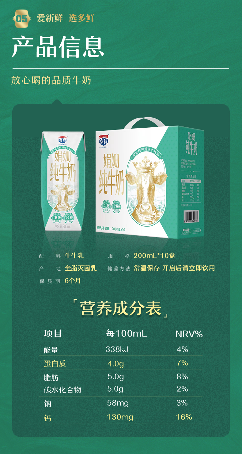 【3箱装】多鲜娟姗纯牛奶礼盒装200ml*10盒*3箱