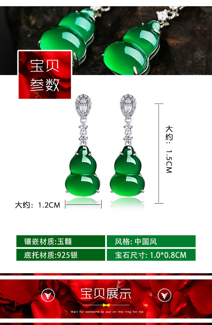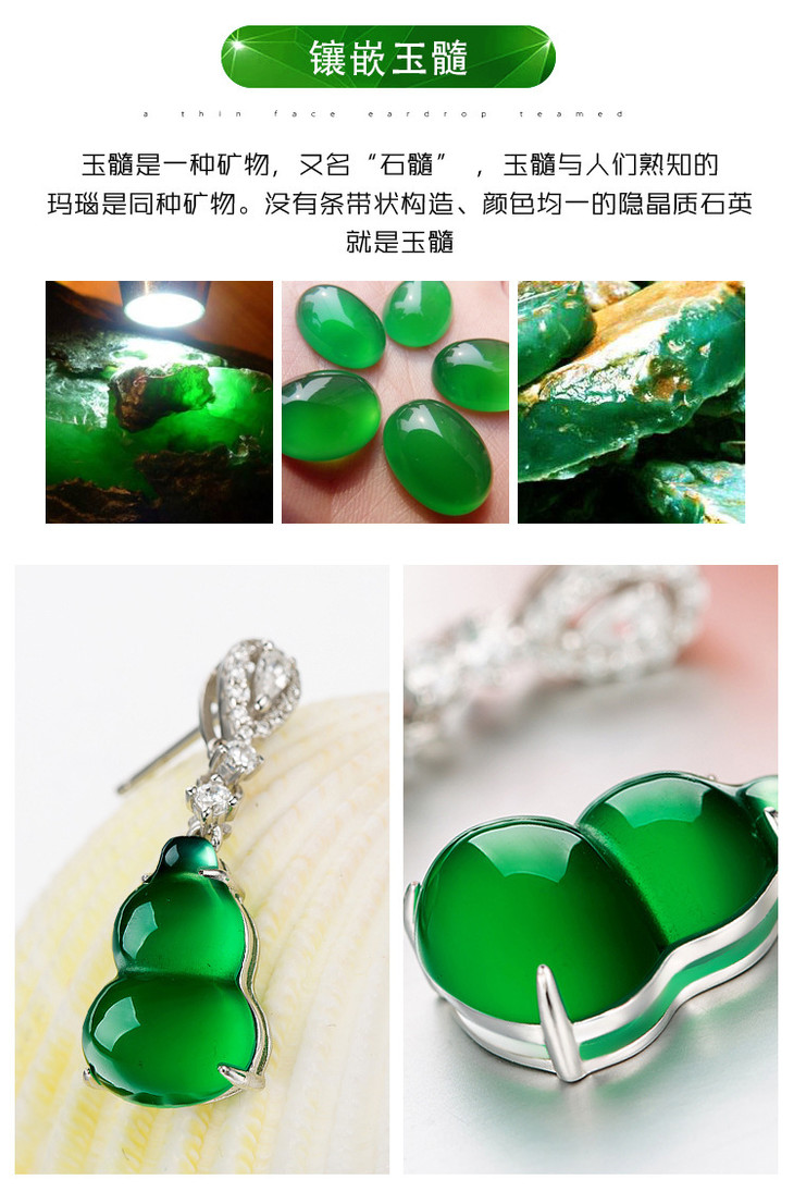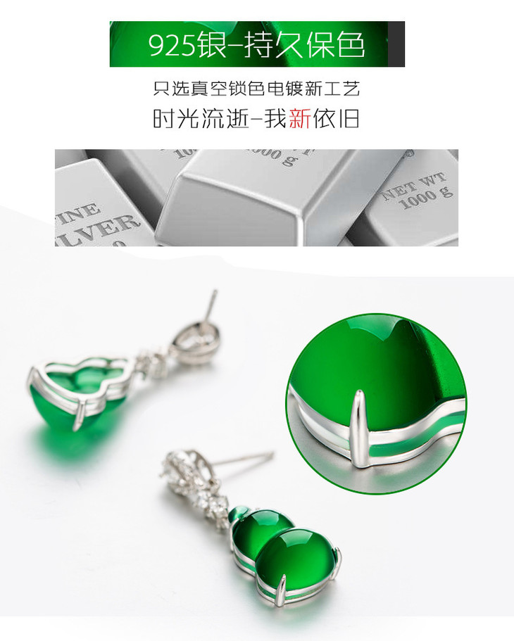 【天然玉髓】纯银冰种绿葫芦耳环耳钉绿玉髓耳坠阳绿耳饰女款