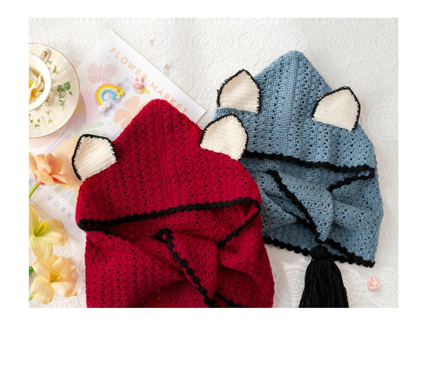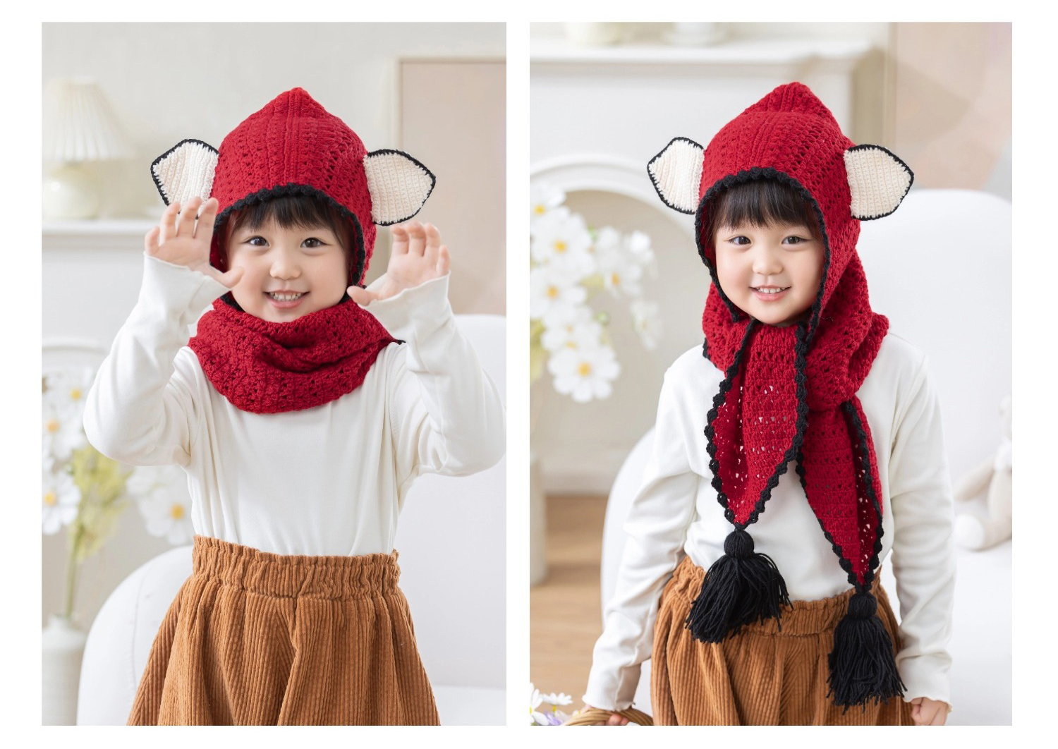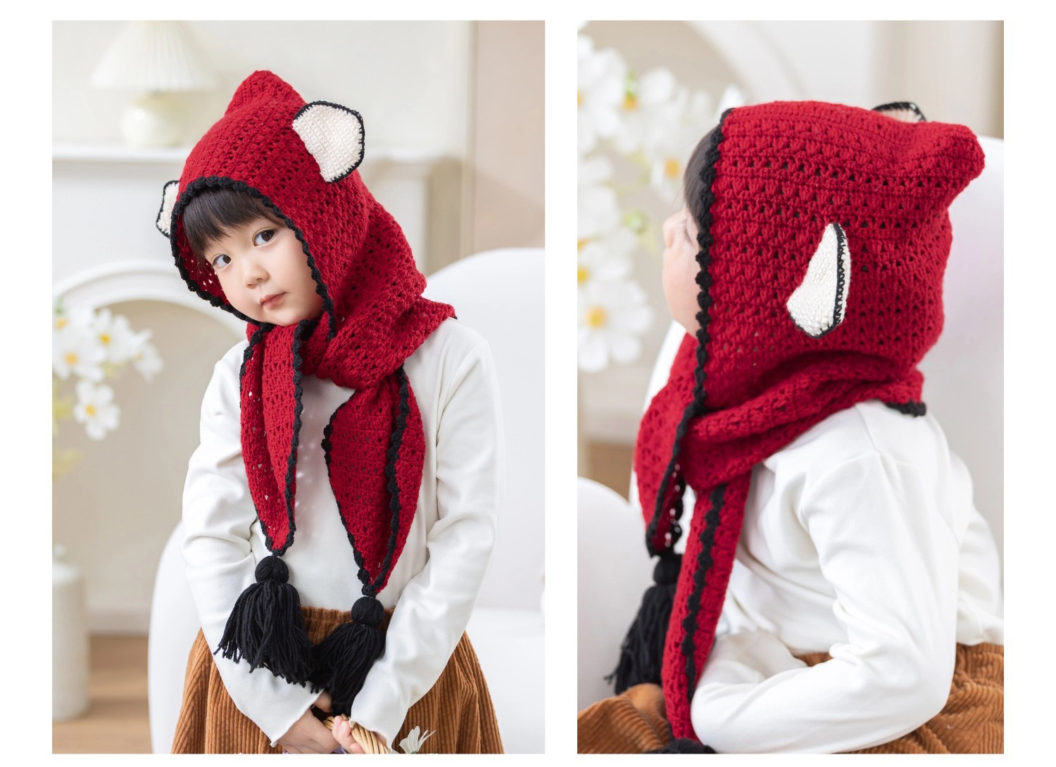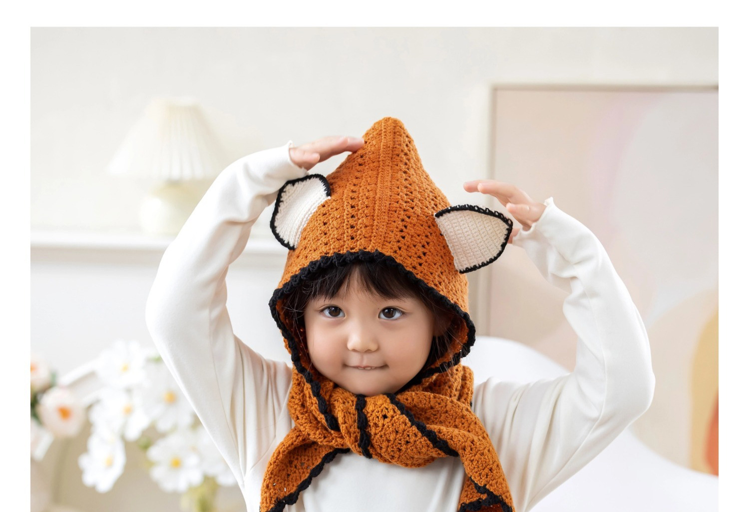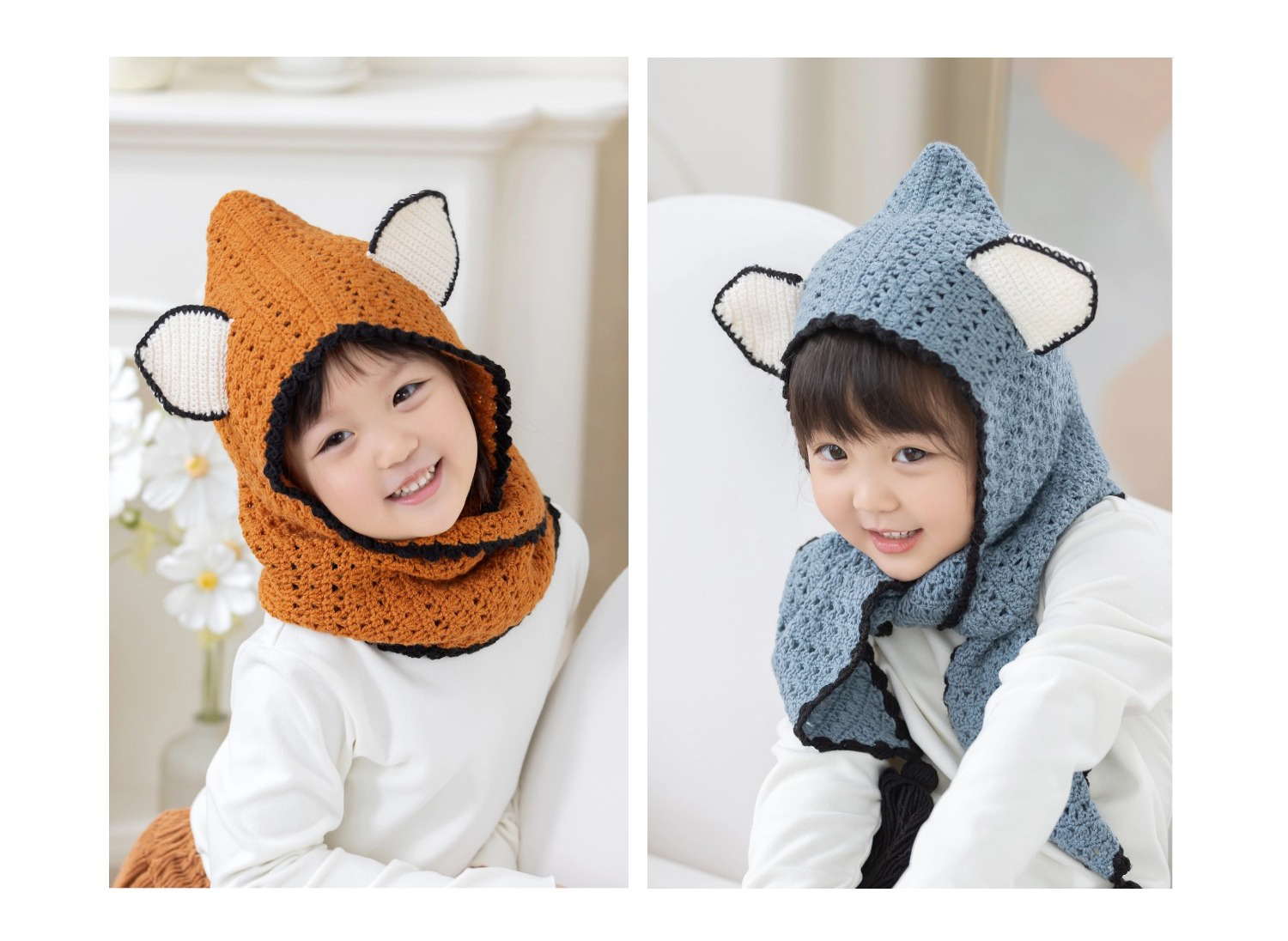 苏苏姐家狐狸连帽围巾手工diy编织钩针莫兰迪4毛线团围巾材料包