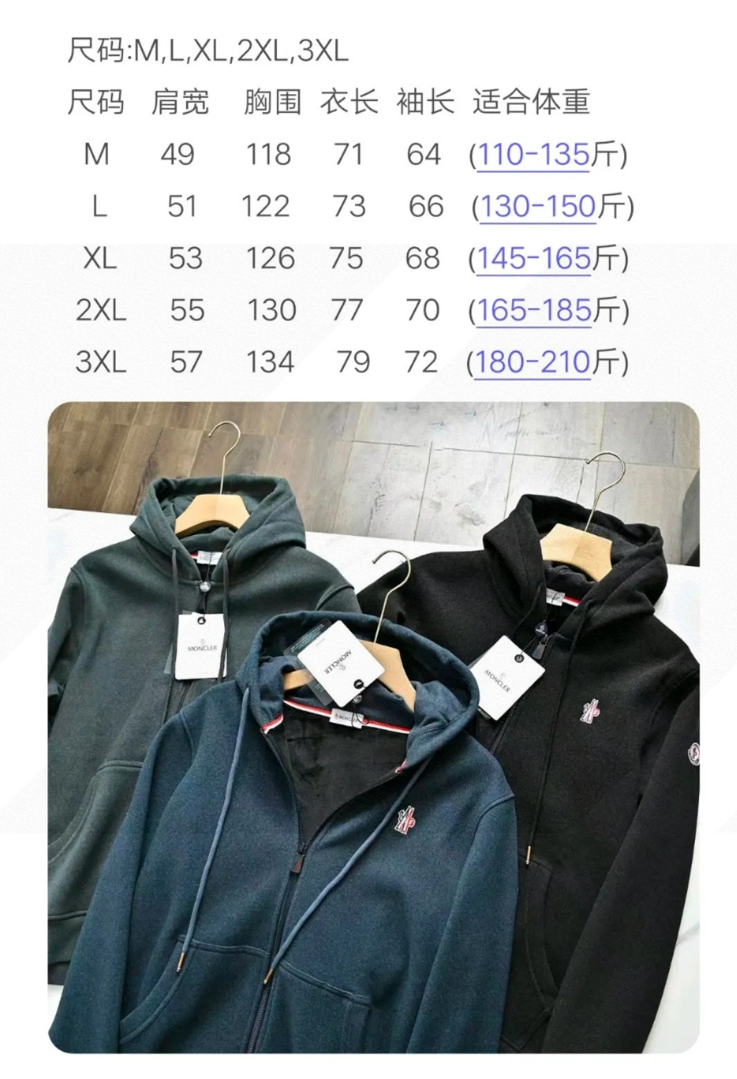 MONCLER蒙口2026春季新款三色连帽加绒加厚夹克拉链外套!