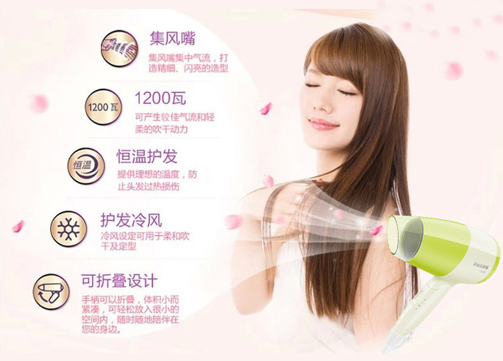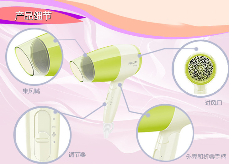 【家用电器】飞利浦便携迷你电吹风机BHC015宿舍冷热风可折叠家用吹风筒