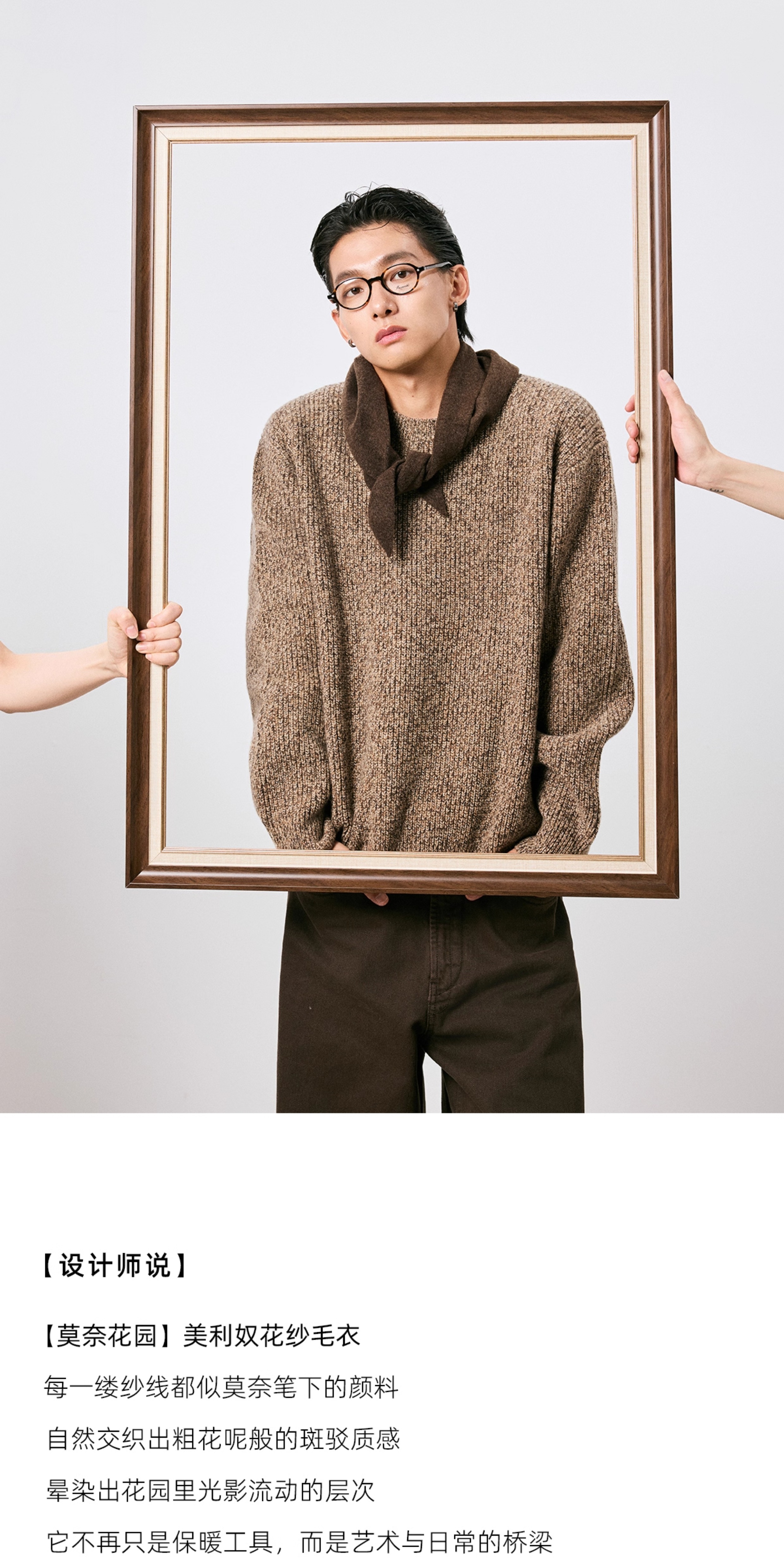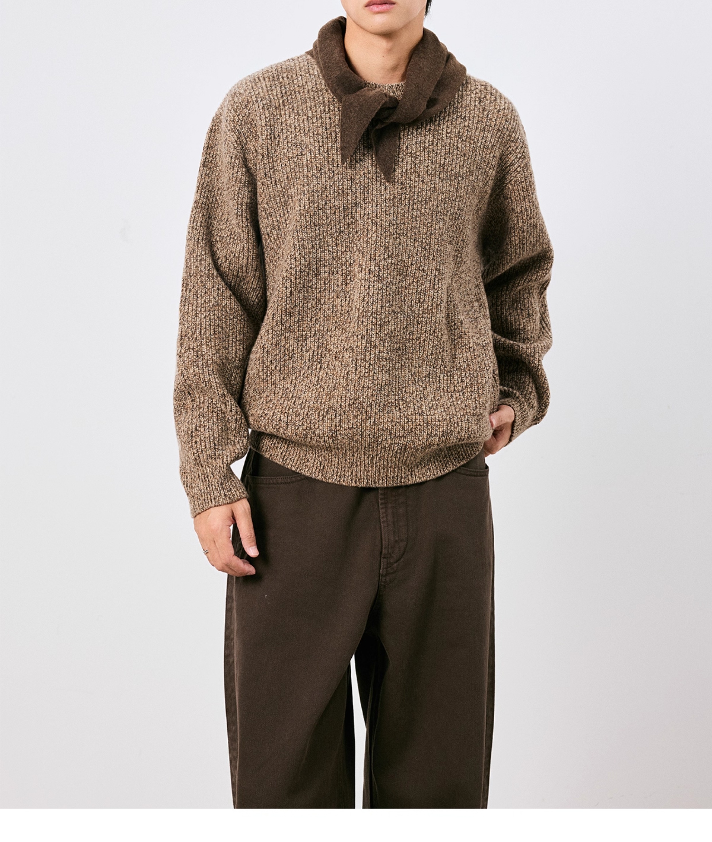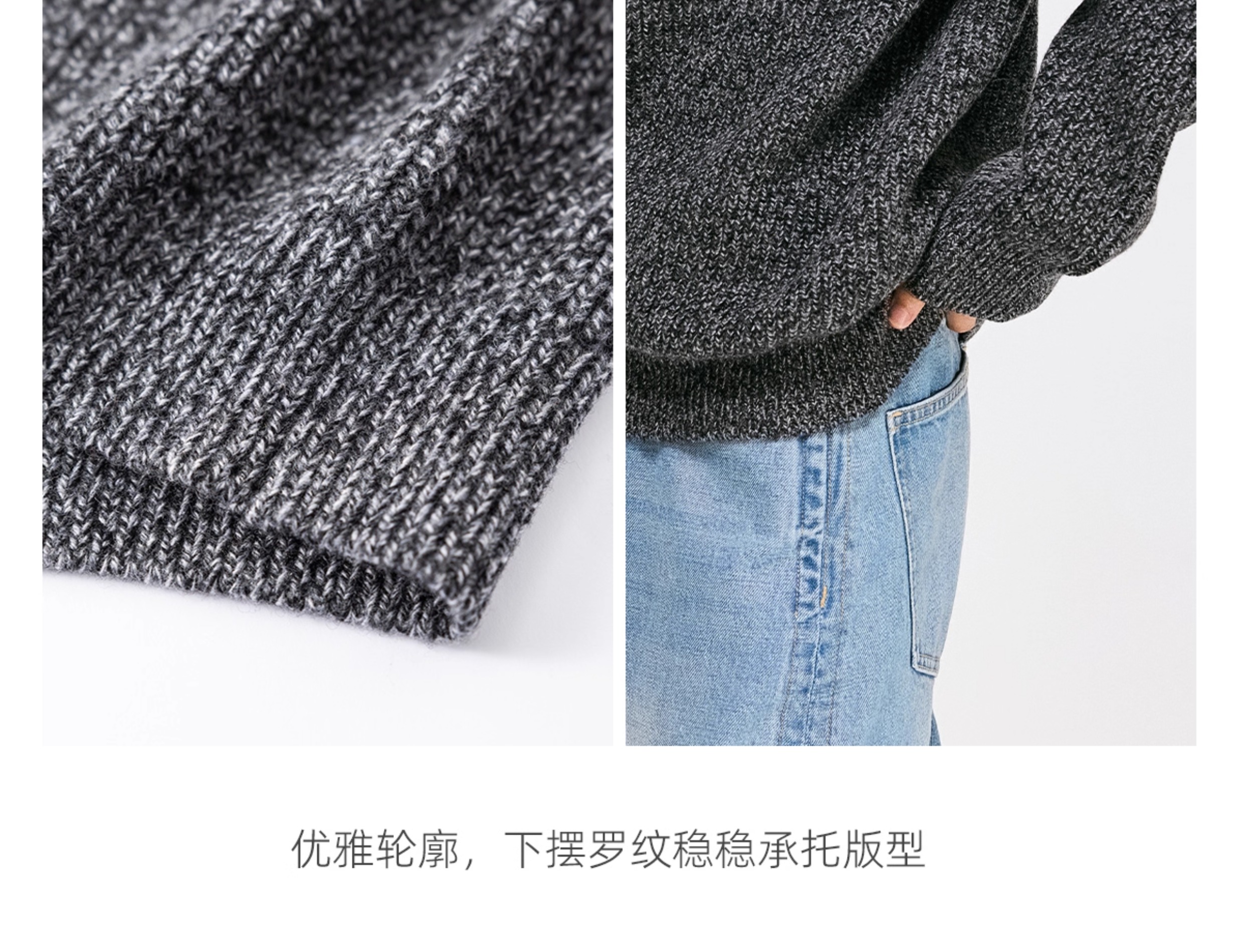 棉仓3671026007-【莫奈花园】美利奴全羊毛花纱套头毛衣男针织衫
