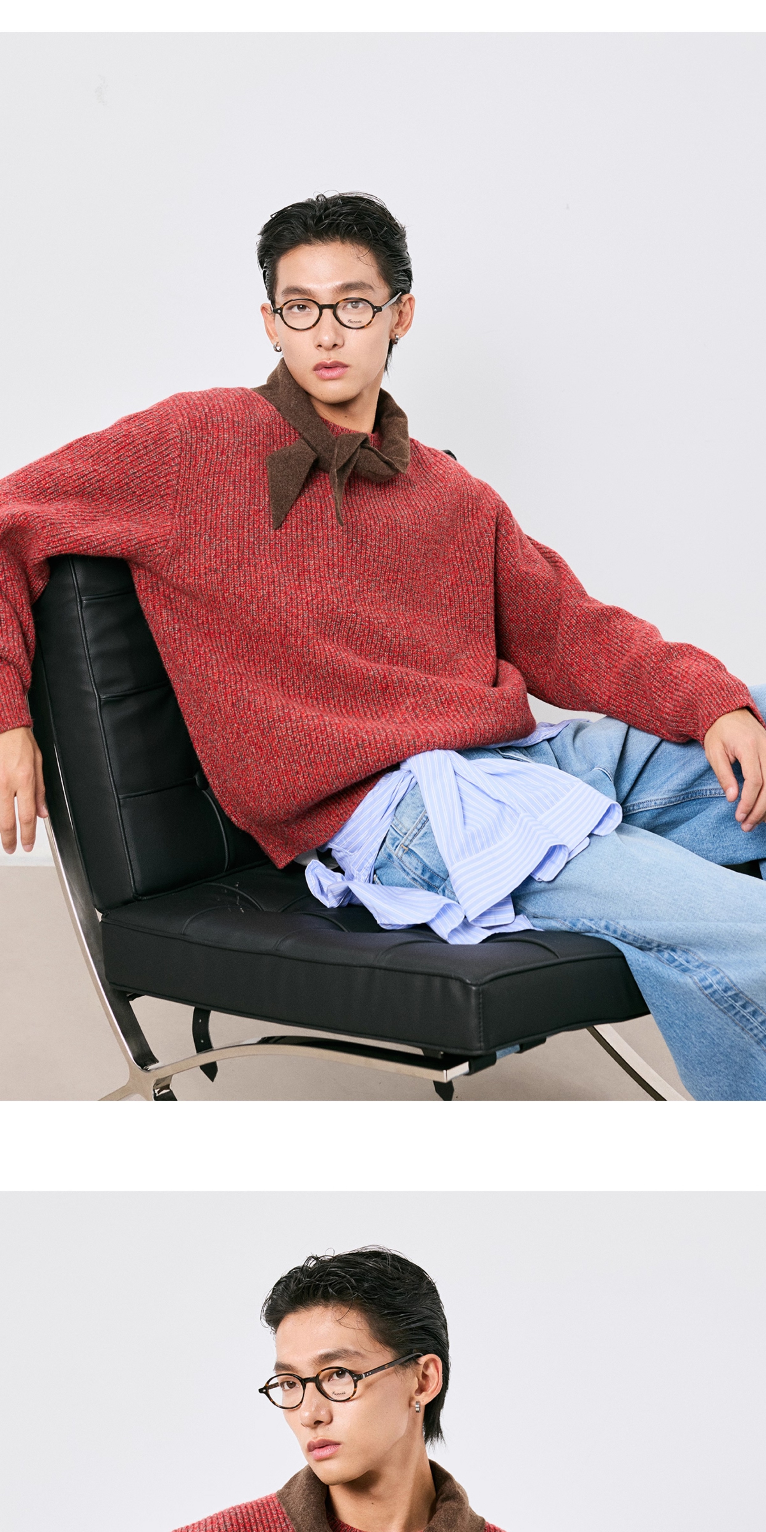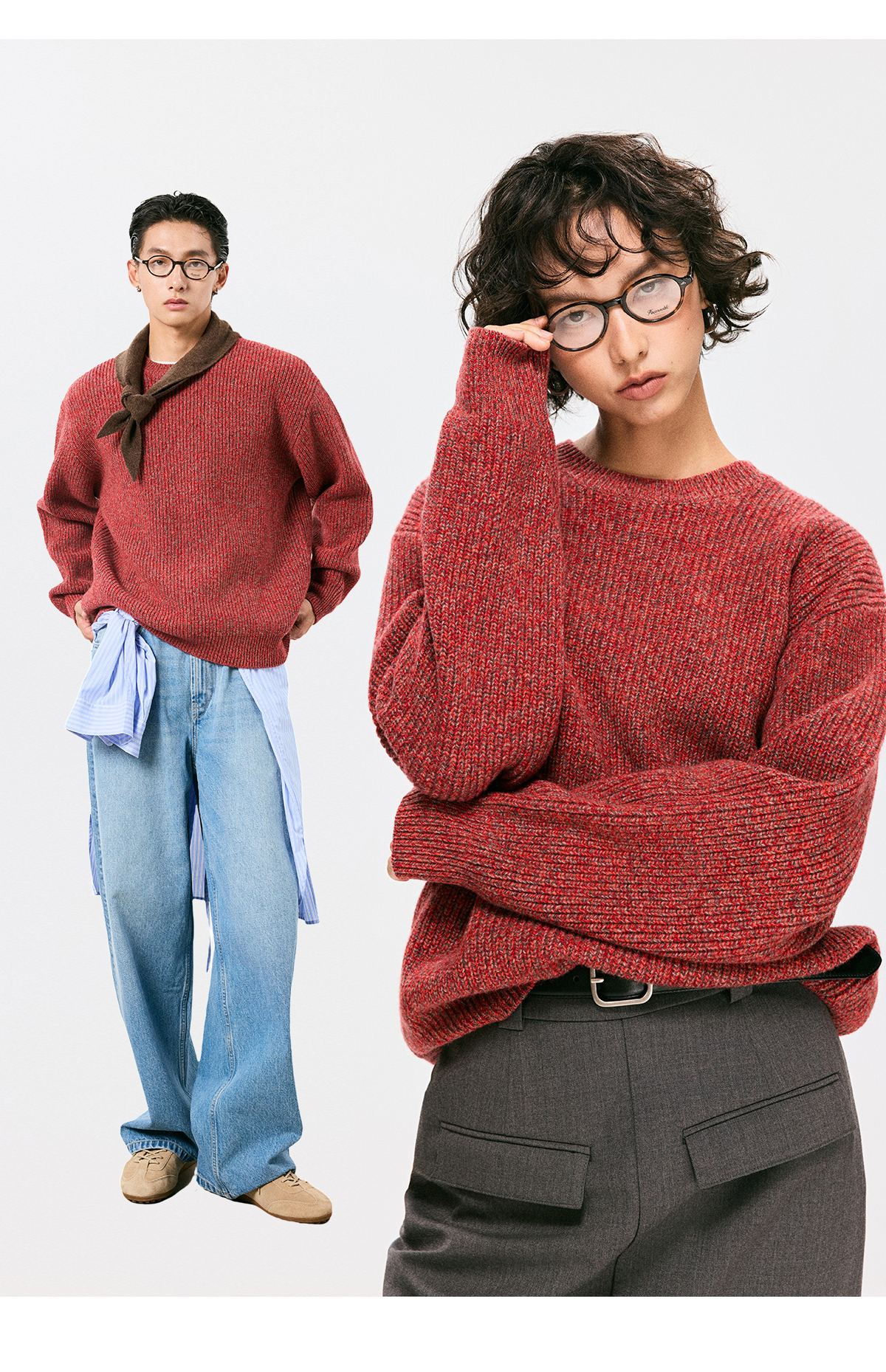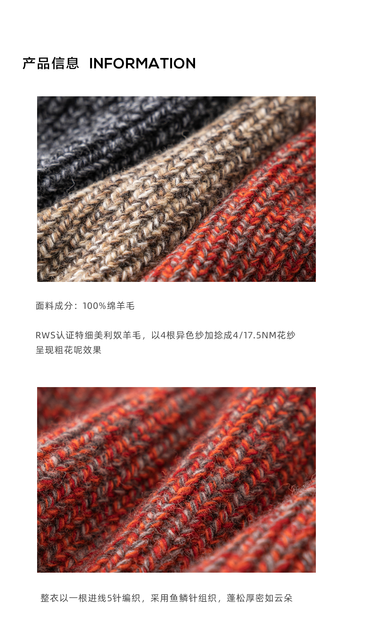 棉仓3671026007-【莫奈花园】美利奴全羊毛花纱套头毛衣男针织衫