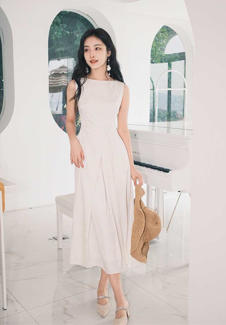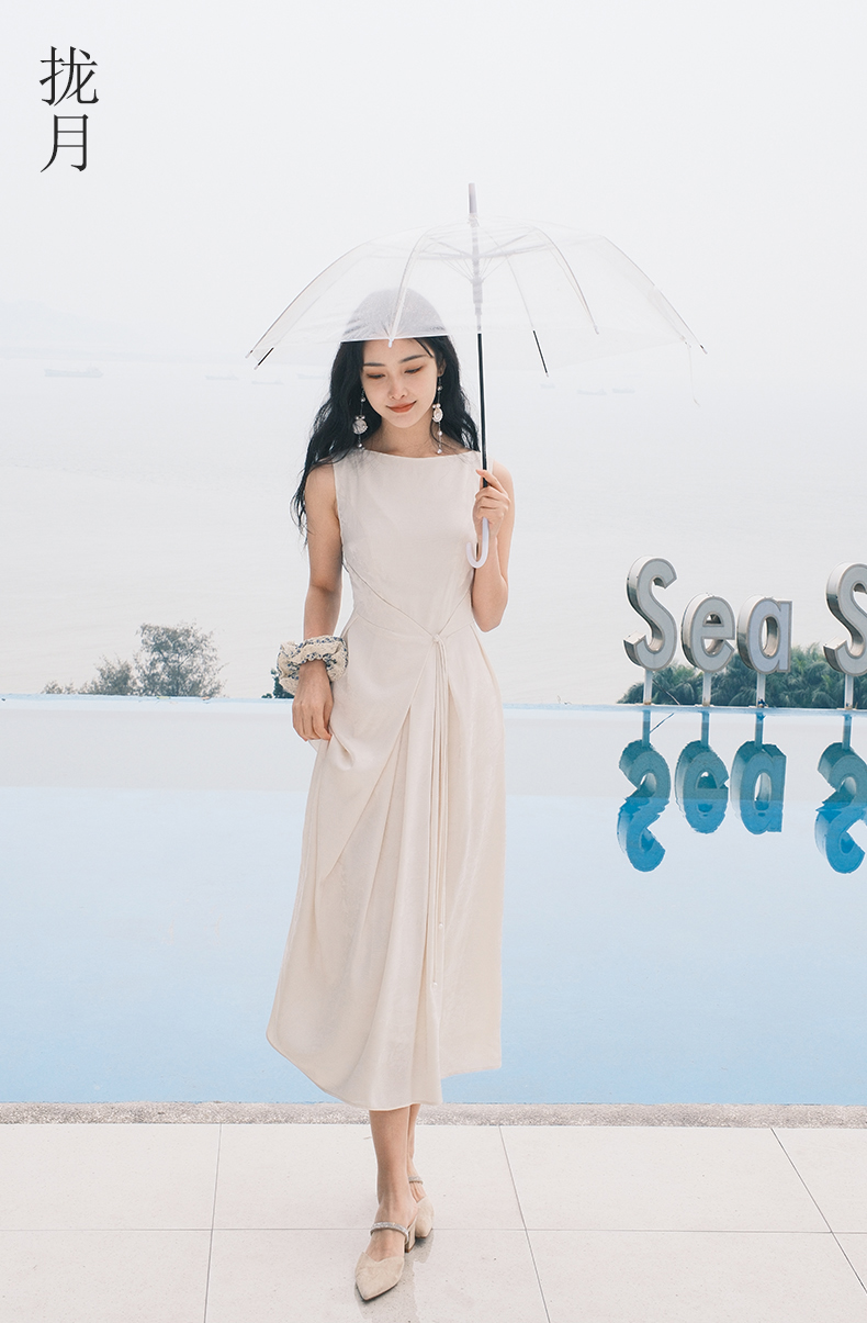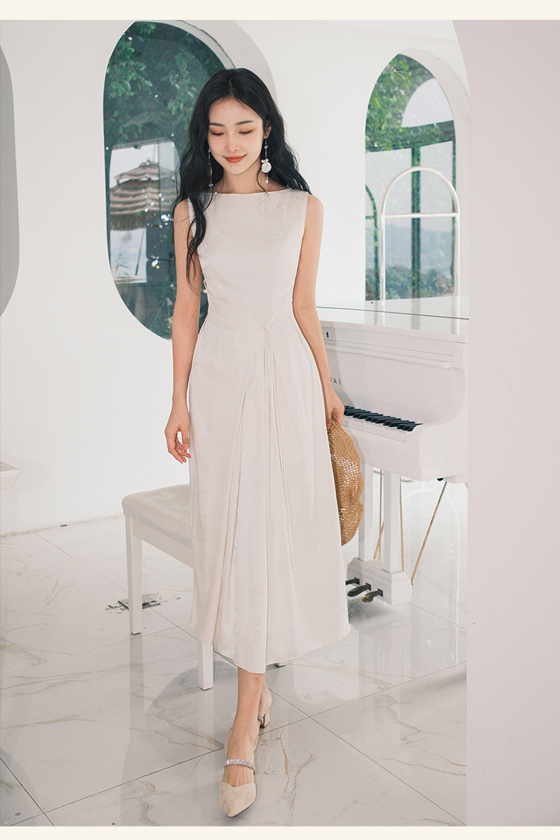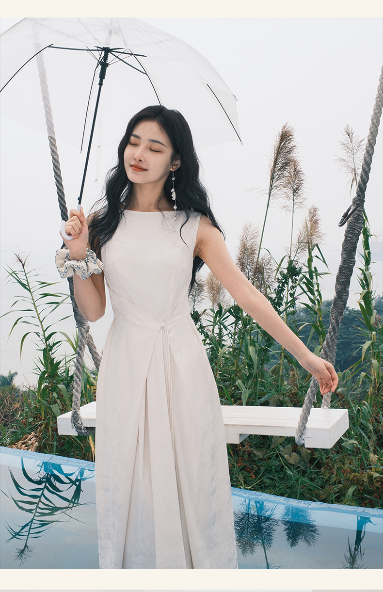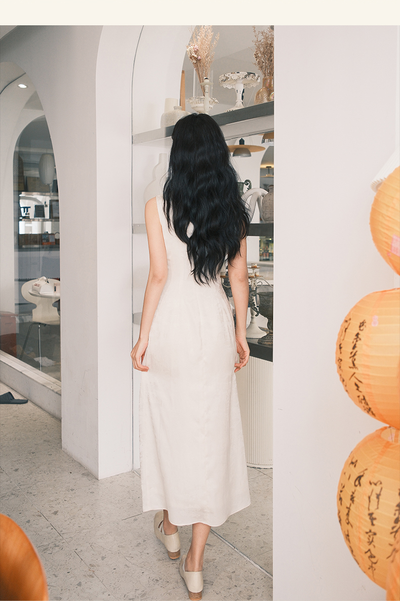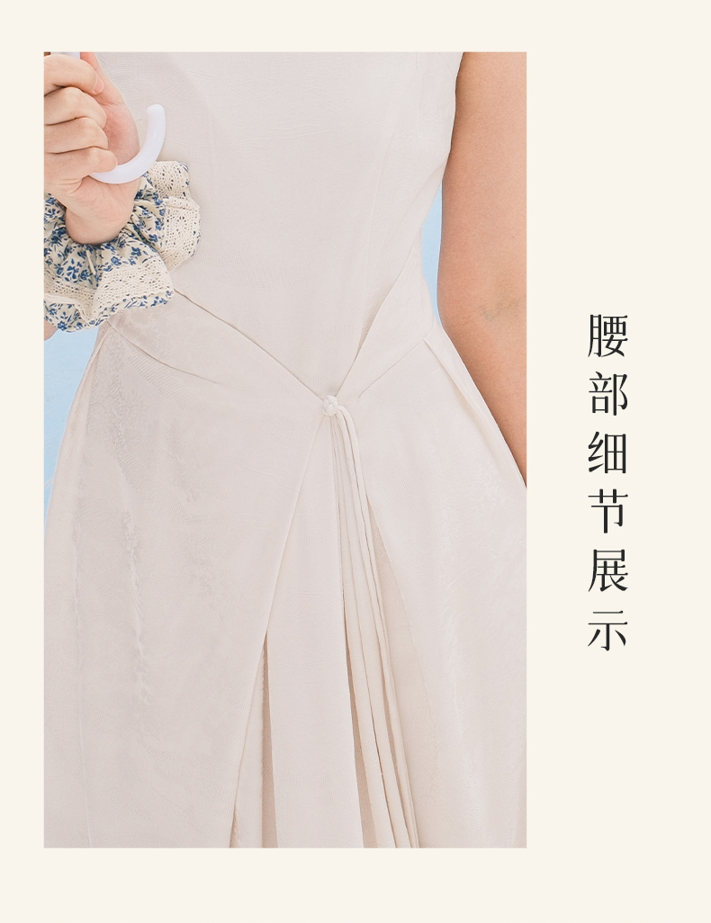 上海逸红颜拢月2025年夏季新款新中式国风山水提花软绸抽褶连衣裙