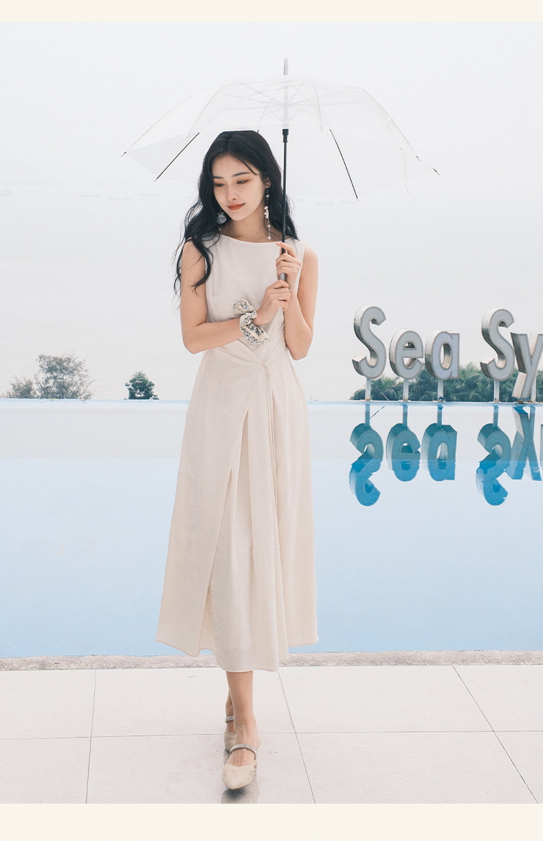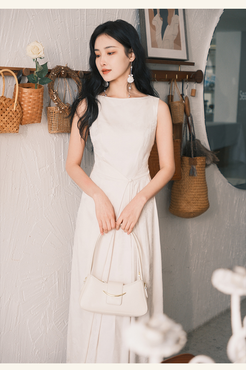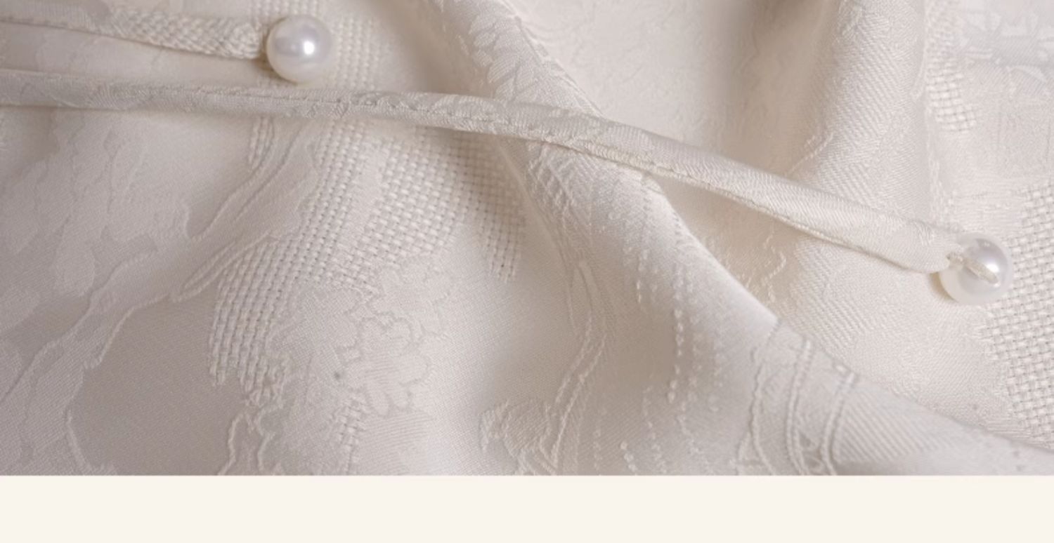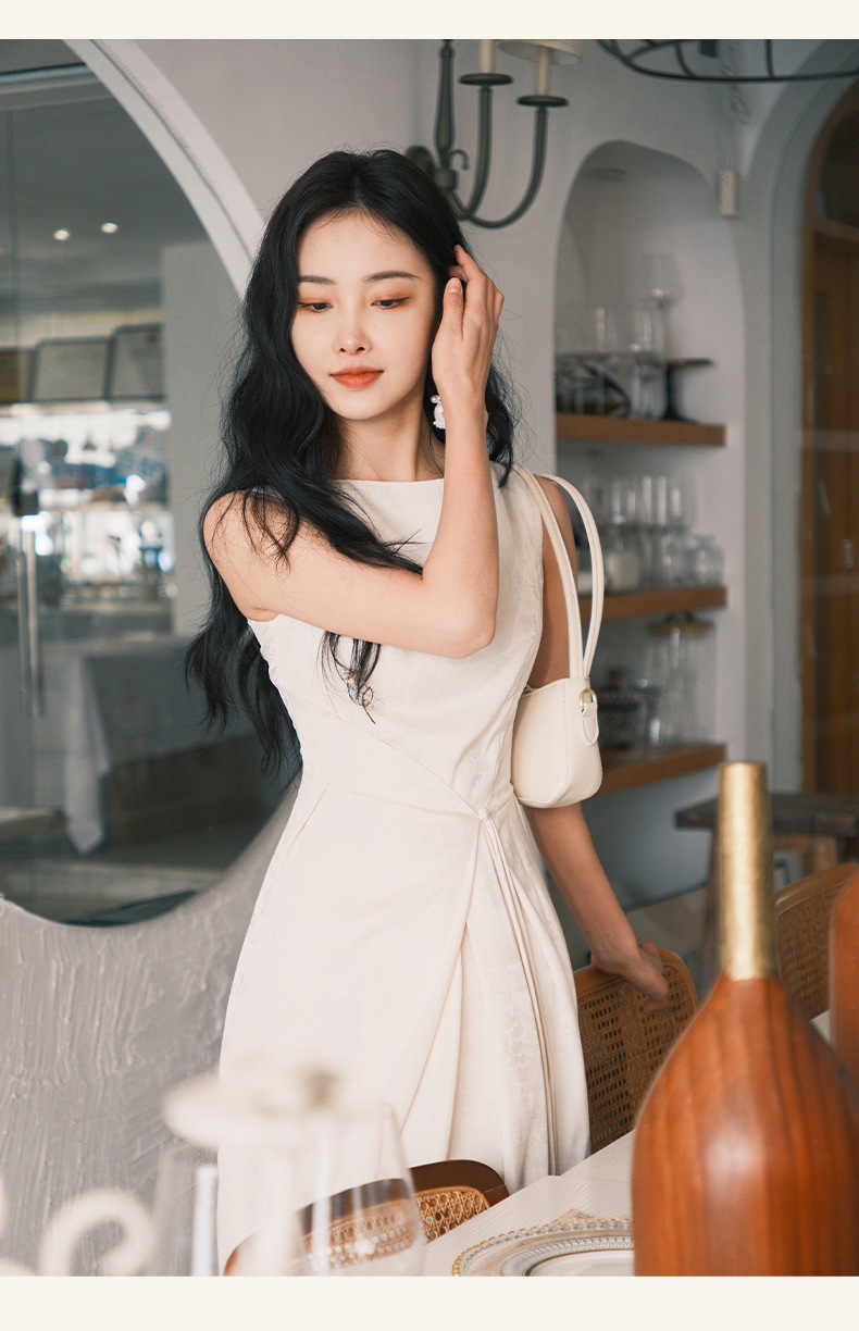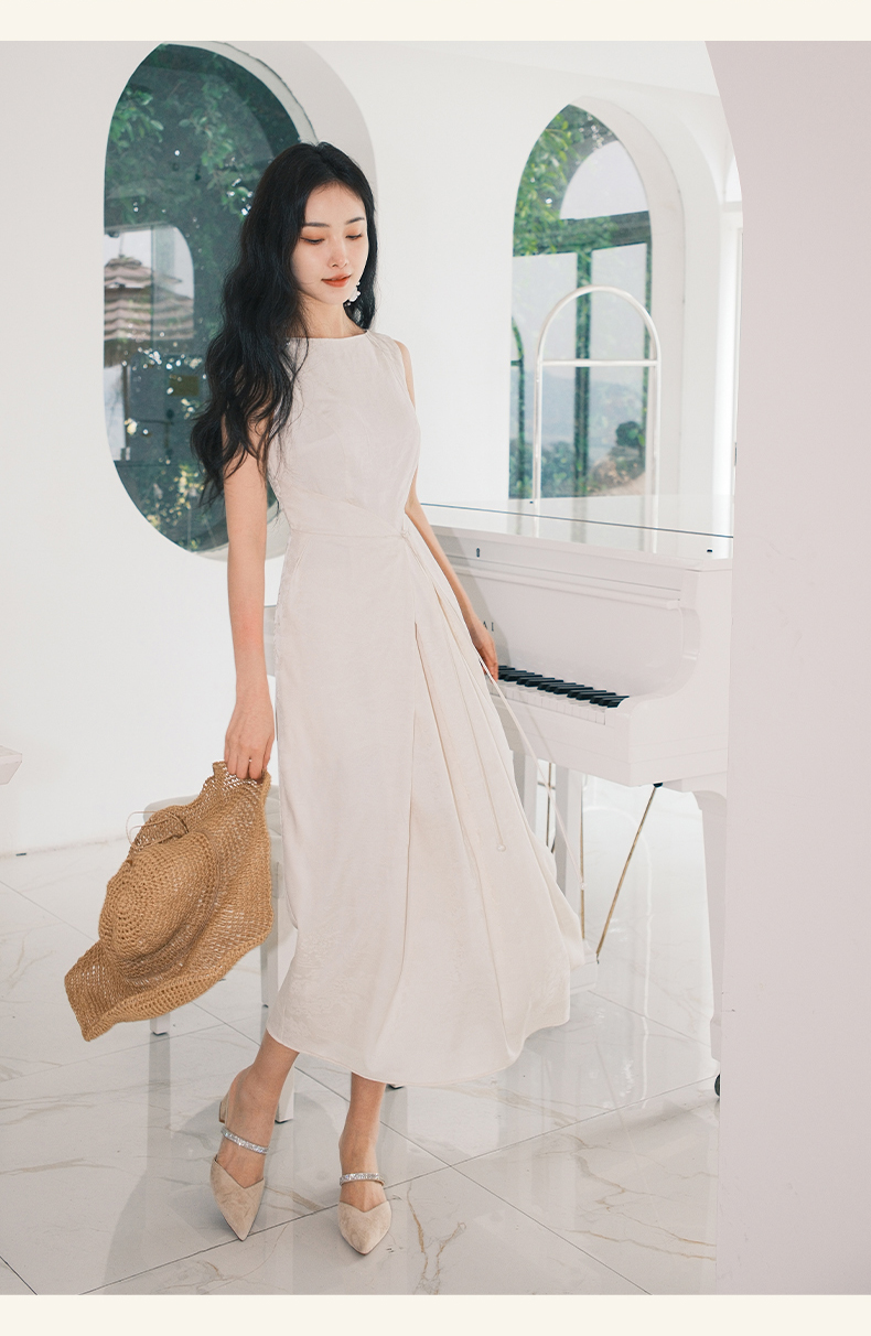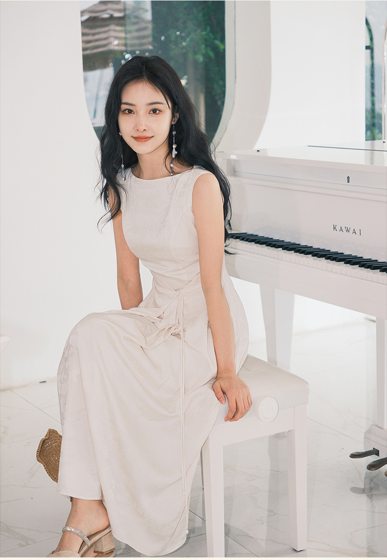 上海逸红颜拢月2025年夏季新款新中式国风山水提花软绸抽褶连衣裙