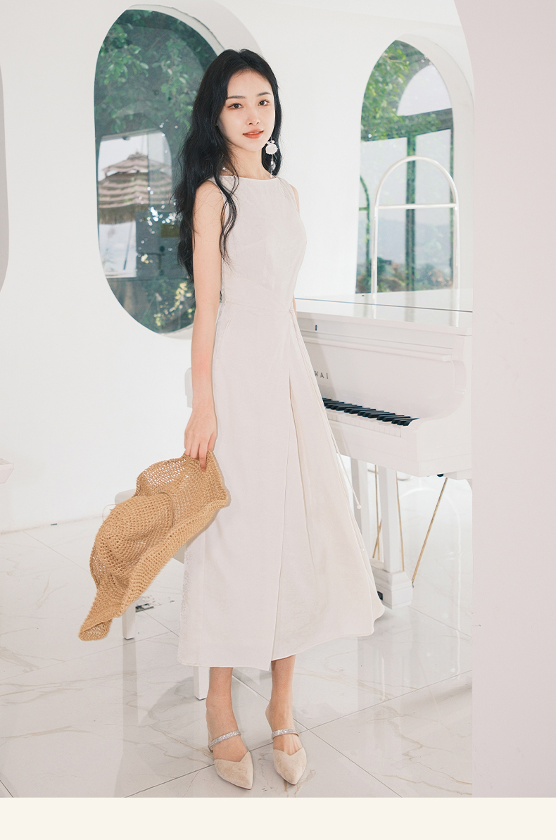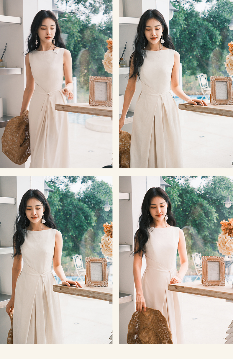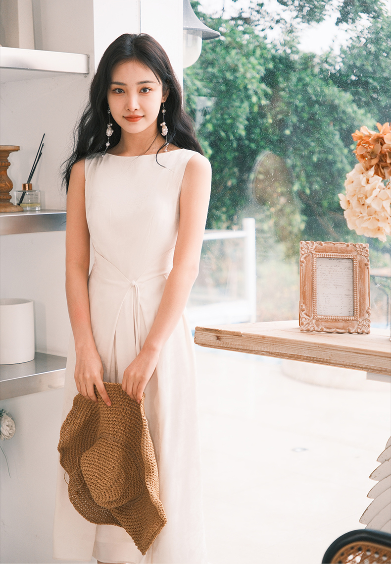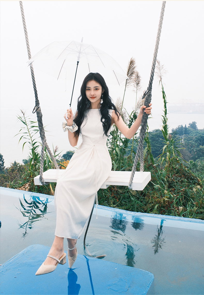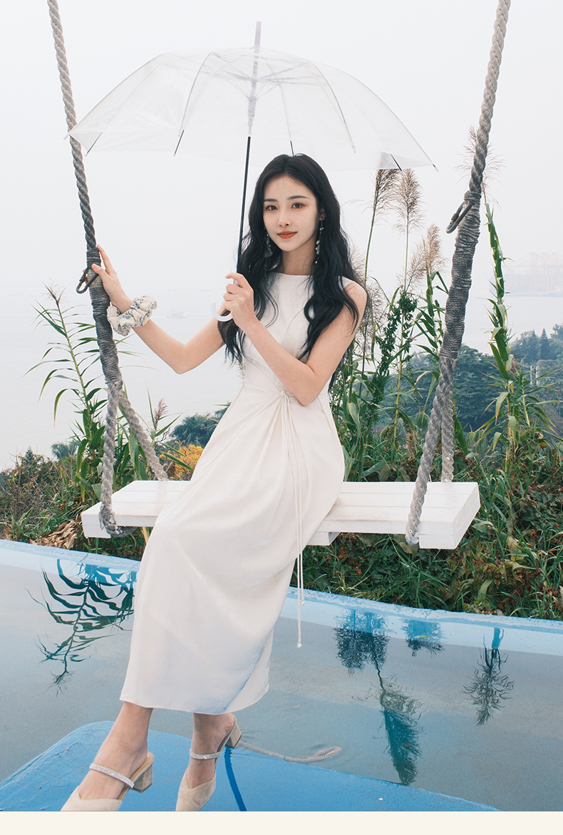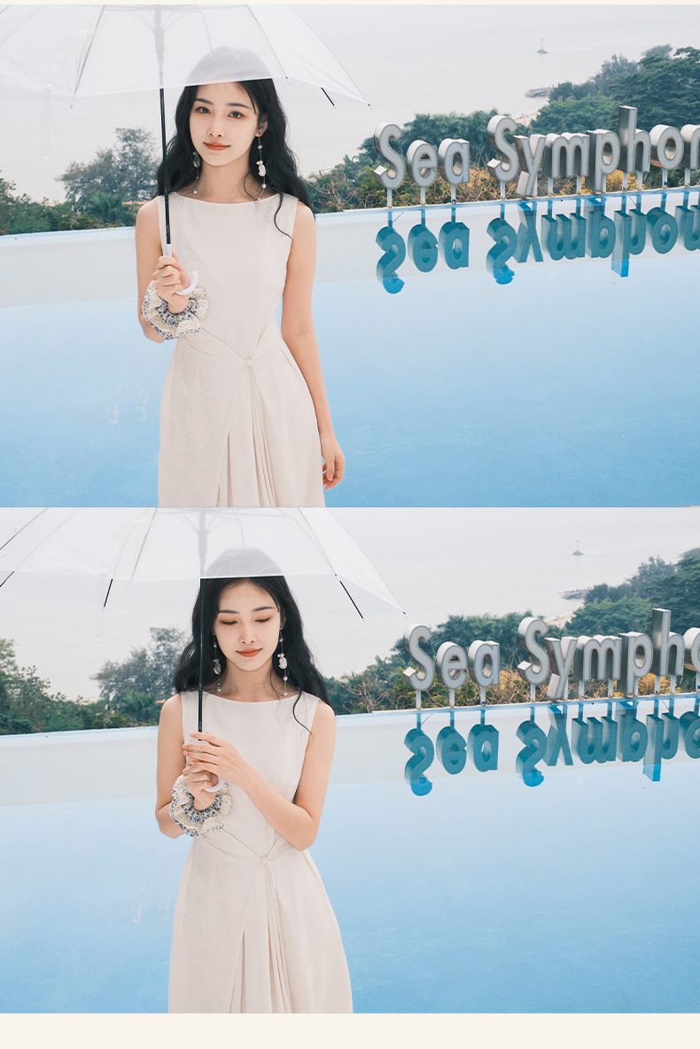上海逸红颜拢月2025年夏季新款新中式国风山水提花软绸抽褶连衣裙