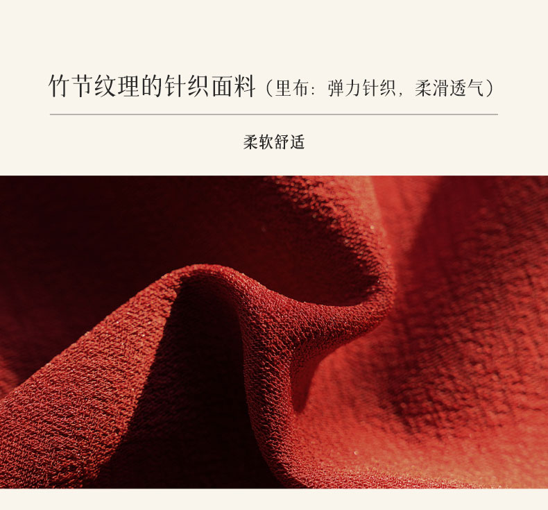 🔸面料:竹节纹理的针织面料,柔软舒适。