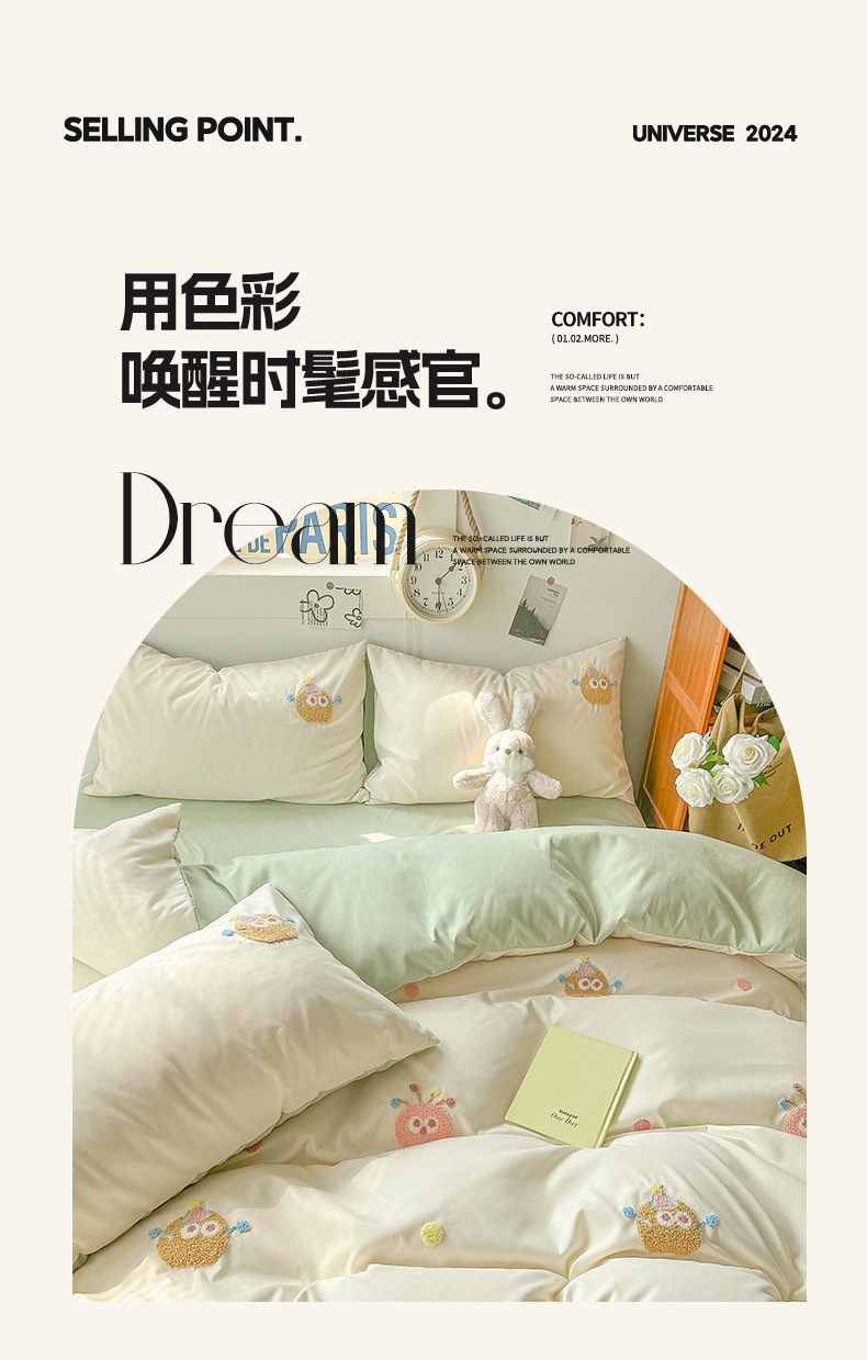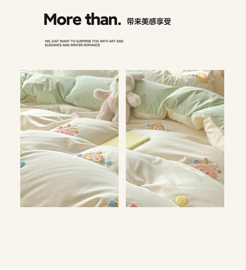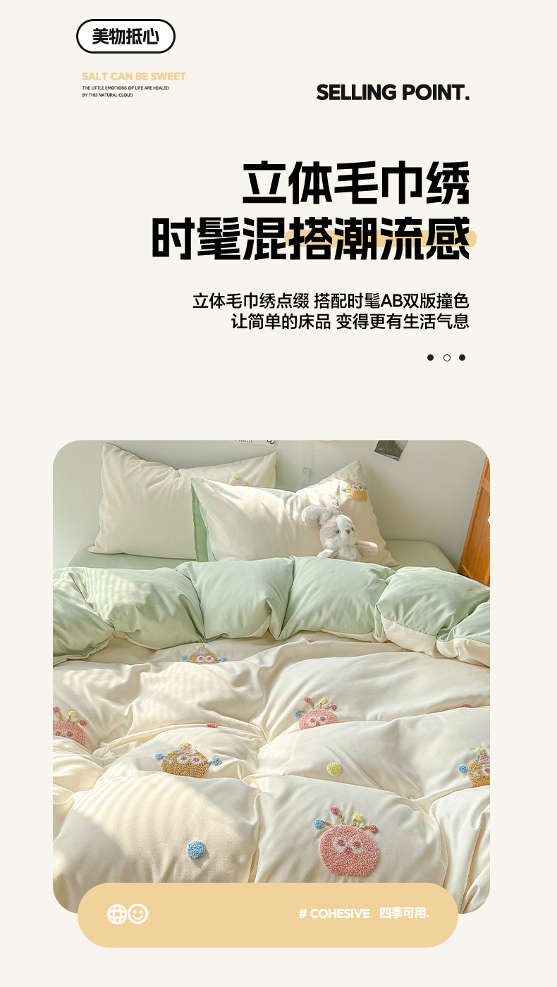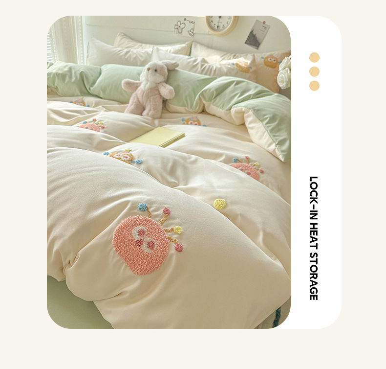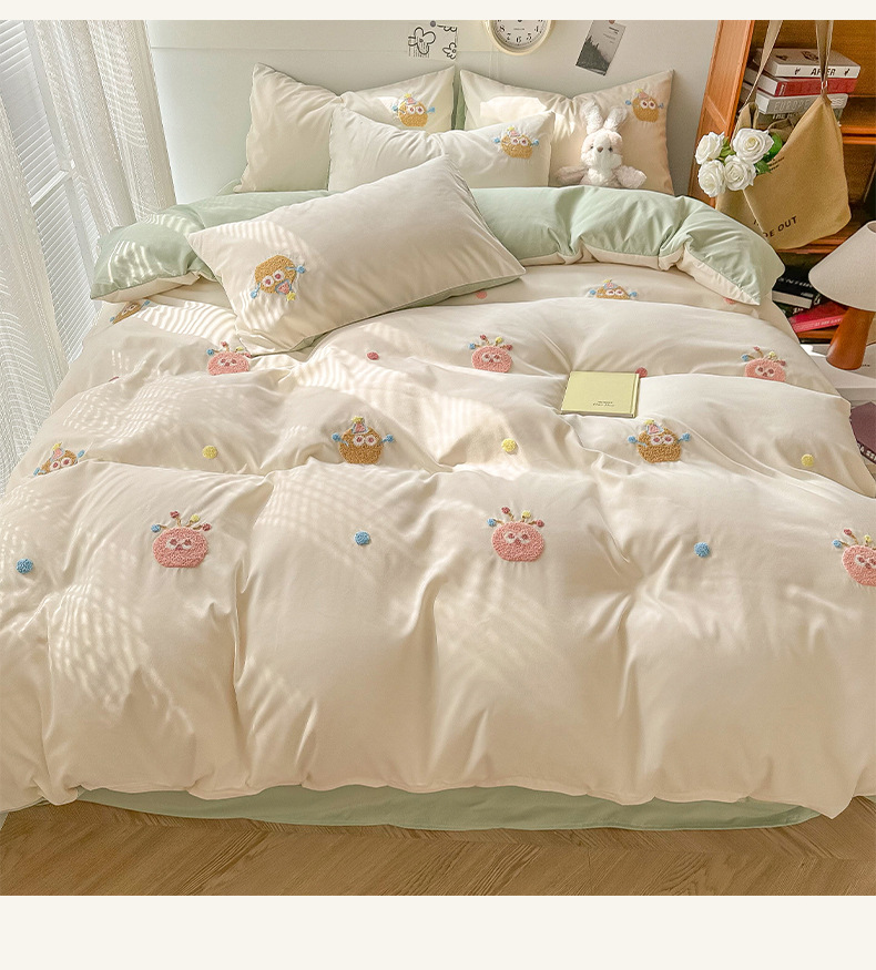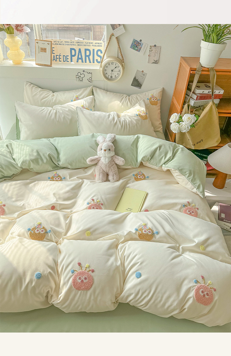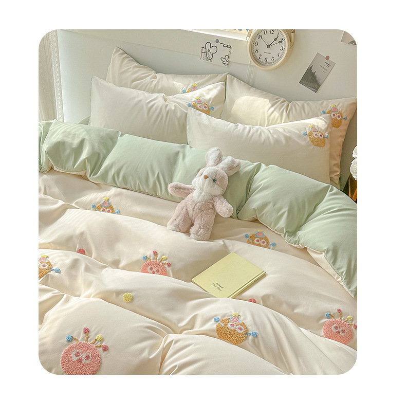 毛巾绣床单四件套夏季家用水洗棉小清新单人宿舍被套罩床上三件套