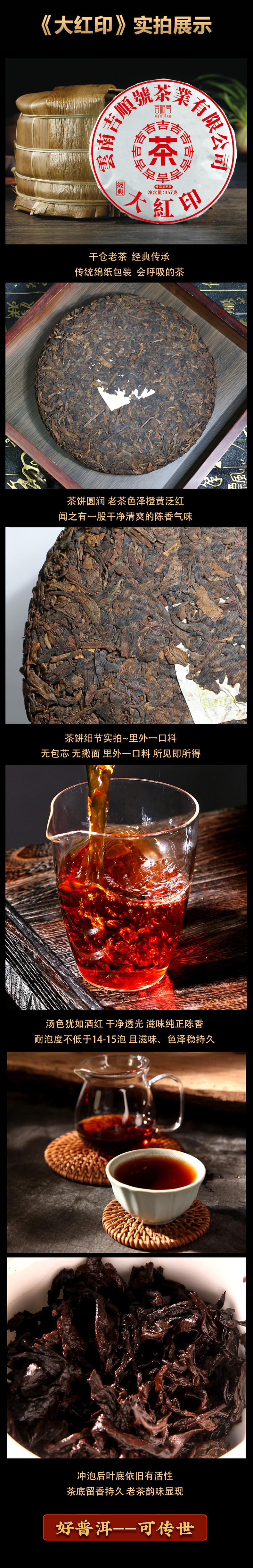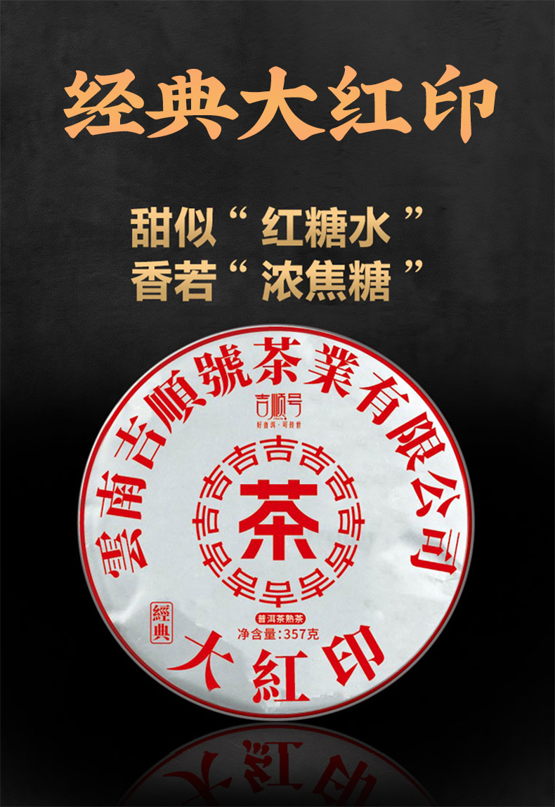 老茶分享 吉顺号2006年干仓老茶经典大红印普洱熟茶357克/饼