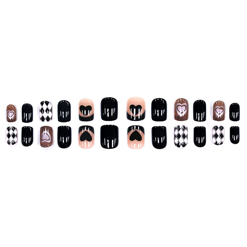 A659【赠胶水】甜酷辣妹风穿戴甲片爱心菱格盘短款可拆卸学生美甲假指甲片 24片/盒