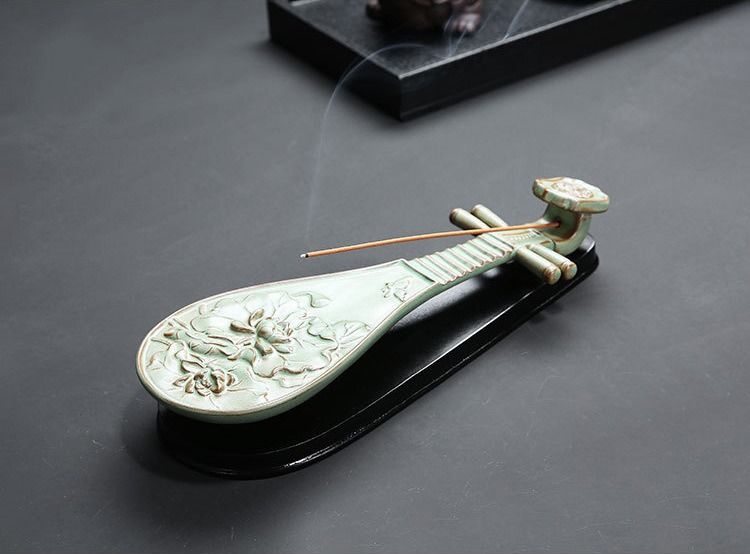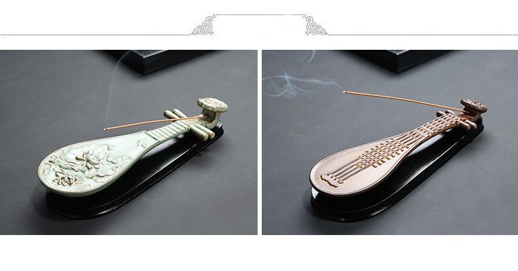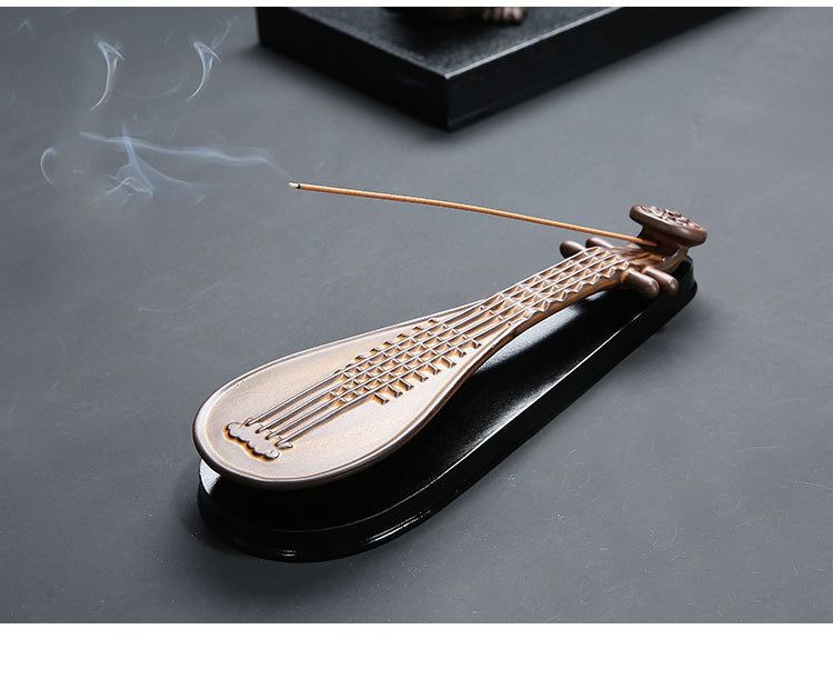 线香香插琵琶古琴陶瓷沉香熏香炉创意茶道中式摆件仿古香座线香炉