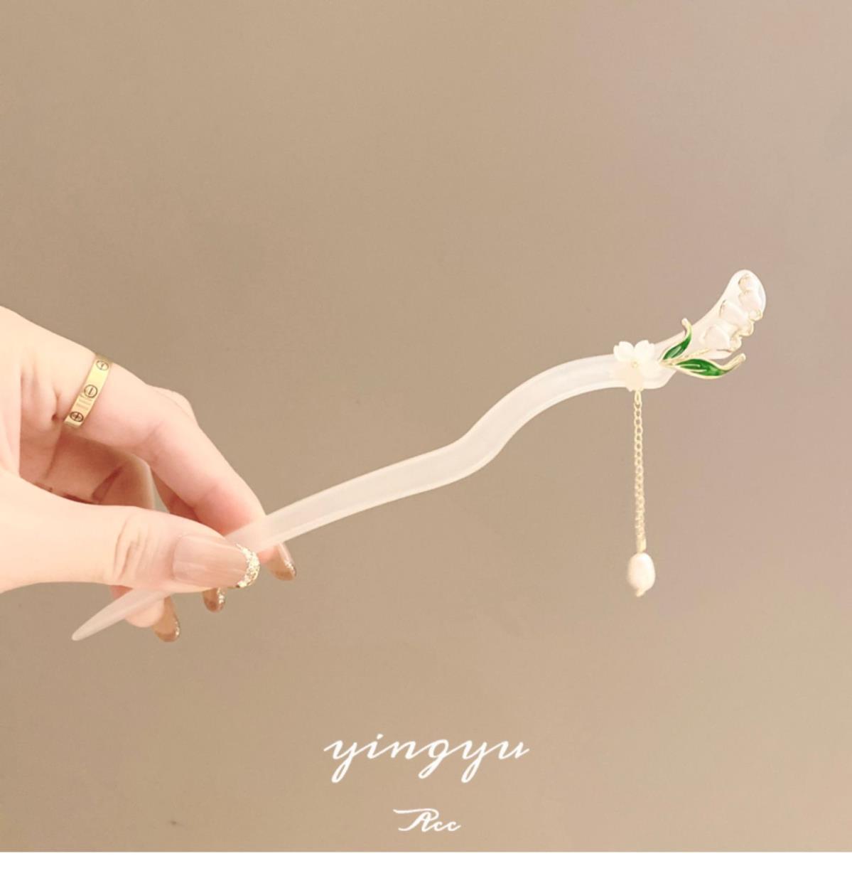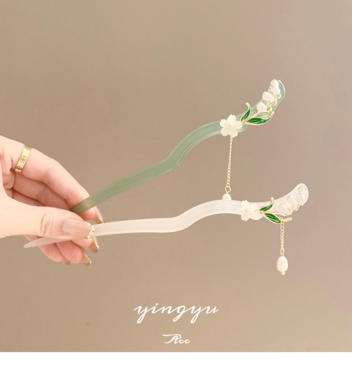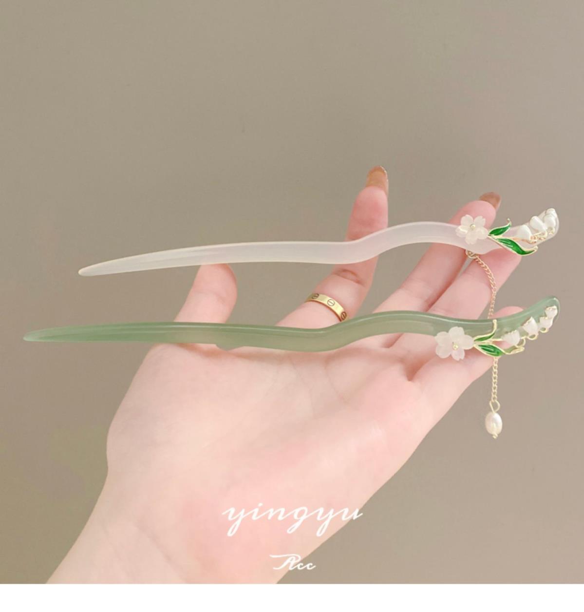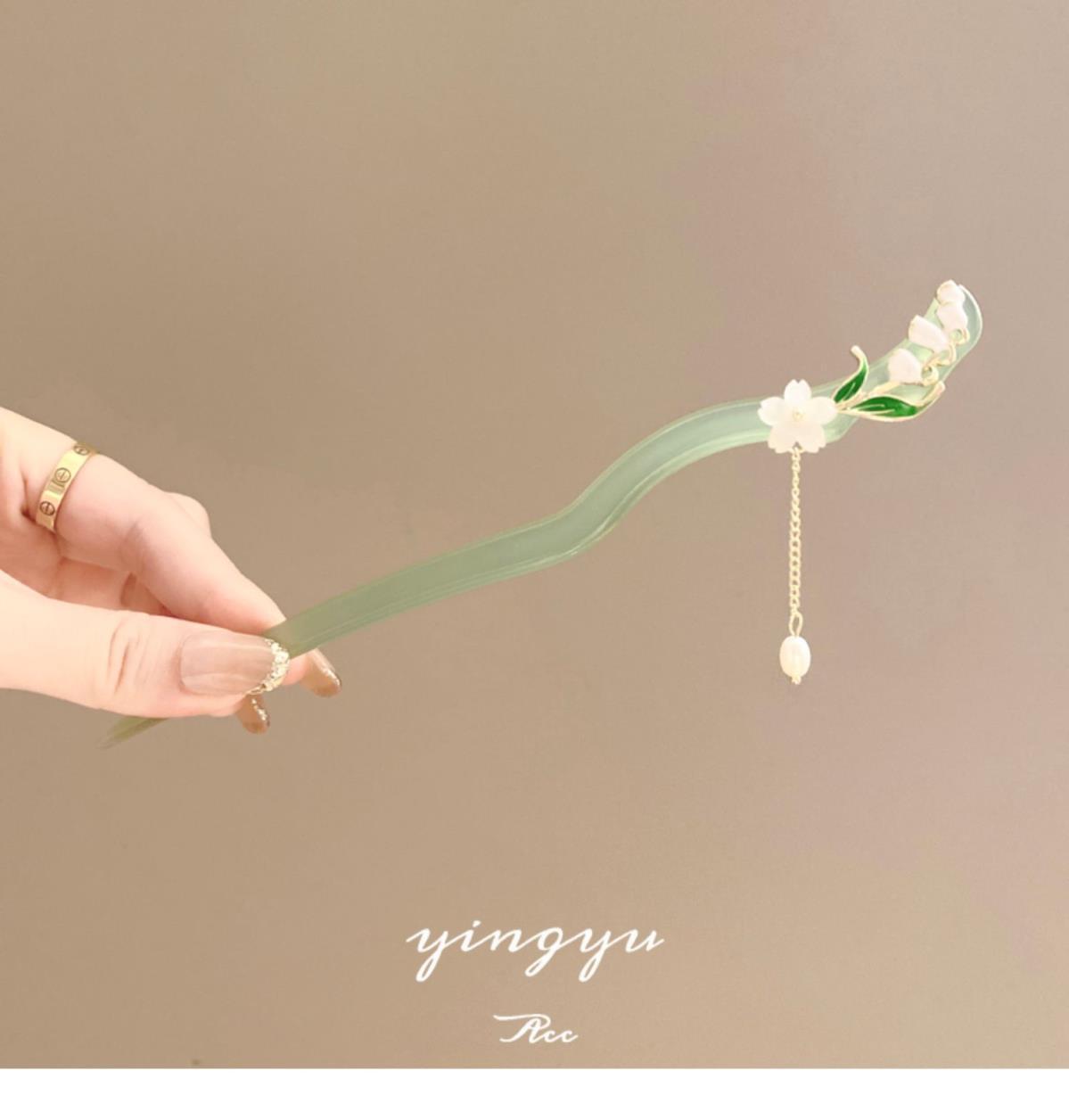 风铃古风步摇天青冻发簪国风清冷发钗旗袍丸子头盘发簪子