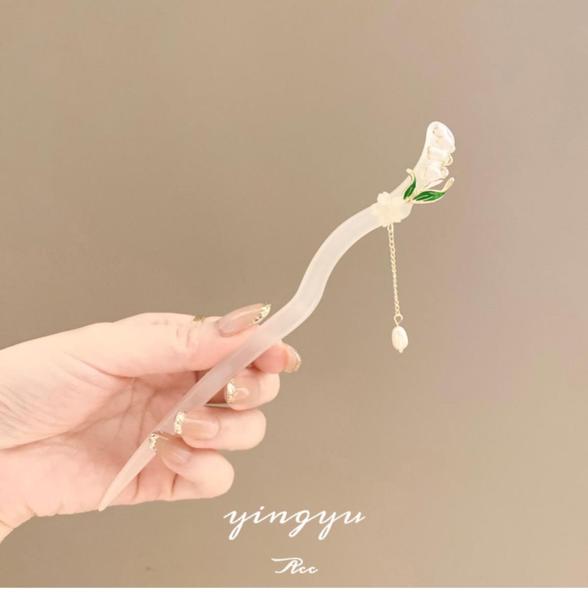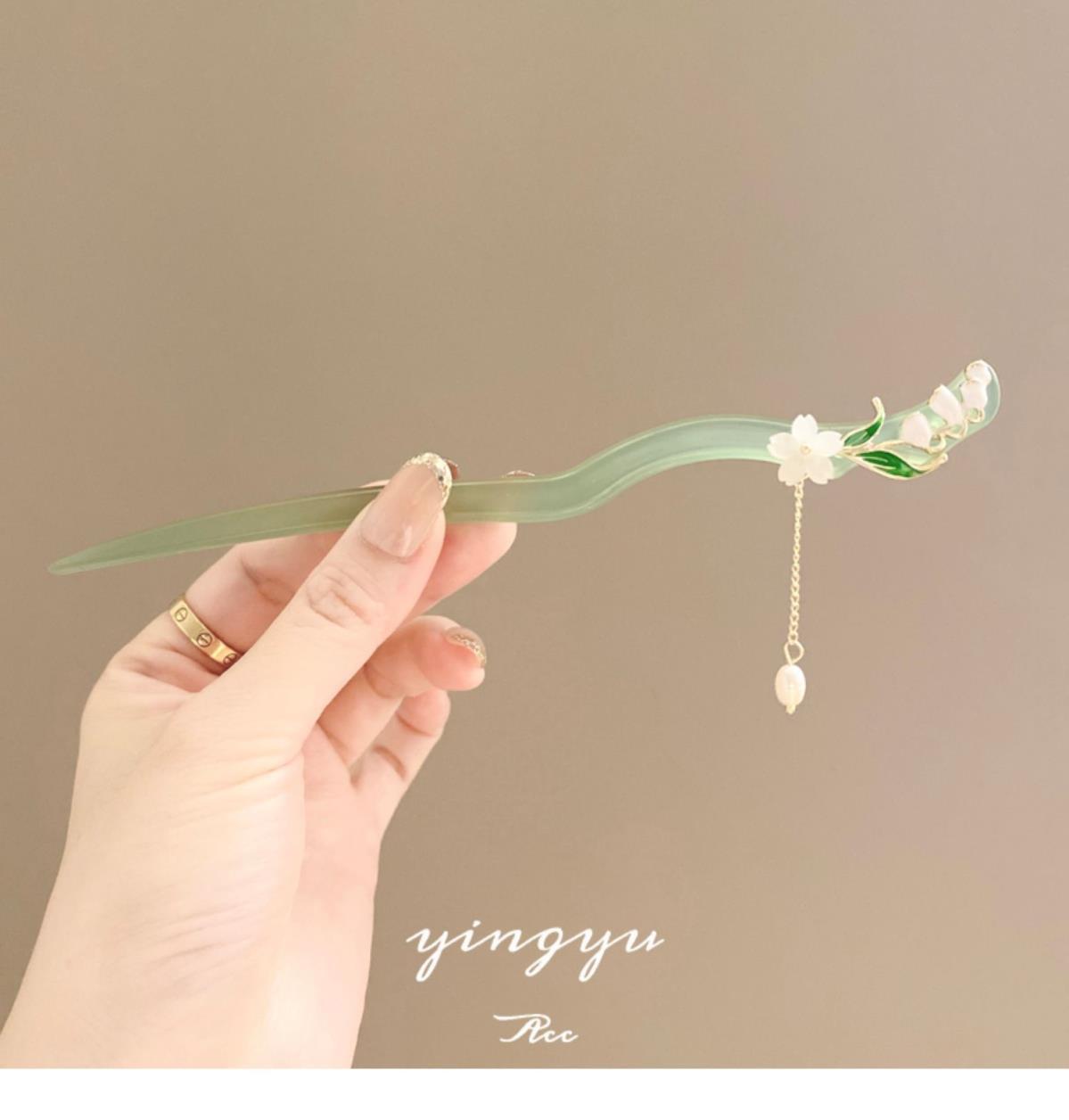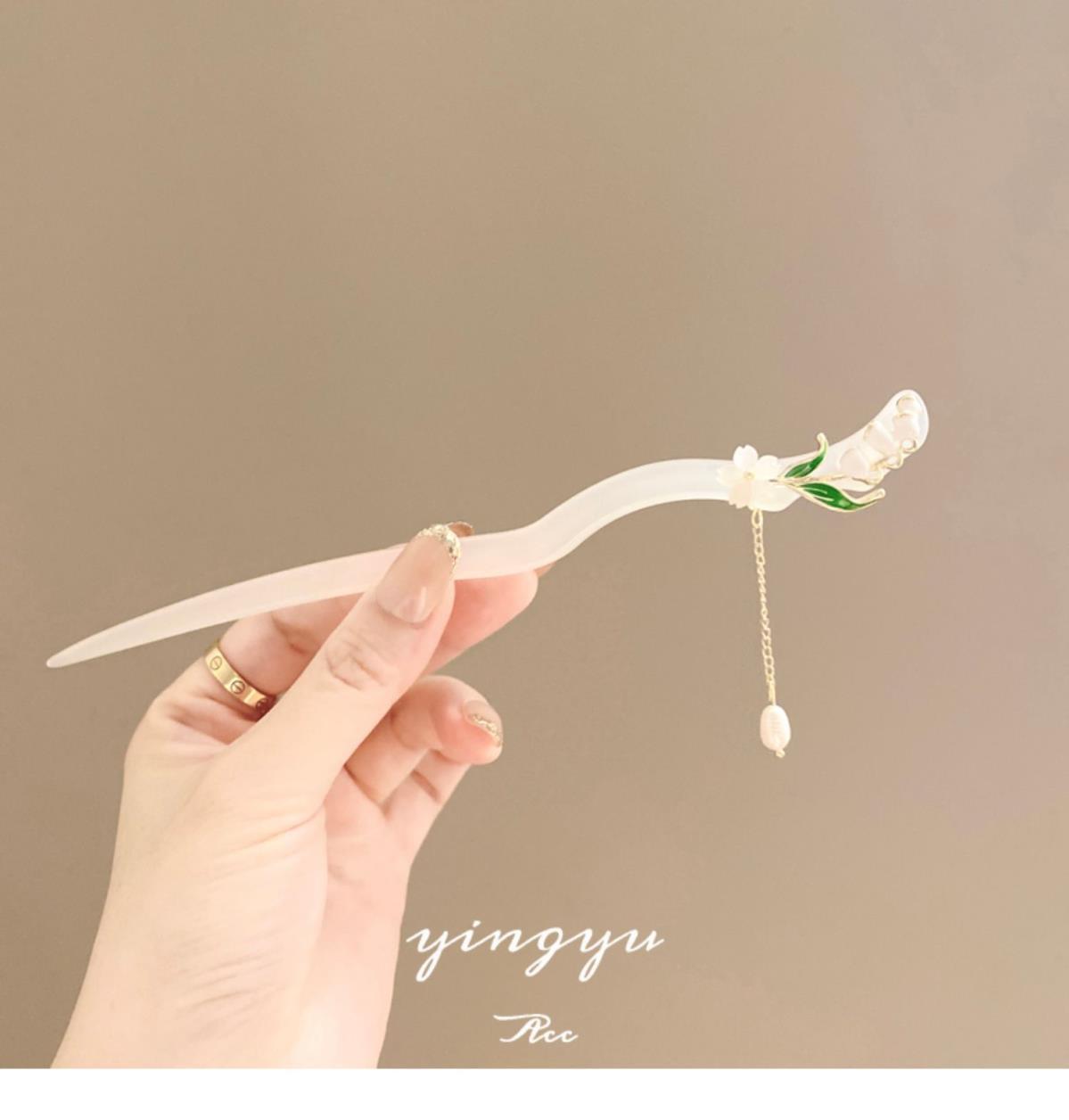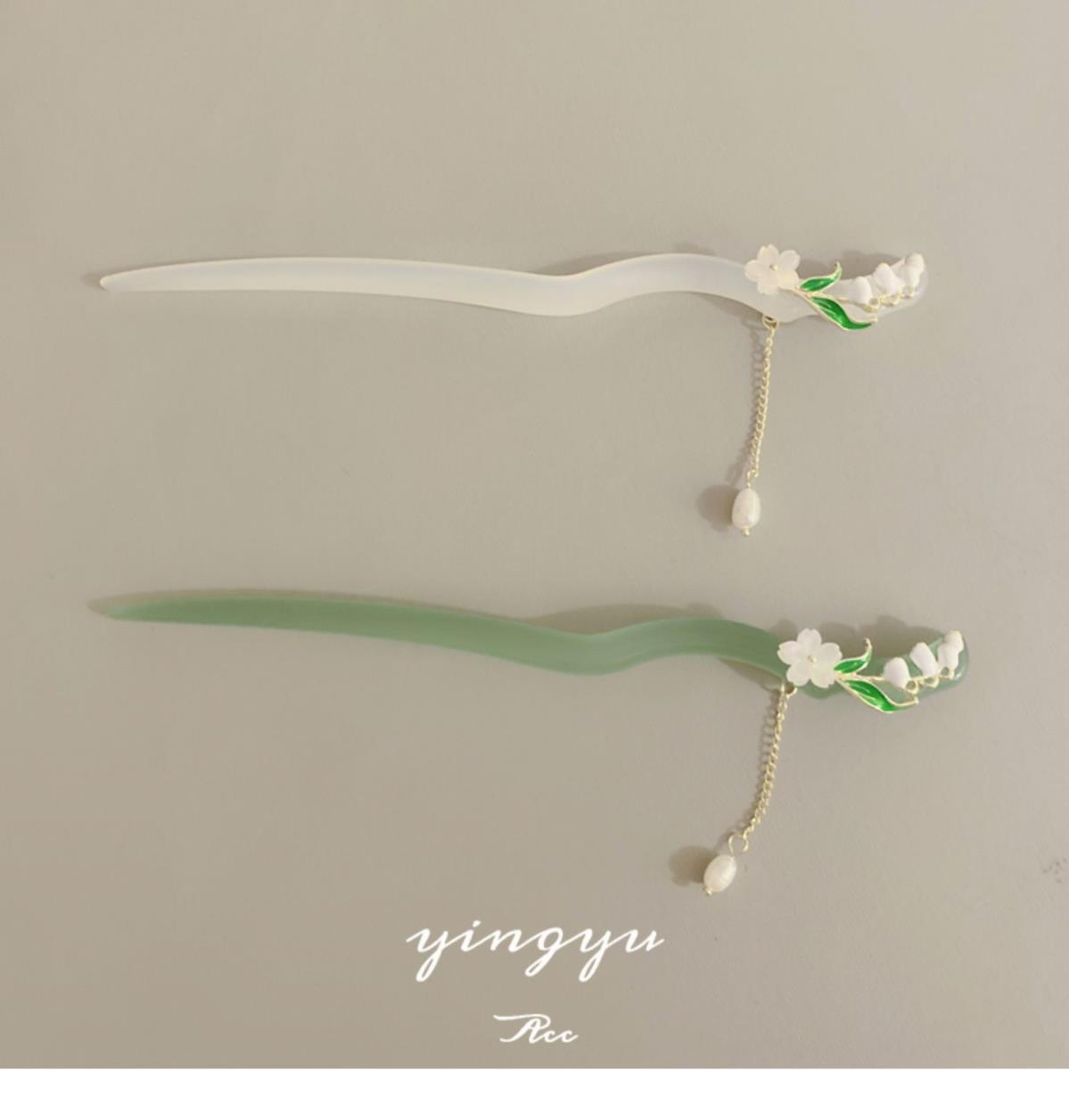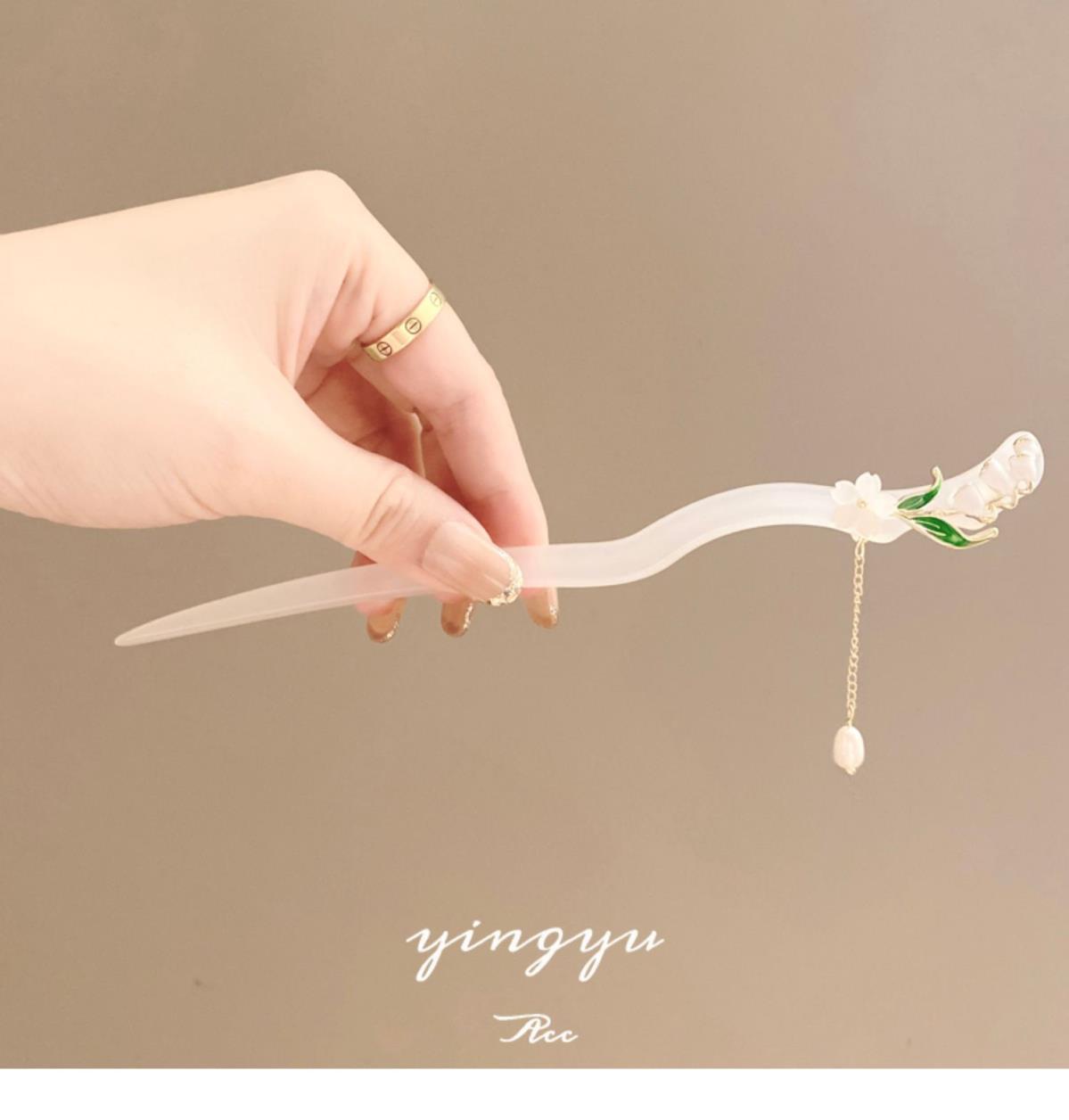 风铃古风步摇天青冻发簪国风清冷发钗旗袍丸子头盘发簪子