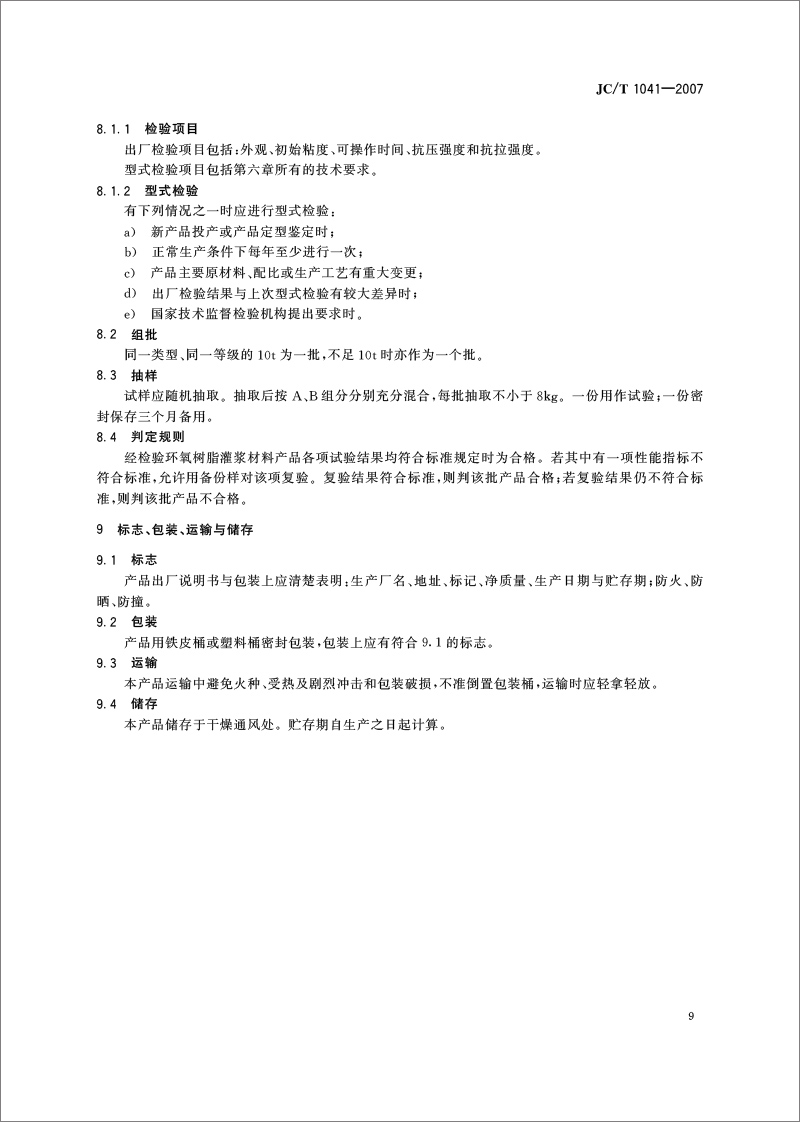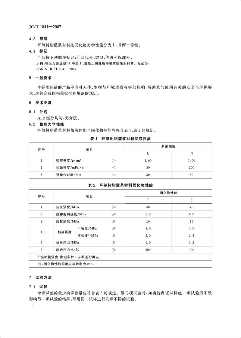 JC/T 1041—2007混凝土裂缝用环氧树脂灌浆材料