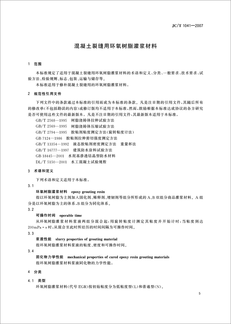 JC/T 1041—2007《混凝土裂缝用环氧树脂灌浆材料》行业标准调研报告
