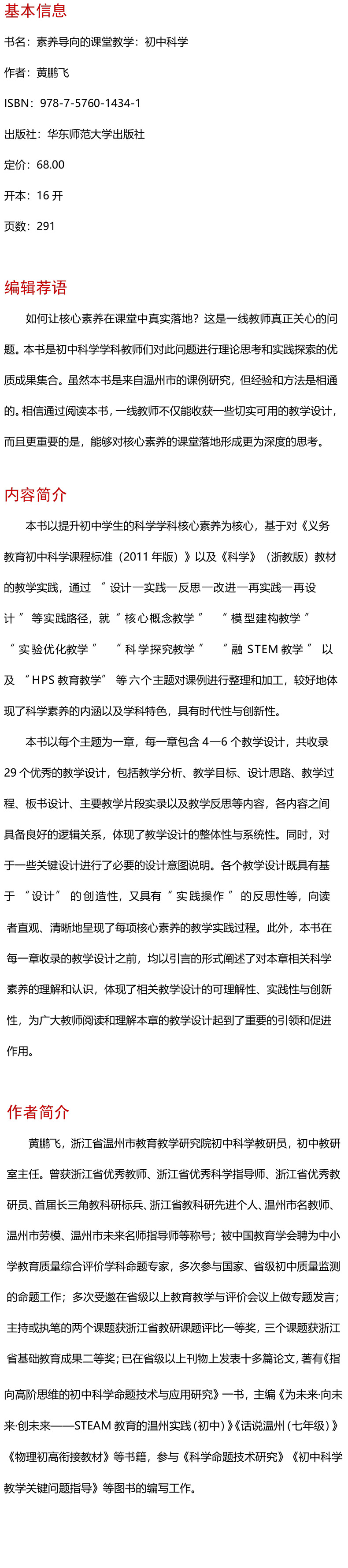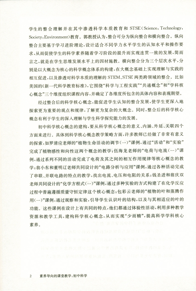 素养导向的课堂教学 初中科学 核心概念教育 模型建构教学 实验优化教学 科学探究教学