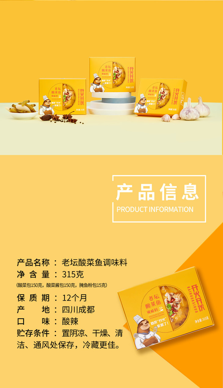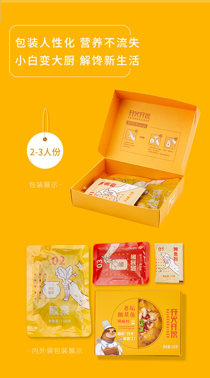 开火开伙 老坛酸菜鱼调料包酸汤鱼底料包四川老坛泡菜鱼特产315g*2盒每盒2-3人份