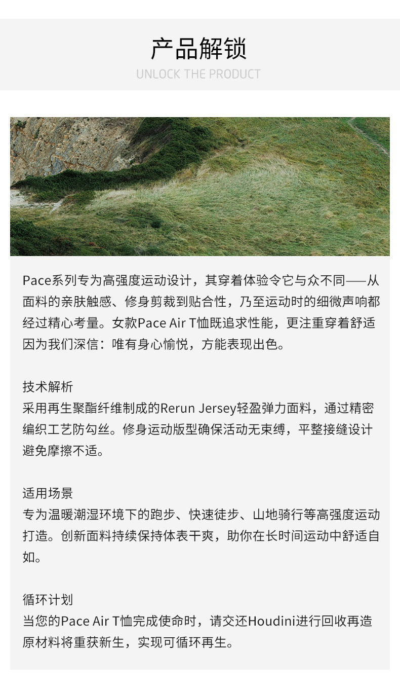 HOUDINI胡丁尼Pace Air Tee空速女户外26夏新清爽跑步徒步短袖T恤 840068