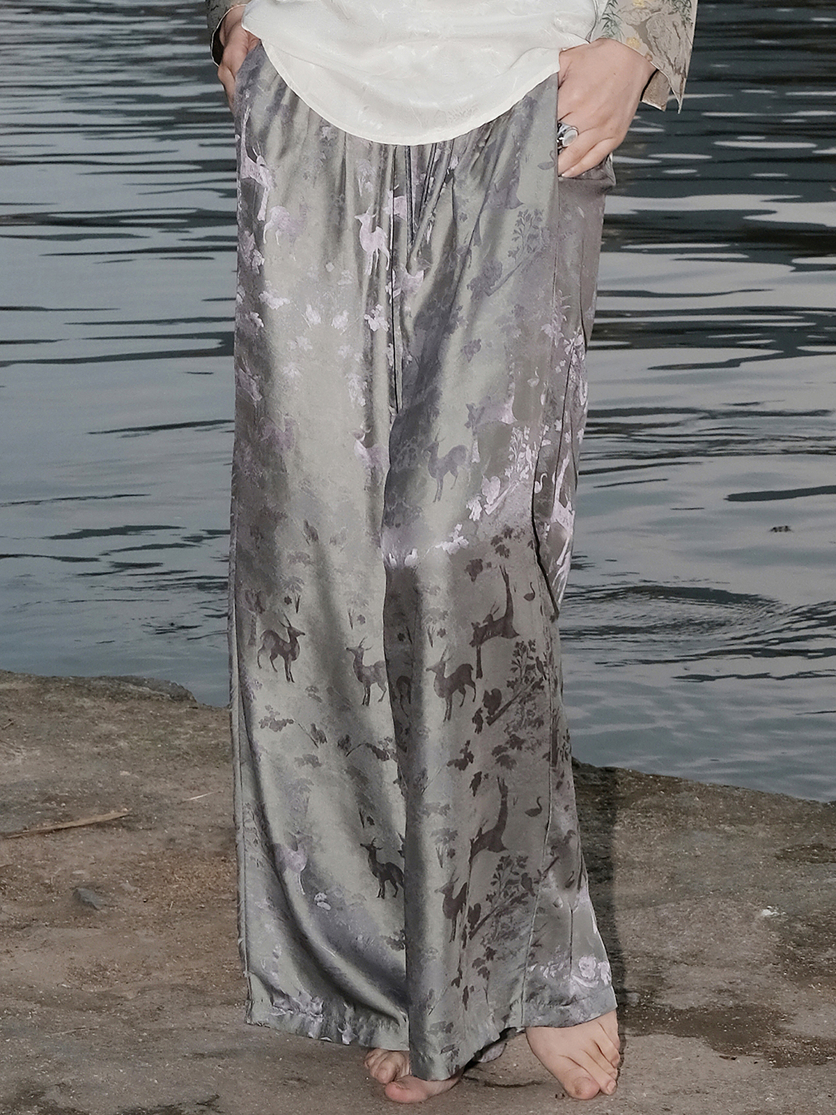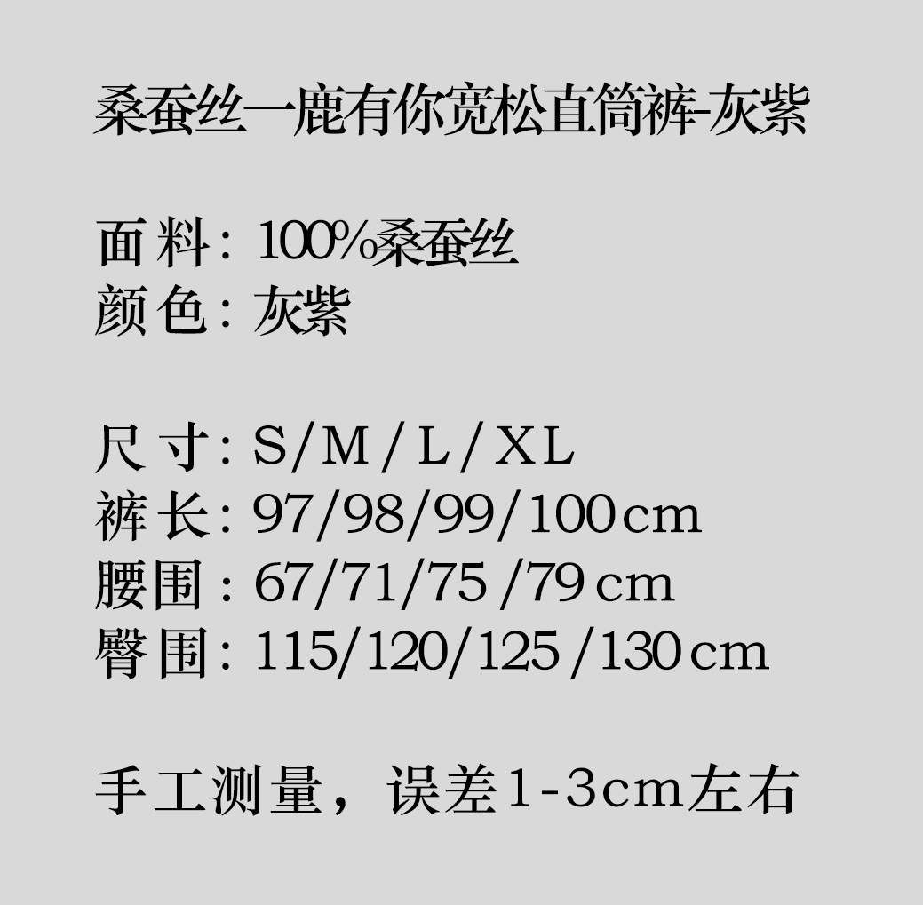 盛唐婧 |桑蚕丝一鹿有你宽松直筒裤-灰紫