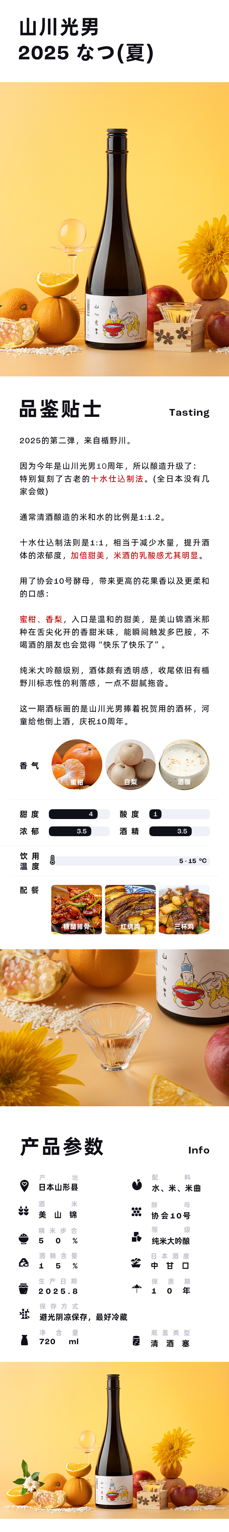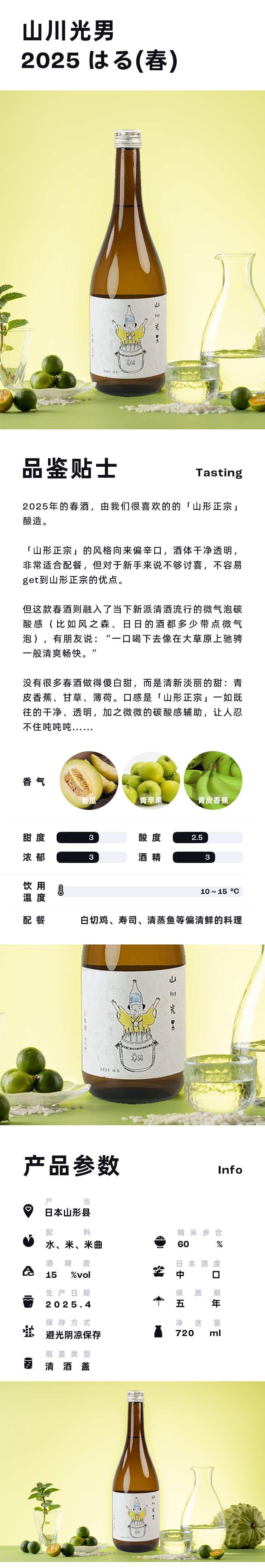 企鹅市集|山形县 山川光男 2025季节限定清酒 夏季/春季 微气泡碳酸感 实力老牌酒造出品