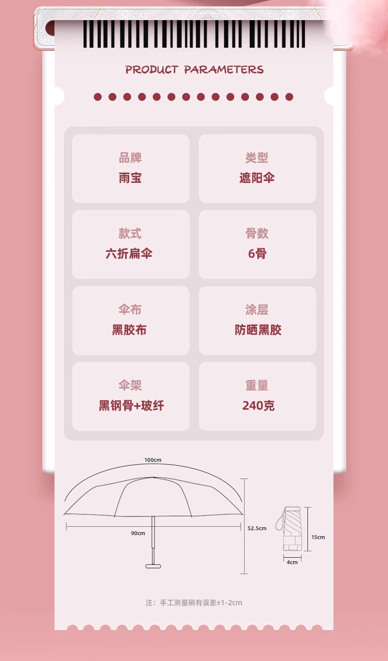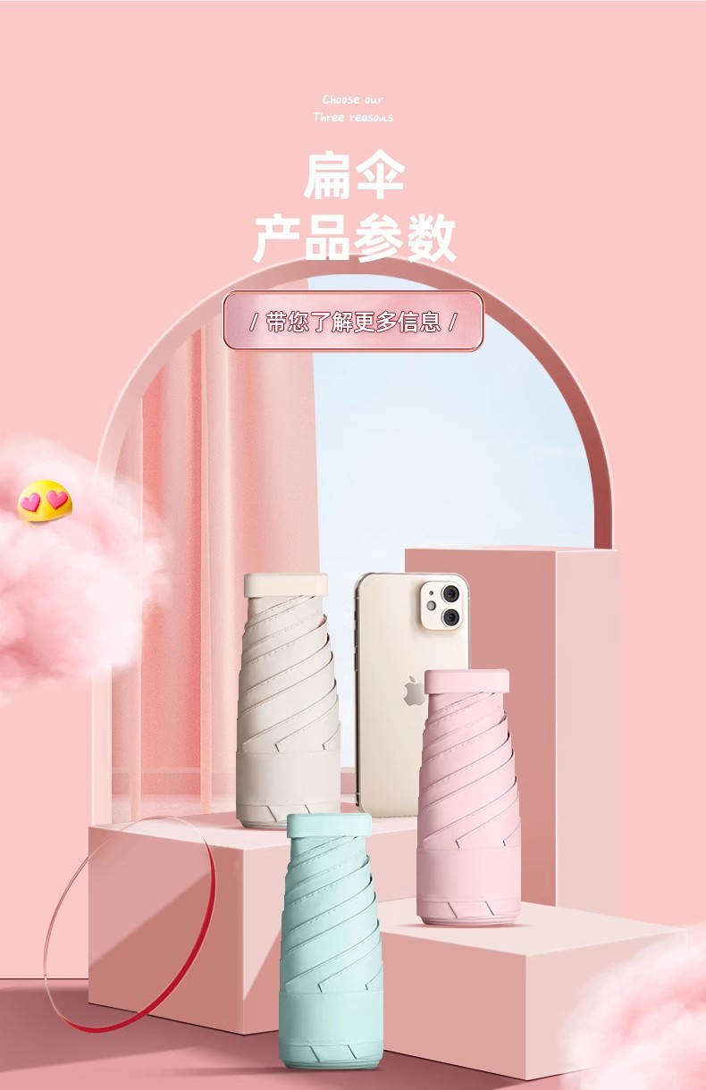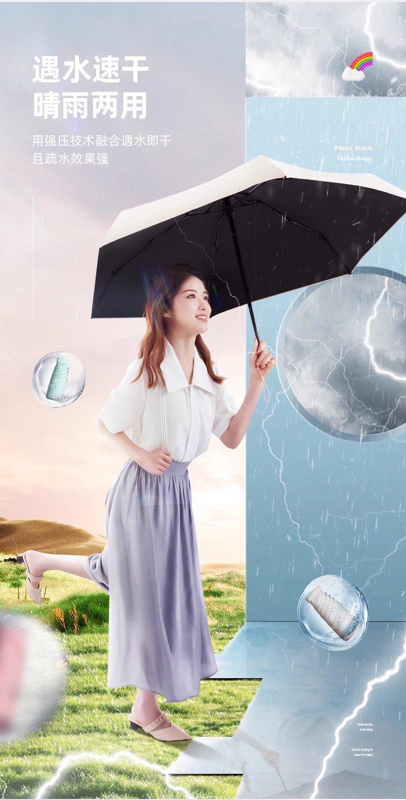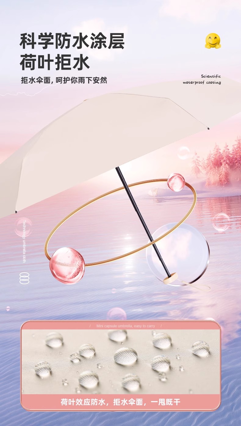 【福利❗️超轻超mini晴雨伞】科学防水涂层,荷叶拒水,拒水伞面,呵护你雨下安然!六折环扣太阳伞女防晒防紫外线折叠口袋伞遮阳